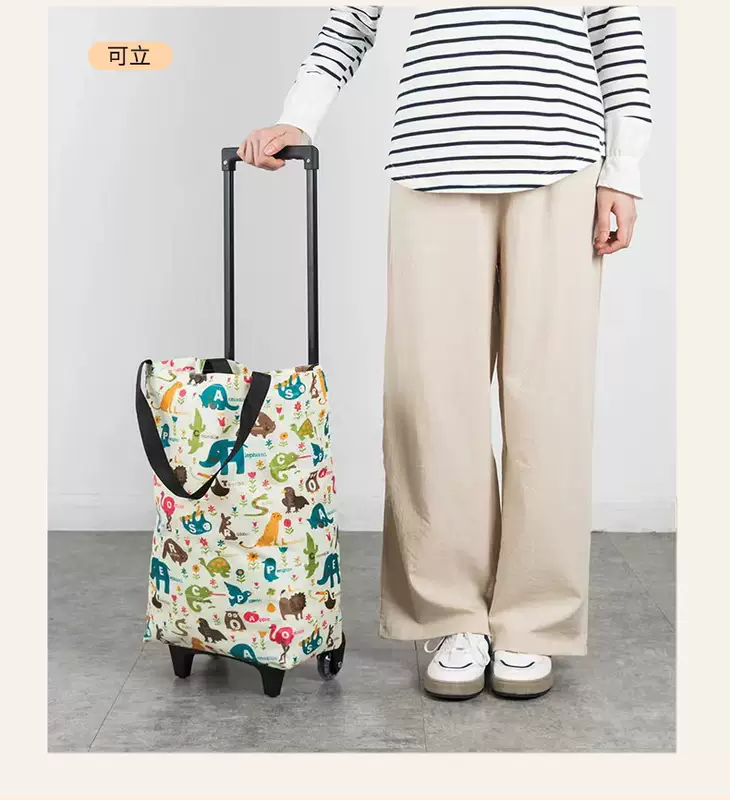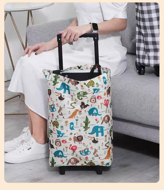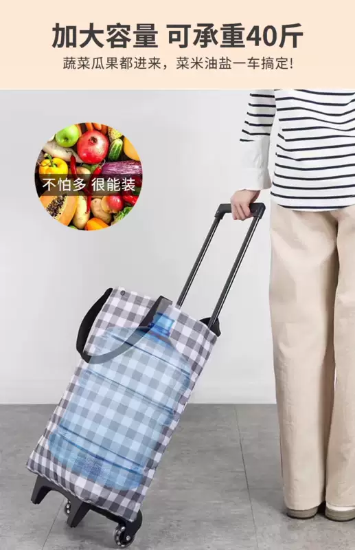 Yusenyi Trolley Shopping Cart Bought at Supermarket Vegetable Trolley Portable Folding Trolley Home Artifact Hand-picked Express Pull Black Geometric Space Bold Trolley - Wear-Resistant Crystal Wheel - Snap Seal Can be Pulled and Backed