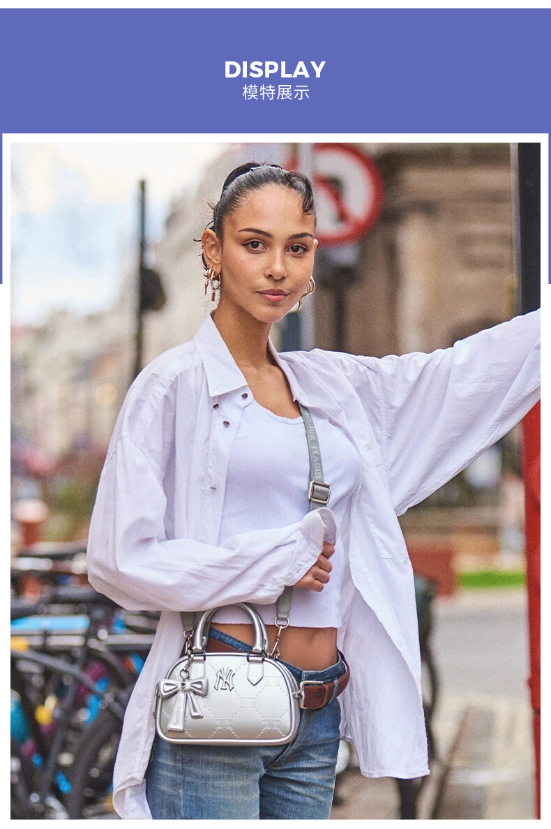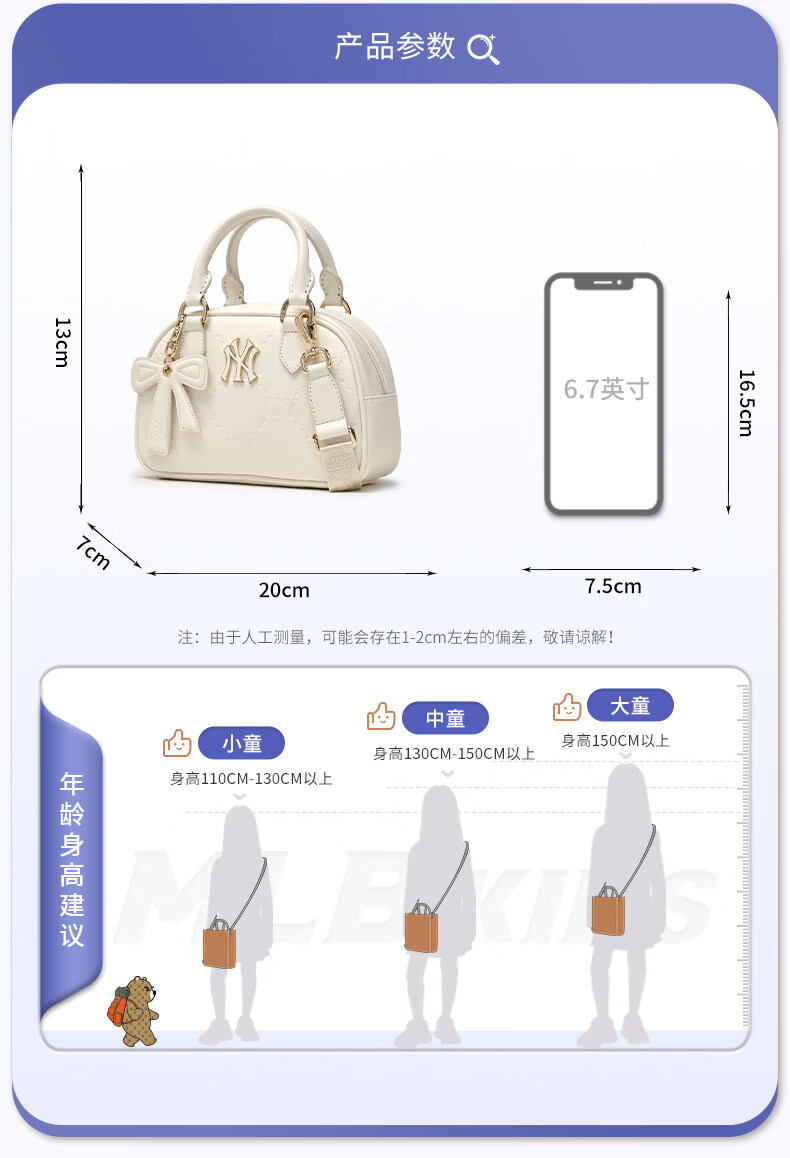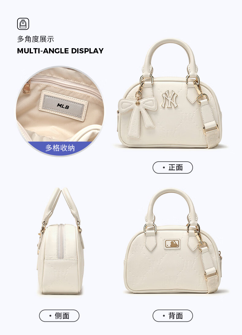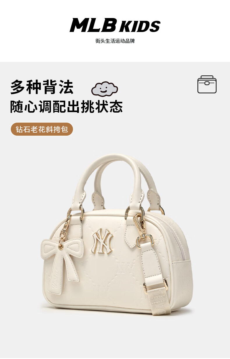 MLB children's official boys and girls retro trendy luxury bow pendant diamond presbyopia crossbody bag 26 spring new style silver