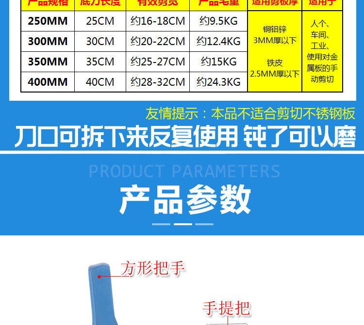 Sailoto manual shearing machine, iron sheet shear, industrial metal guillotine cutting, copper, iron, aluminum, galvanized plate, license plate, gold steel mesh, mouth length 250MM shearing machine