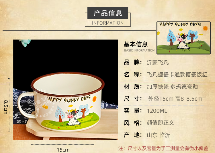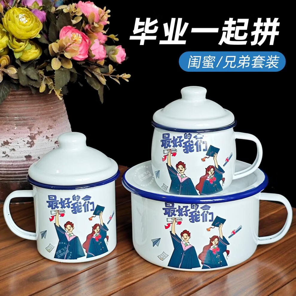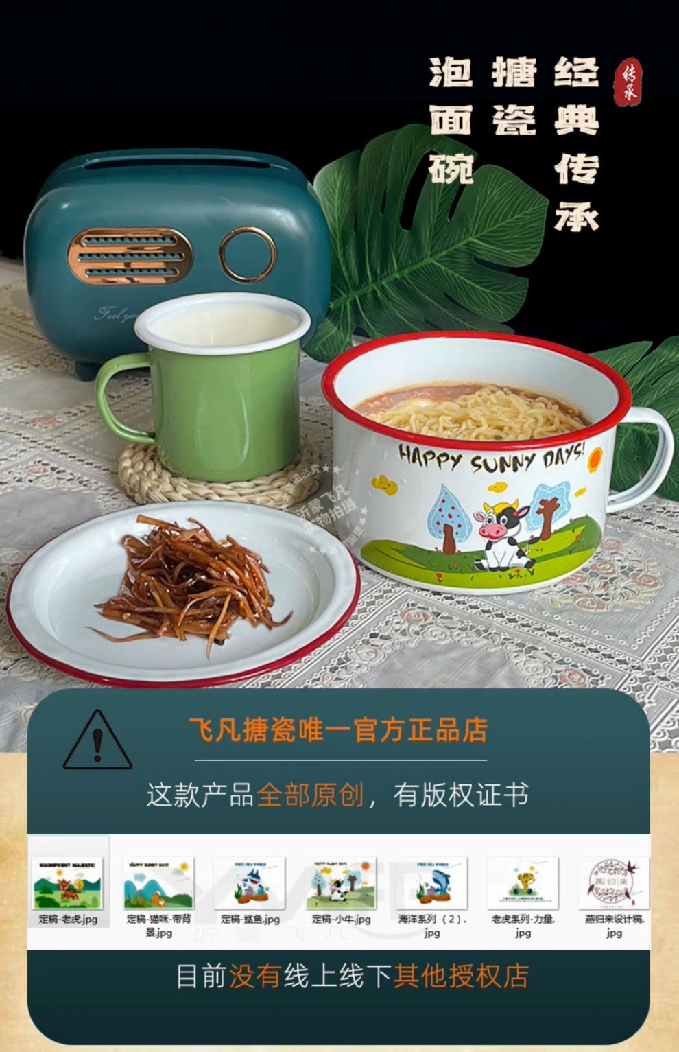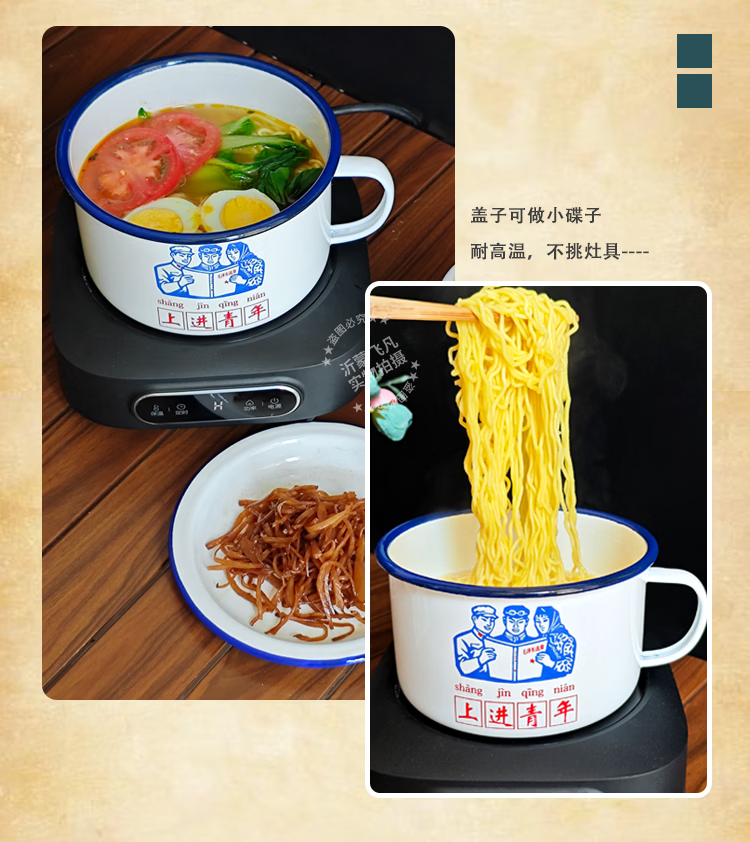 Tuojin German imported quality Feifan enamel instant noodles noodle bowl fast food cup with lid student canteen lunch box tea stainless steel thickened with lid to exercise in strong winds and waves 1200ml
