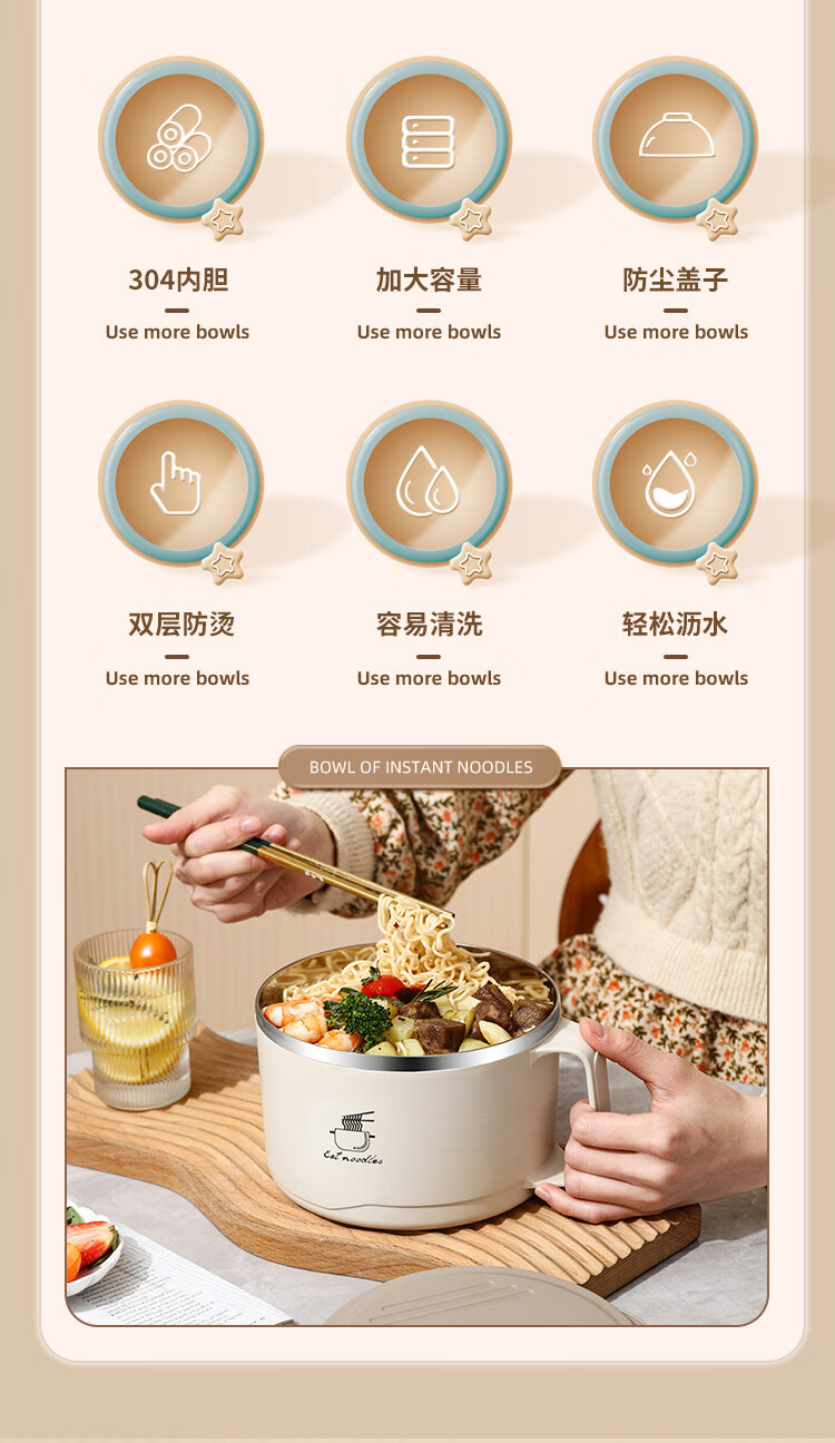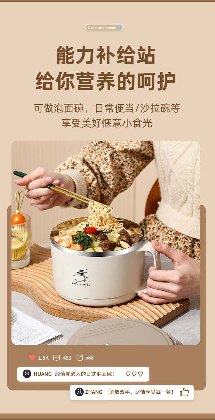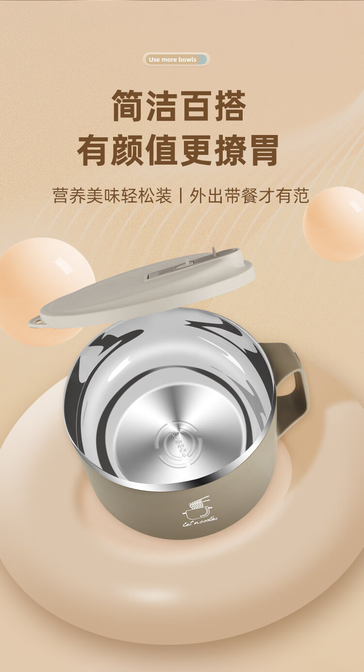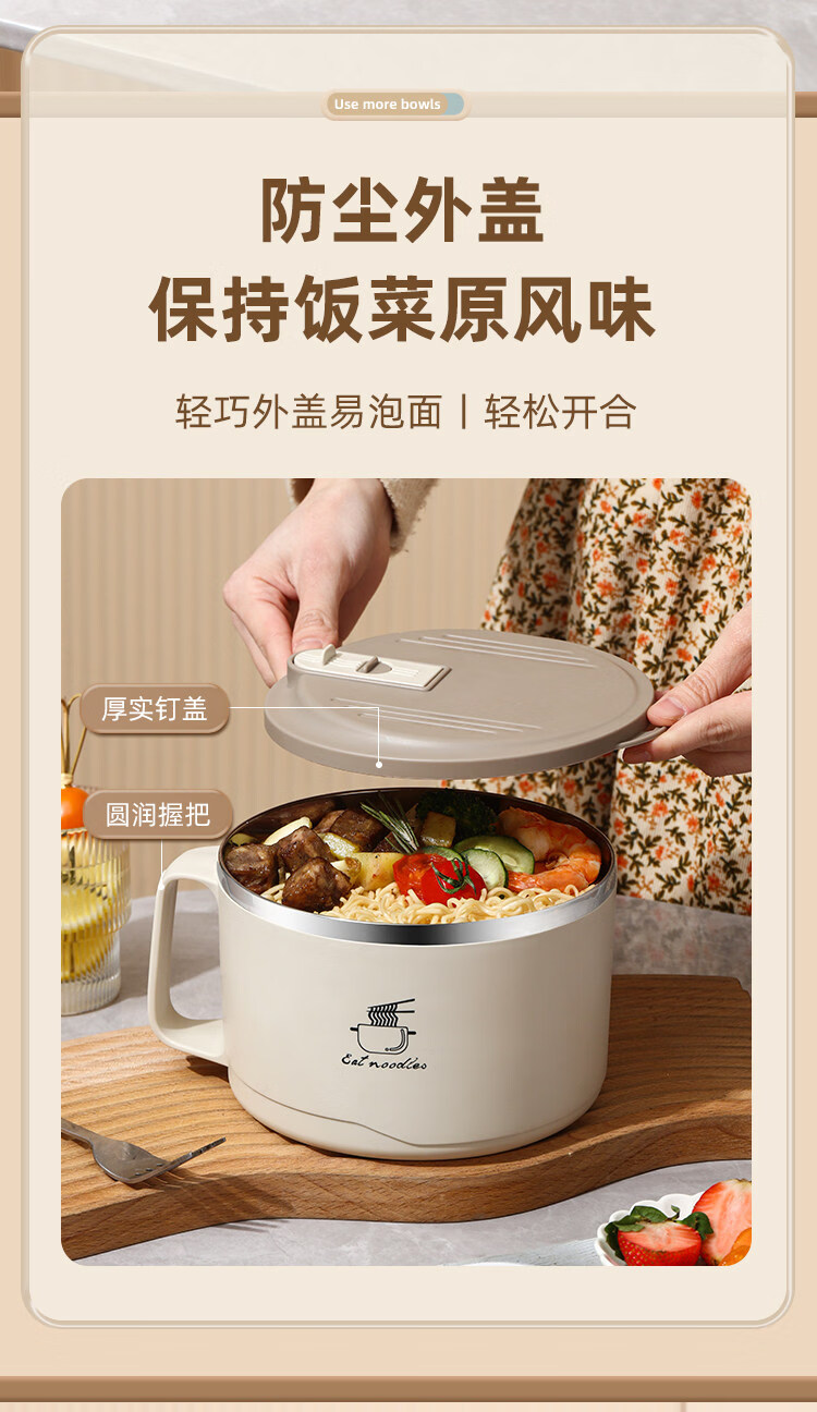 Tuojin German imported quality instant noodle bowl for dormitory students with lid 304 stainless steel instant noodle artifact large capacity Japanese white - can soak 3 packs of instant noodles 1700ml