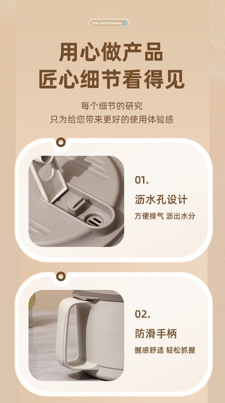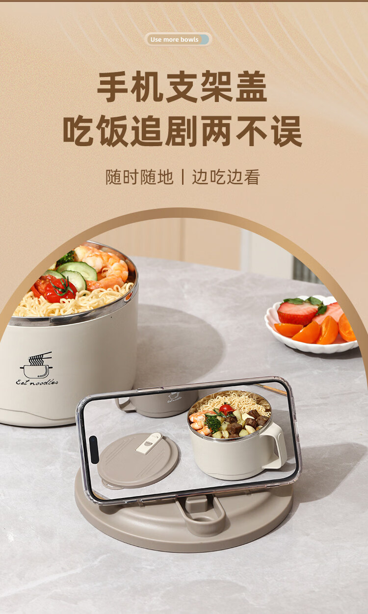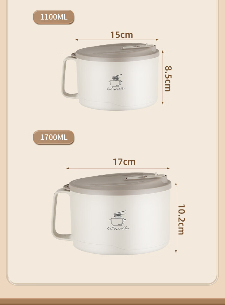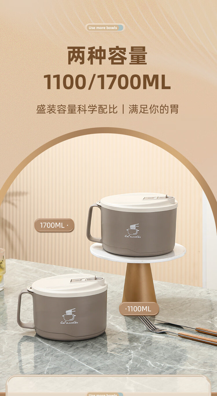Tuojin German imported quality instant noodle bowl with lid for cooking in student dormitory and canteen with bowl and chopsticks set instant noodle bowl 30 304 inner tank space gray + tableware 1700ml