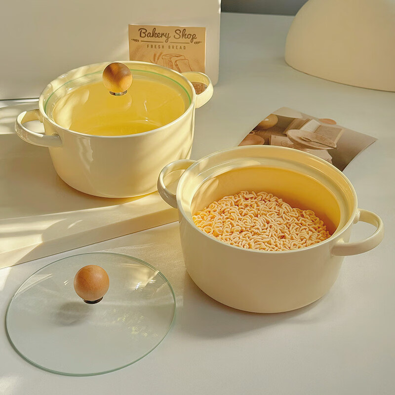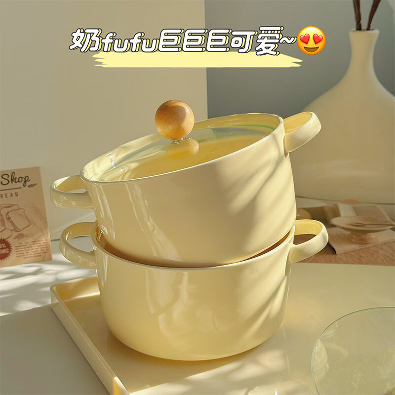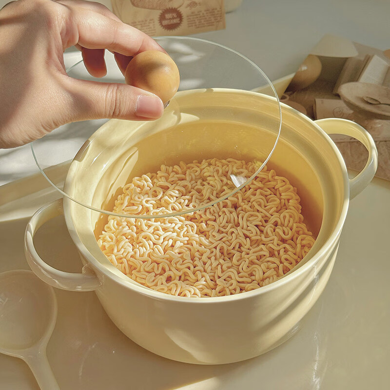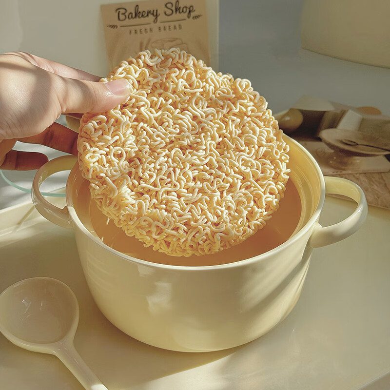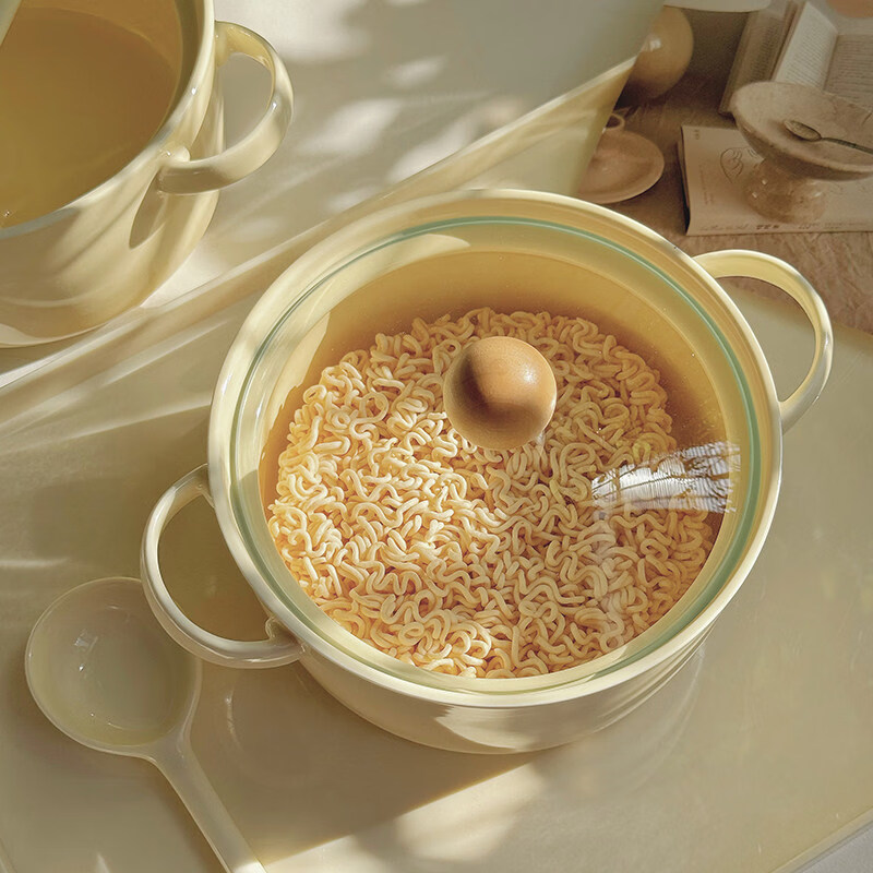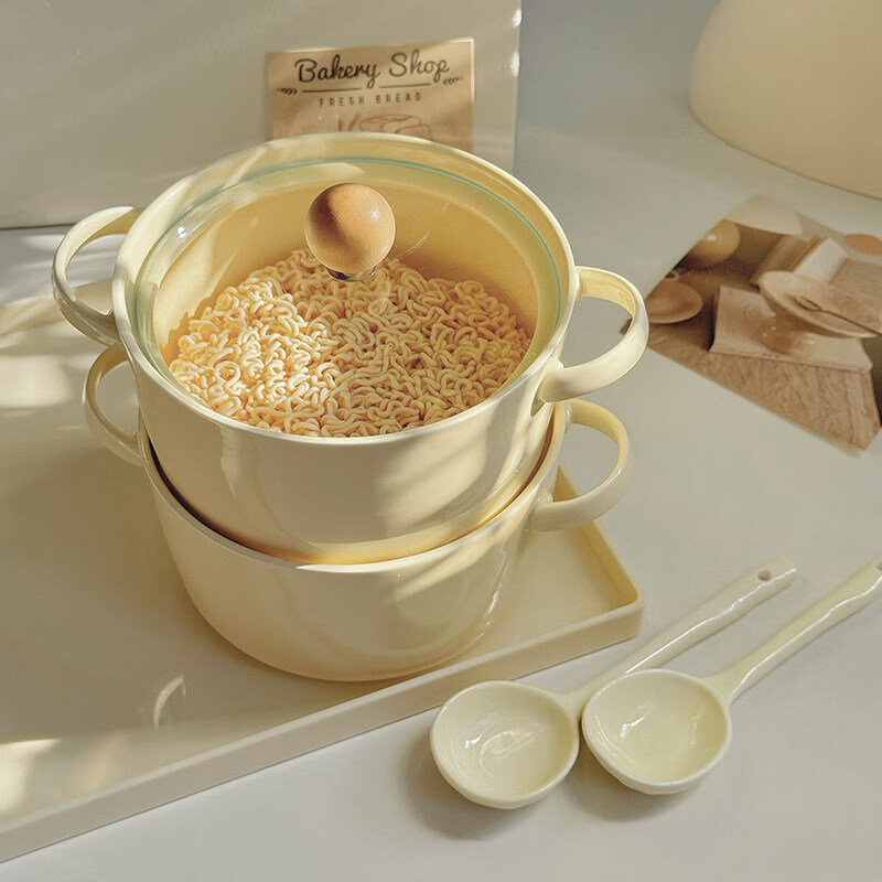 Tuojin imported high-quality milk fufu girly heart student dormitory instant noodle bowl with lid from Germany, high-value ceramic anti-scalding ears, can hold two pieces of noodle cake instant noodle bowl + lid + spoon
