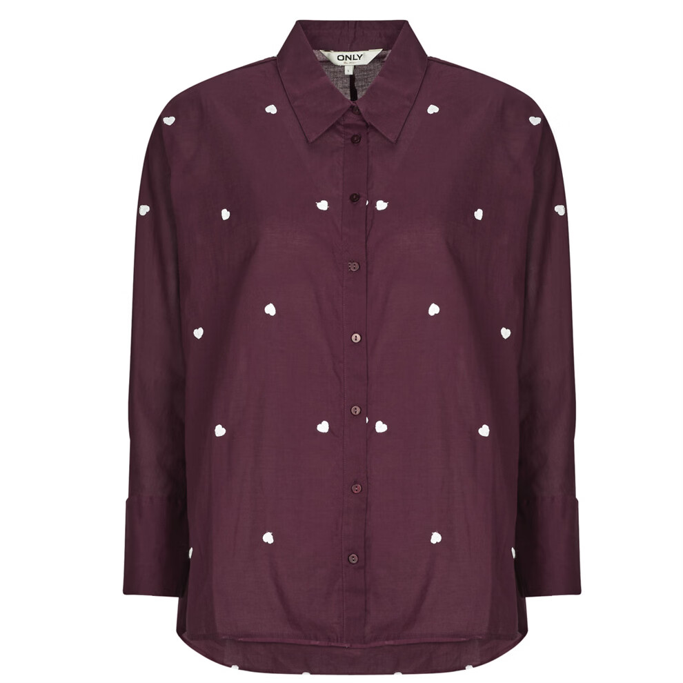 ONLY shirt women's long-sleeved loose slimming wine red 2025 new commuter casual lapel outer top women's dark red XS (EU)