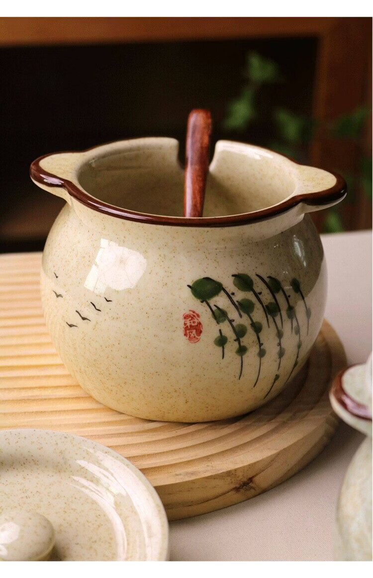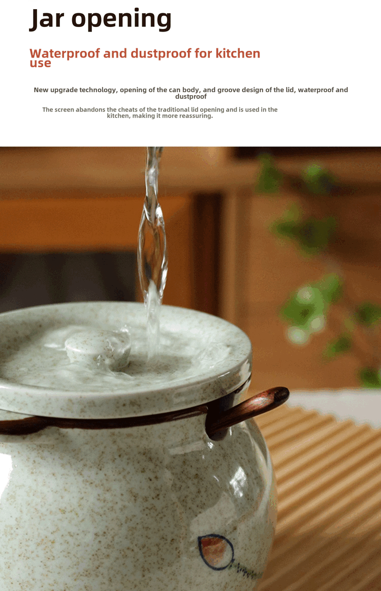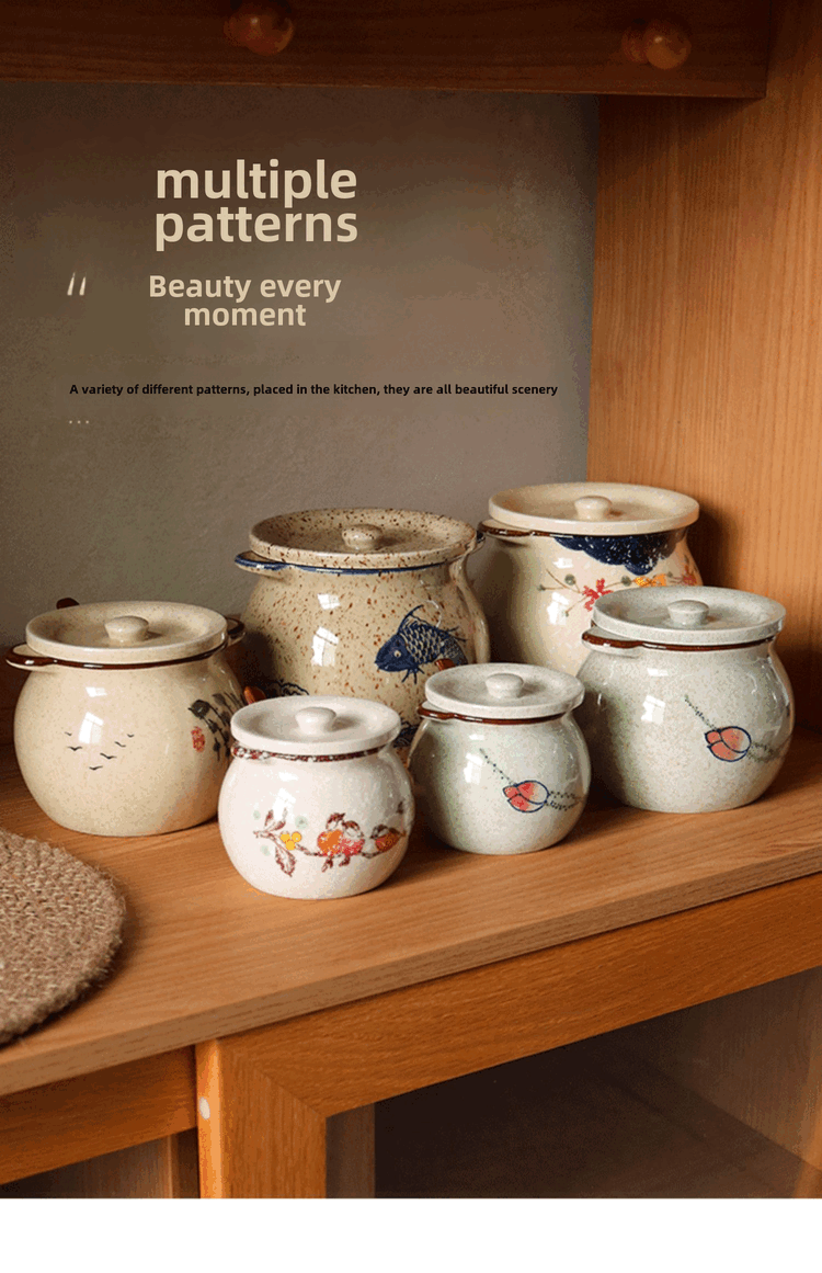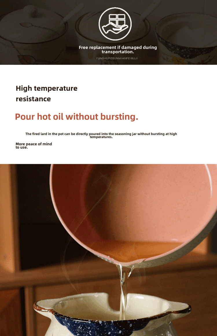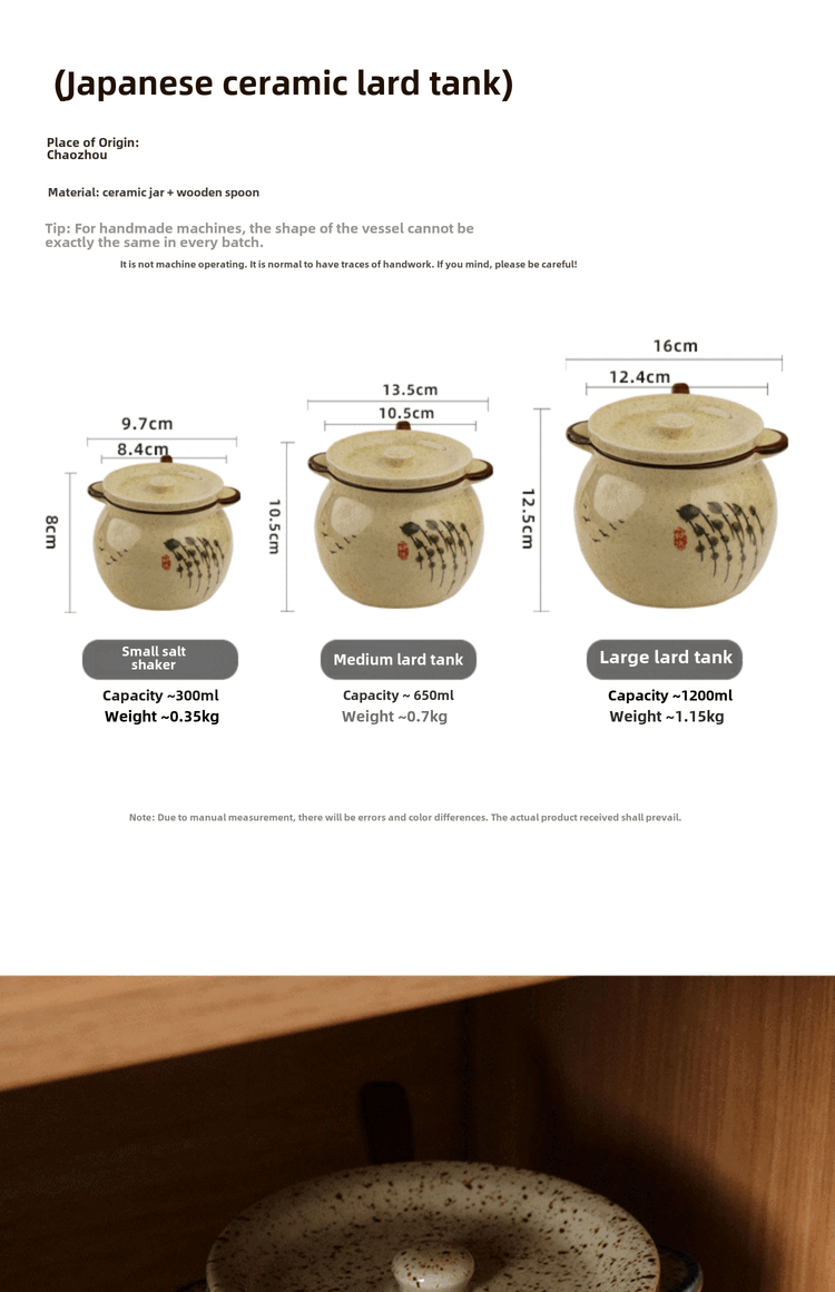 Fantasy Lard Jar Ceramic High Temperature Resistant Oil Spicy Chili Jar Home Kitchen Salt Jar Seasoning Jar Filter Upgraded Wooden Handle - Extra Large Fish Oil Jar 4Jin Jin equal to 0.5kg Packed - No Spoon Mouth - With Filter - 200