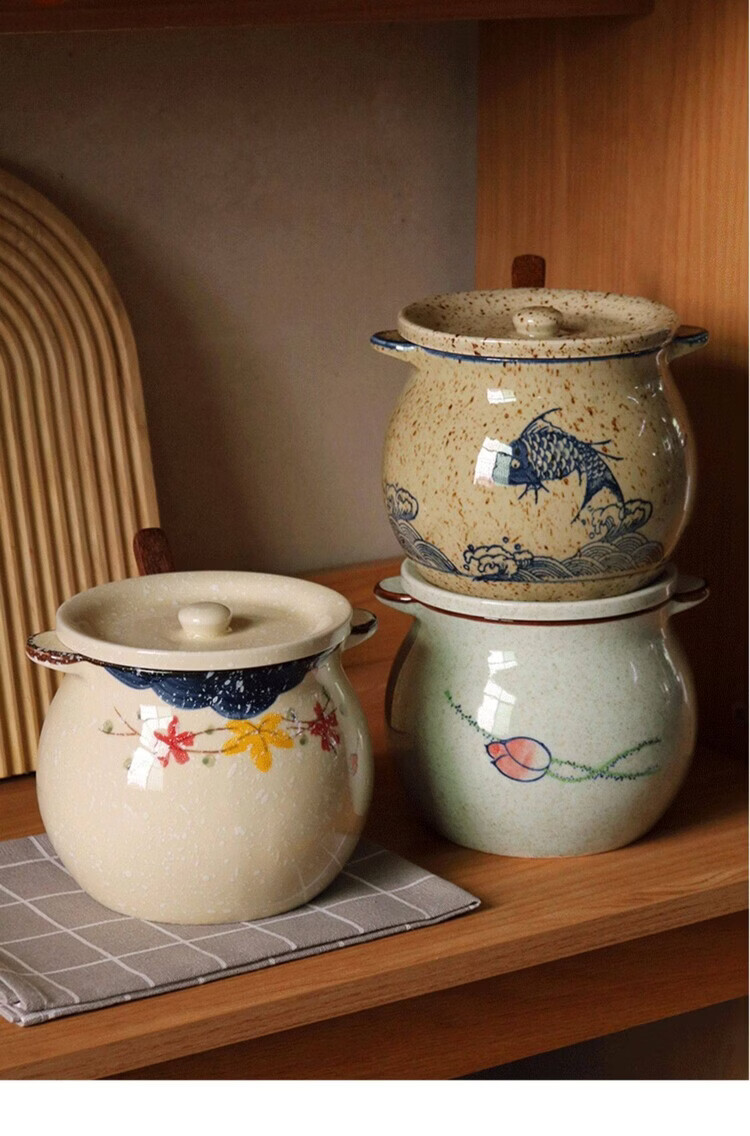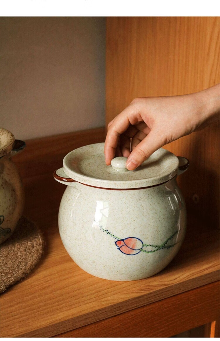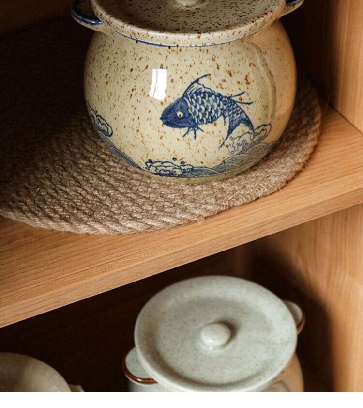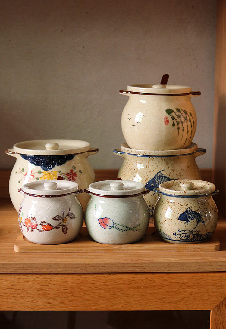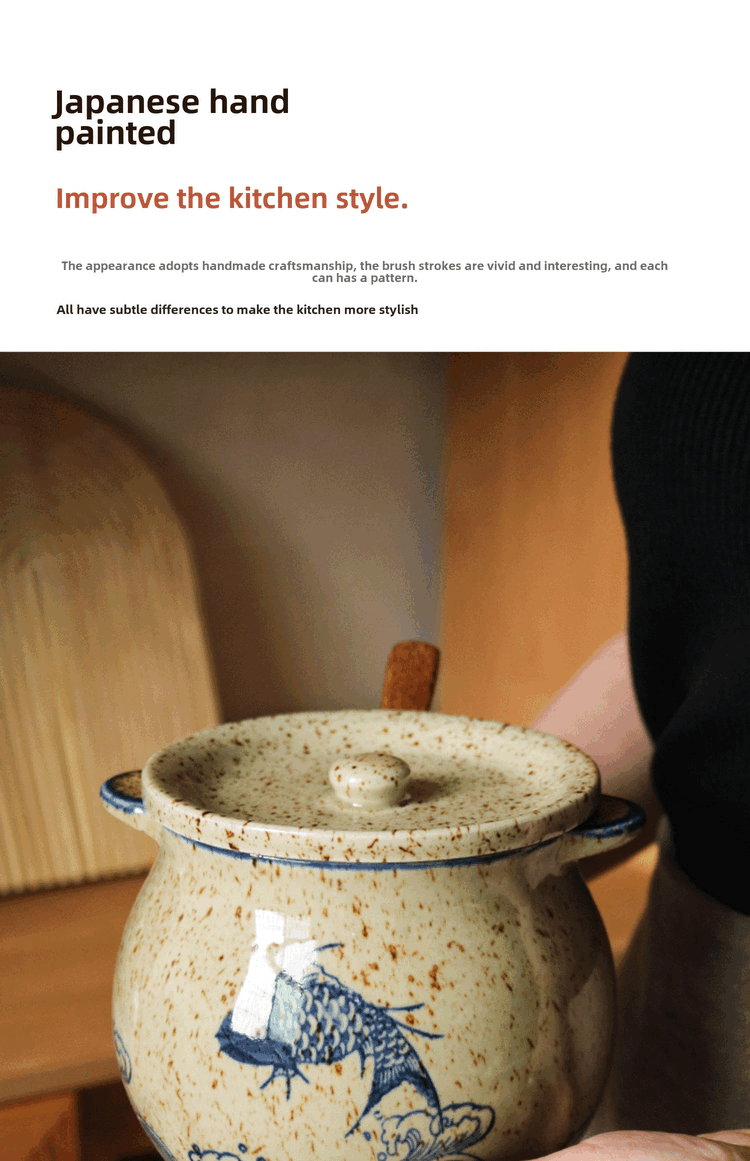Fantasy Lard Jar Ceramic High Temperature Resistant Oil Spicy Chili Jar Home Kitchen Salt Jar Seasoning Jar Filter Upgraded Wooden Handle - Extra Large Fish Oil Jar 4Jin Jin equal to 0.5kg Packed - No Spoon Mouth - With Filter - 200