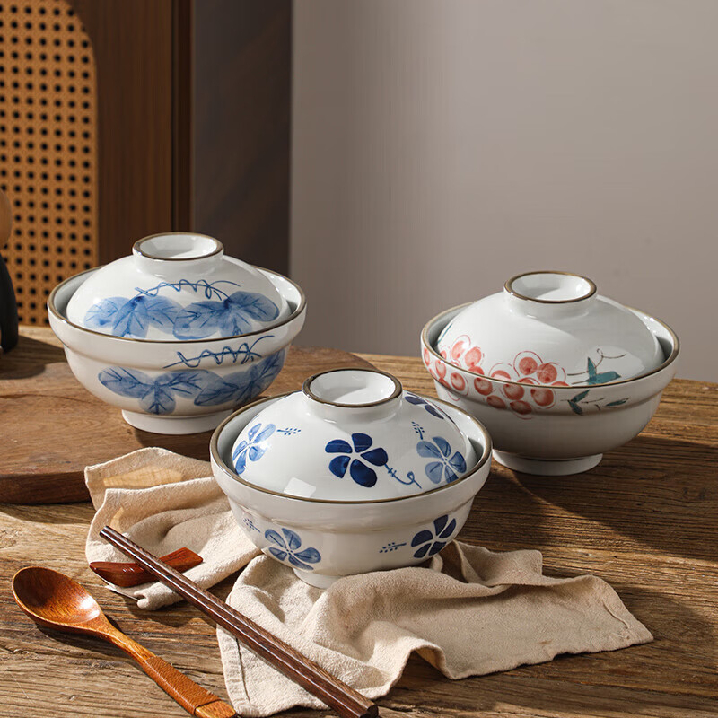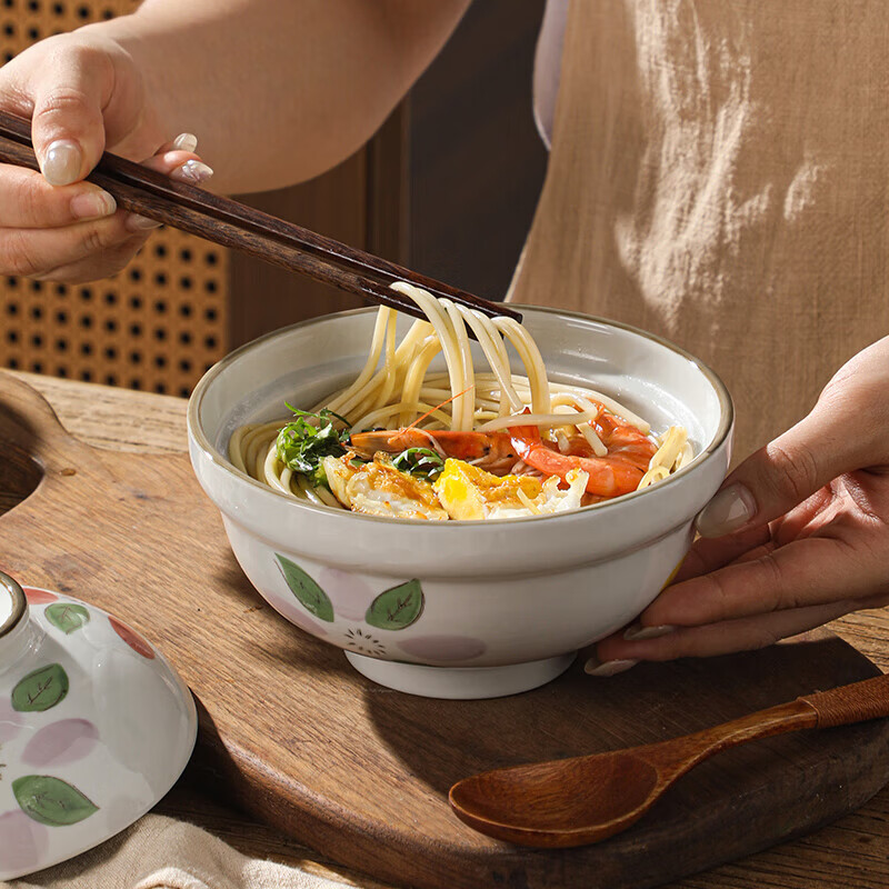 Tuojin Japanese large instant noodle bowl with lid ramen bowl ceramic bowl soup noodle bowl household ceramic large 6-inch soup bowl with lid 6-inch soup bowl with lid - Uncaria