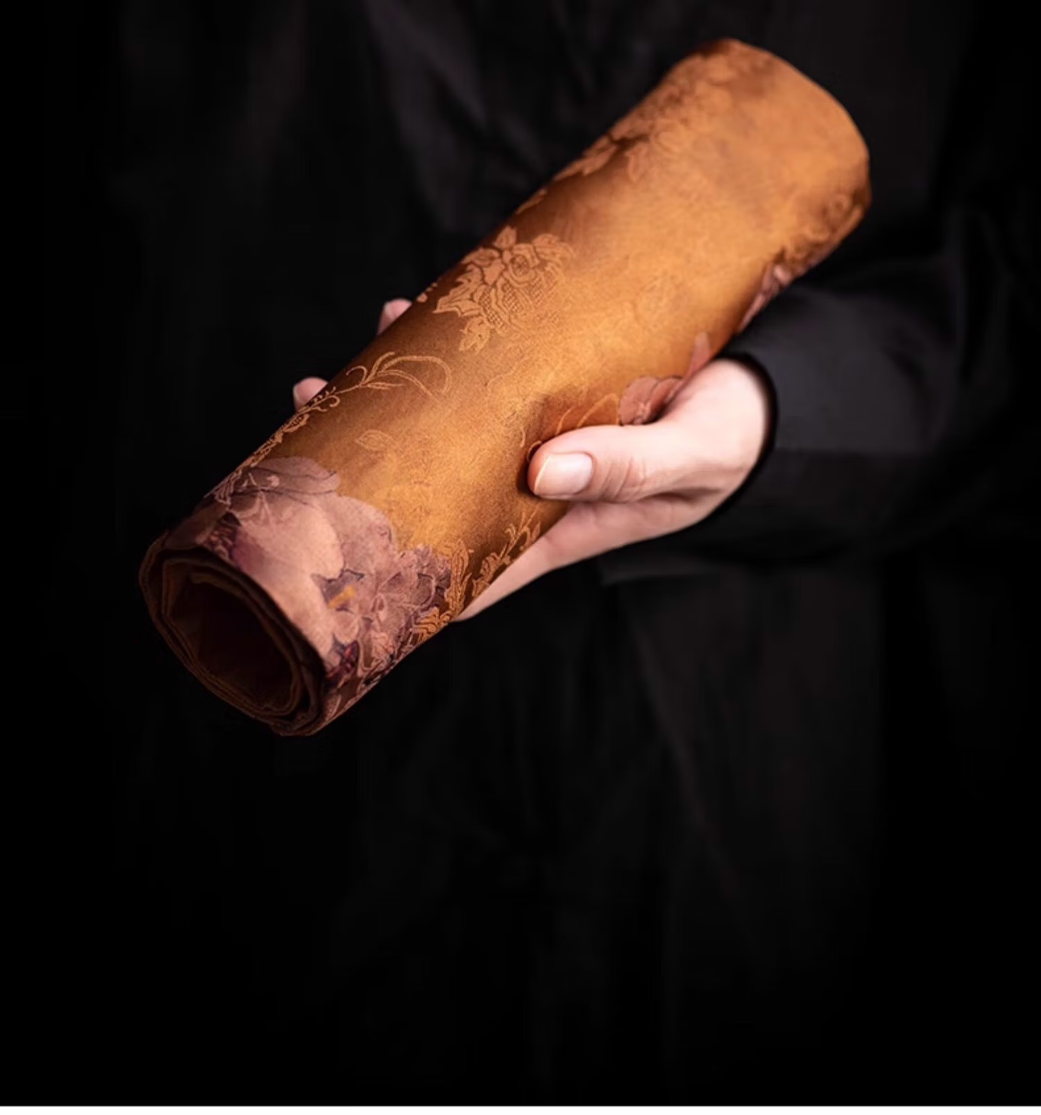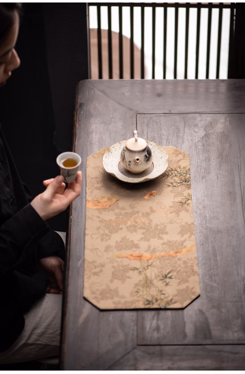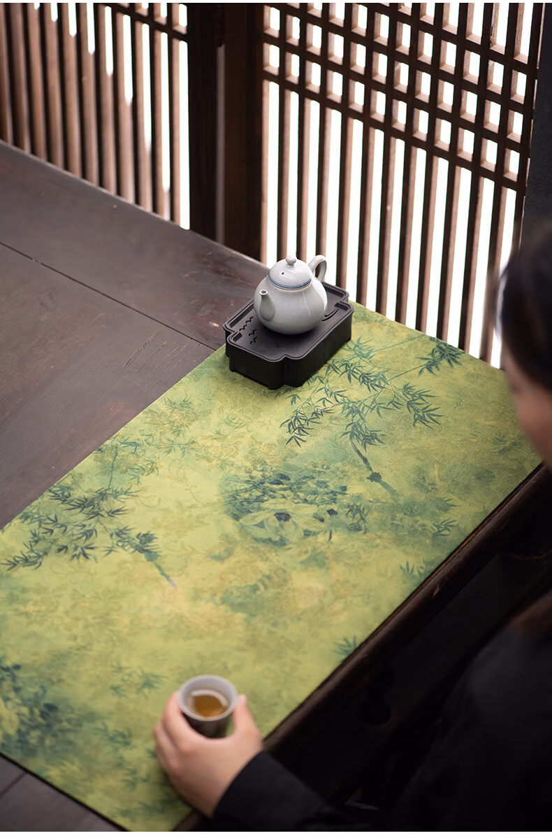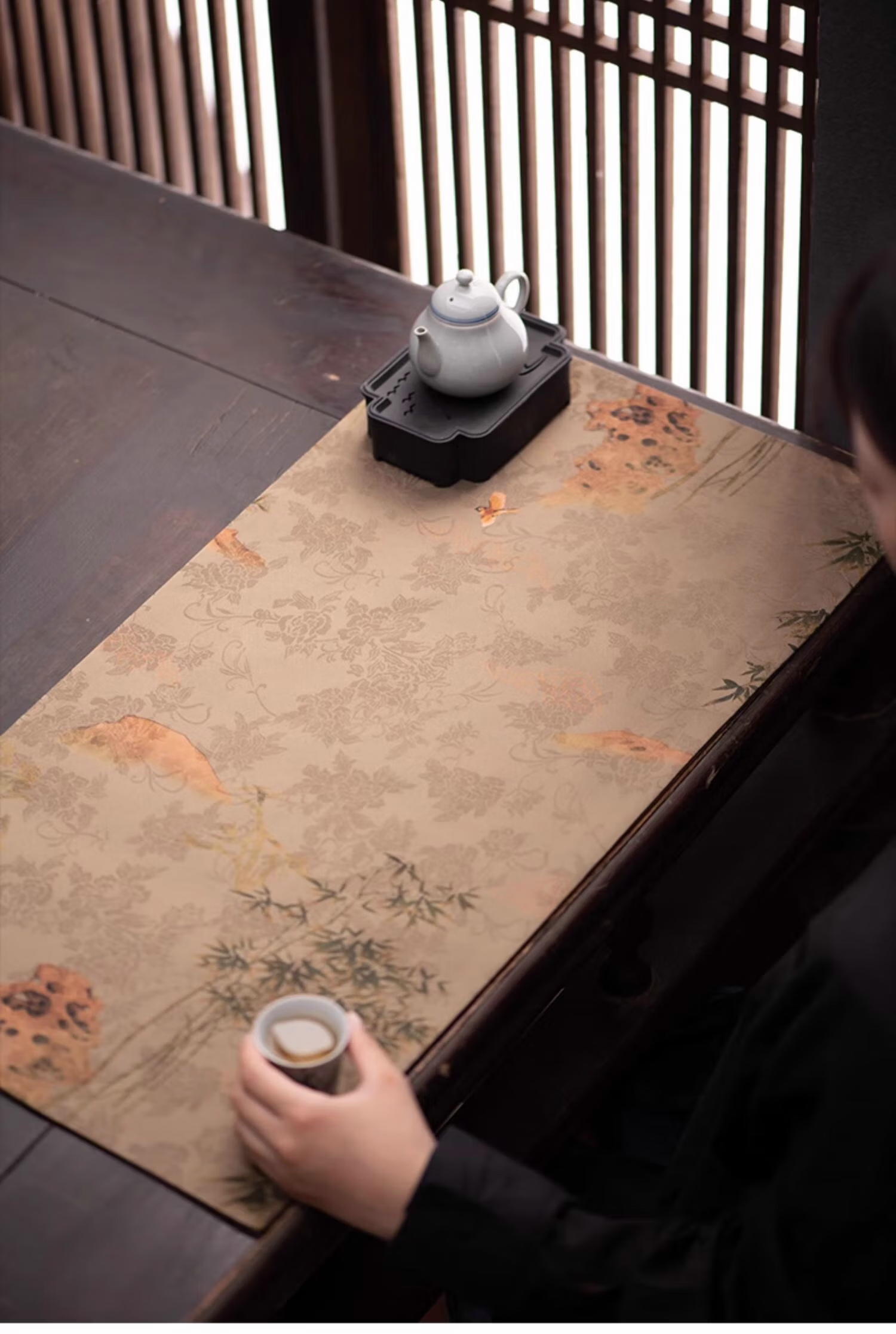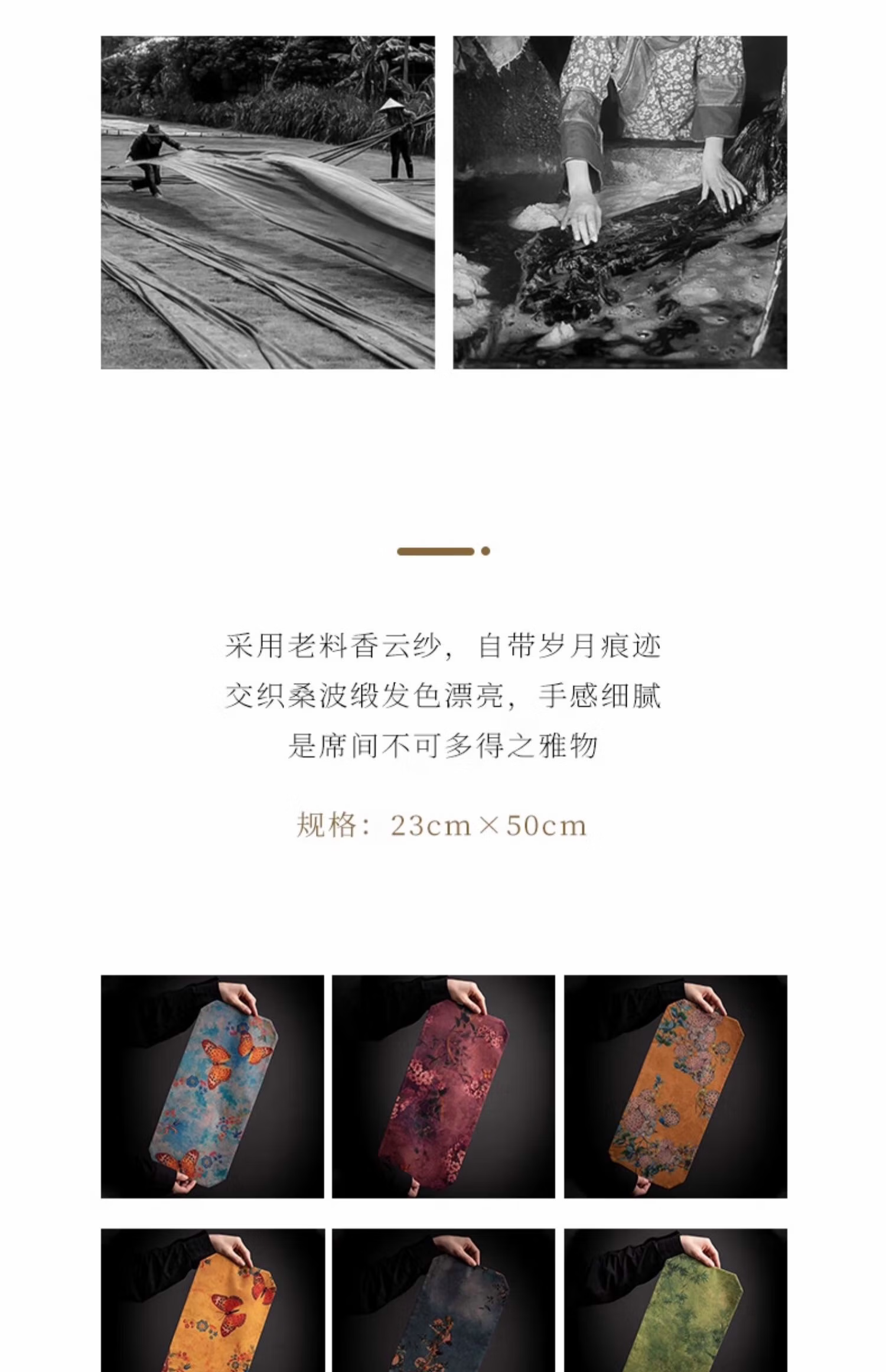 He Jiagong Xiangyun gauze waterproof tea towel tea party tablecloth Zen retro rectangular table runner dry bubble mat Chinese style light luxury Xiangyun gauze flat peach-dark blue (about 50*22cm)