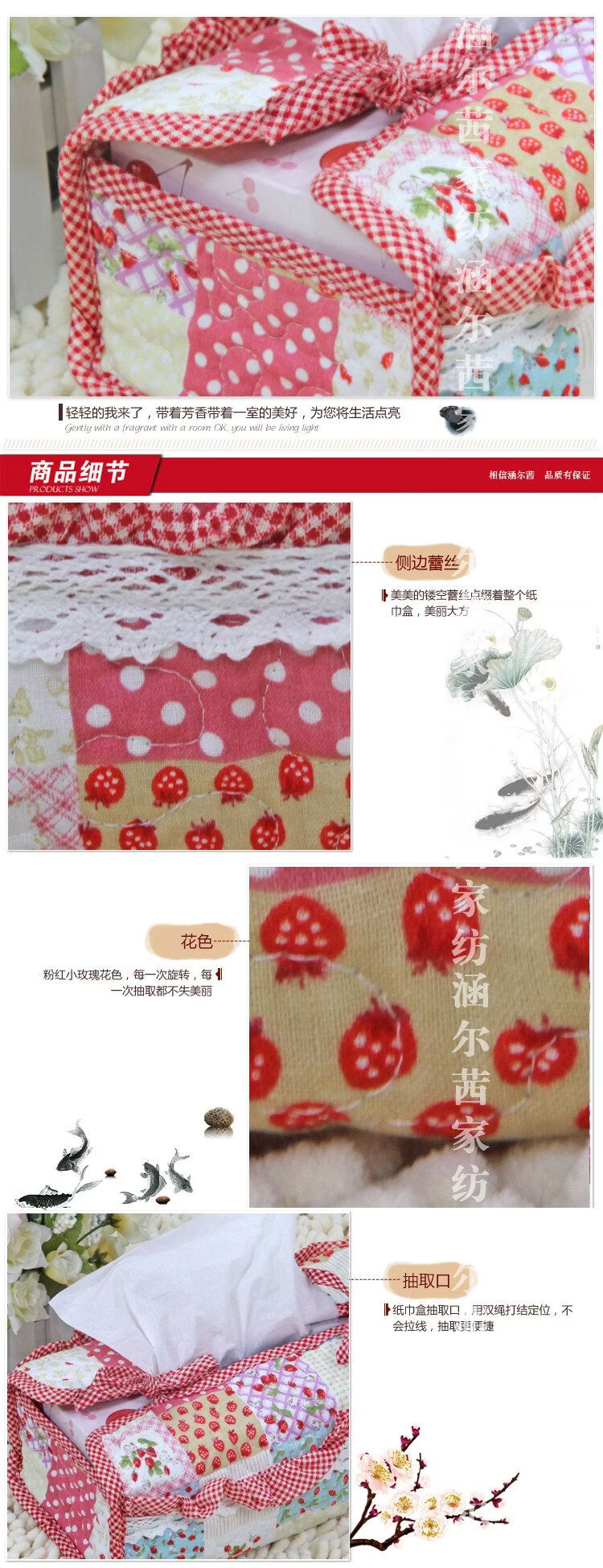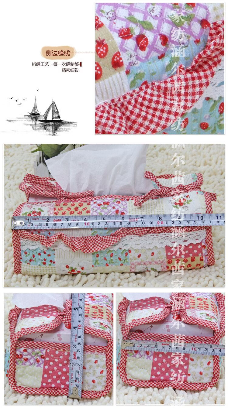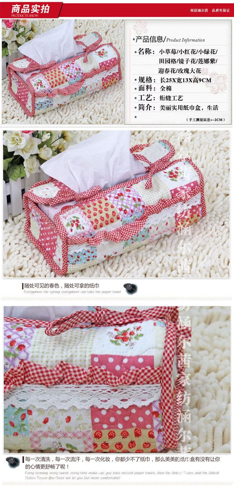 Shantou Lincun Quilted Creative Box Cover Fabric Pastoral Cute Fashion Korean Car Tissue Box Home New Product Tissue Cover Lace Small Strawberry_Large Rectangular Type
