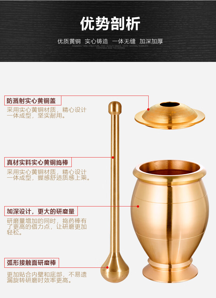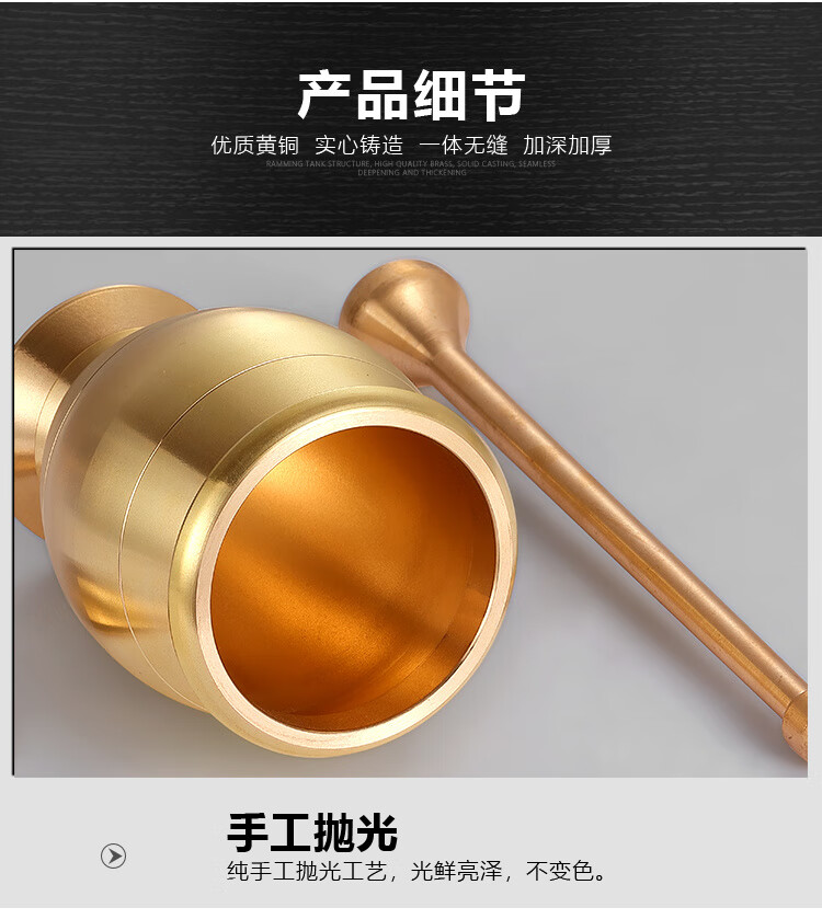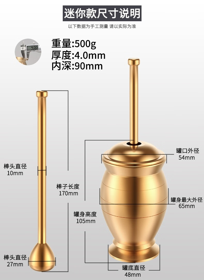 Hualeji medicine pot, copper pestle, medicine cup, mortar, mortar, mortar, copper cup, mashing garlic masher, copper medium size, no gift