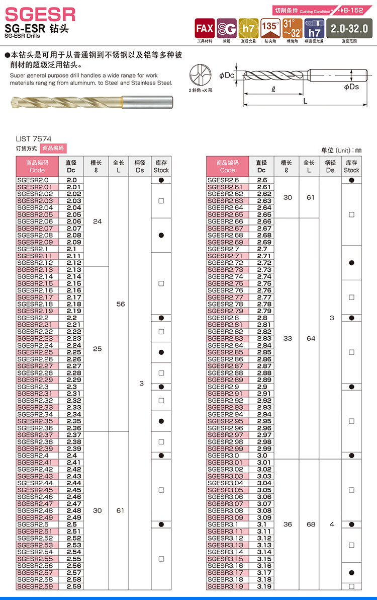 NACHI Japanese Fujitsu extended drill bit L7574 powder metallurgy high speed steel titanium alloy stainless steel drilling drill diameter 10 points 1 single