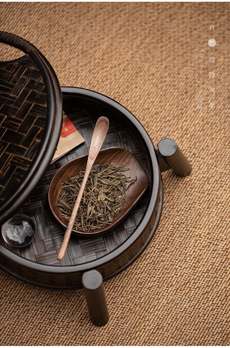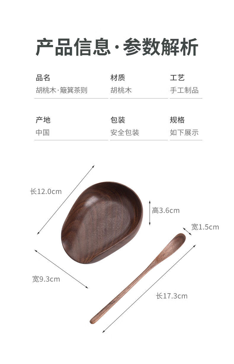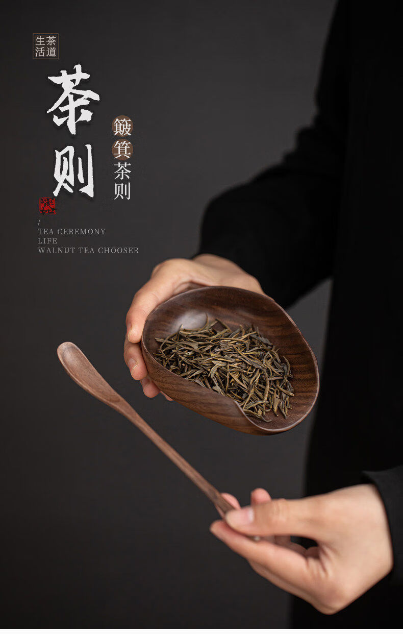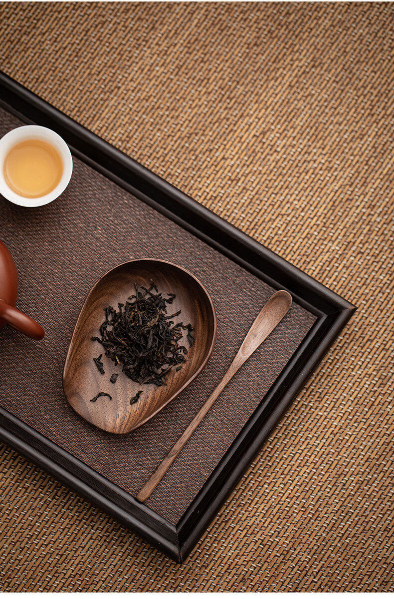 Banyi North American Black Walnut Tea Ceremony Accessories Wooden Teaspoon Teaspoon Tea Pick Tea Leaf Shovel Tea Lotus Sauce Flat Black Walnut Two-piece Set Tea Pick + Round Melon
