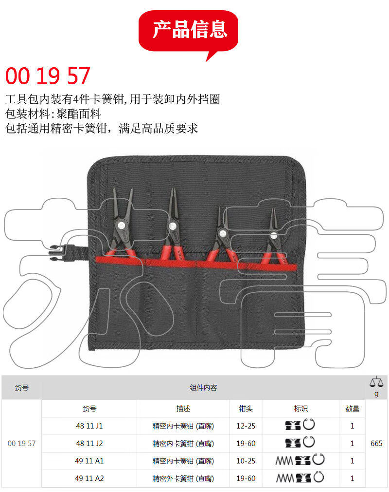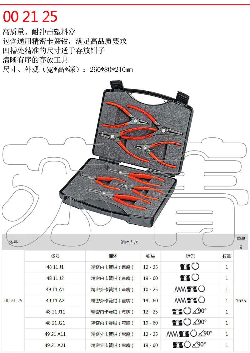 Kenipex German original internal and external circlip pliers set straight elbow 001957002125 0021258-piece set