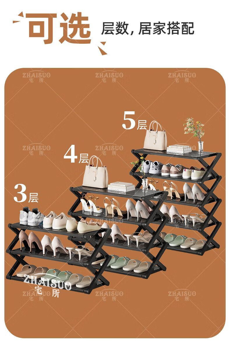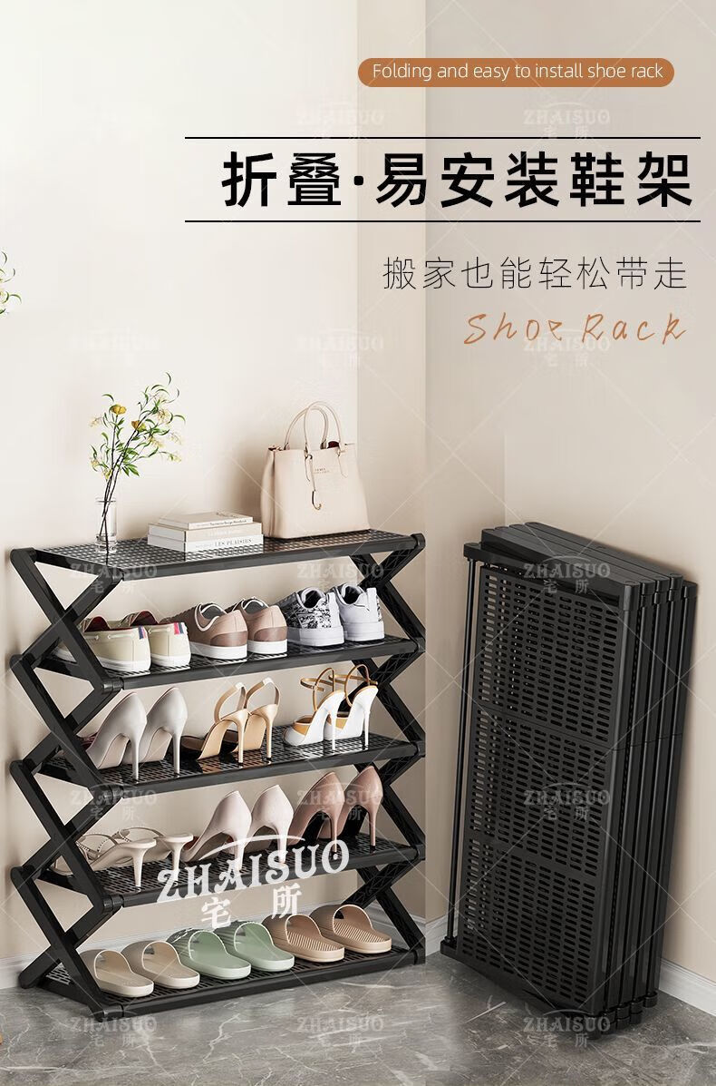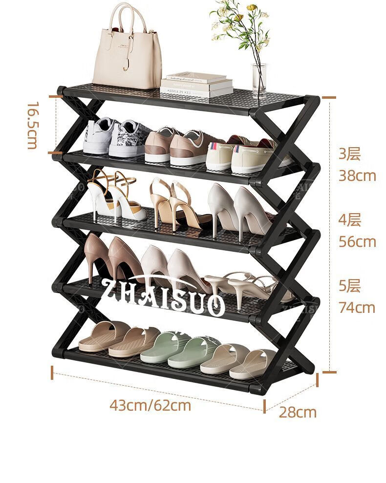 Wing Fantasy New Simple Shoe Cabinet Narrow Home Door Shoe Rack Multi-layer Folding Shoe Storage Artifact Dormitory Student Desk 4 Layers 43CM - Upgraded Thickened Folding Model No Installation Small Second Folding丨PP Clamp Board丨Strong and Stable
