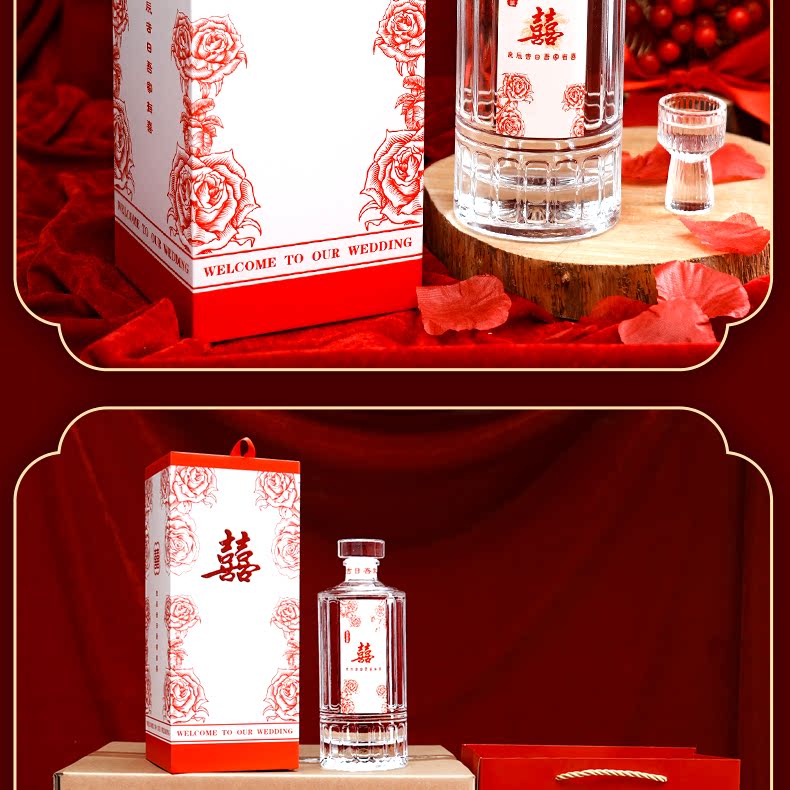 Fantasy Wedding Wine Bottle 500 Pack Private Customized Wine Bottle Sealed Gift Box Set for Gifting Rose Vertical Pattern Tube Box