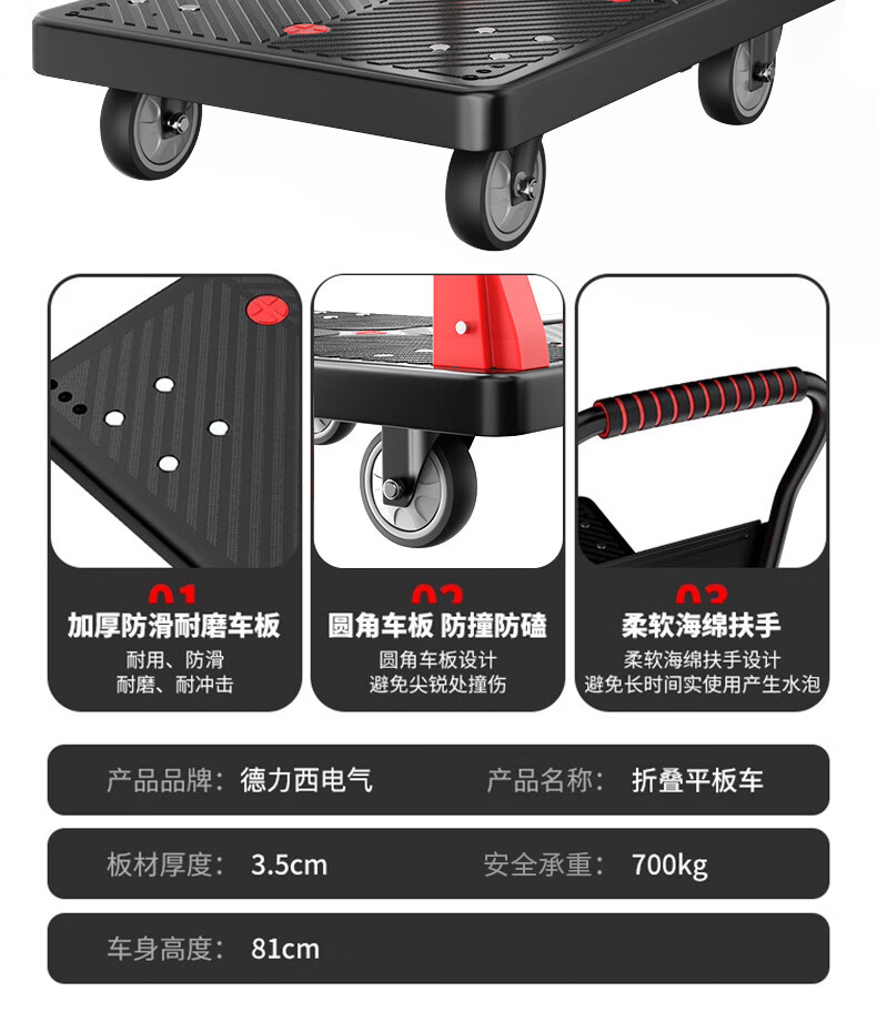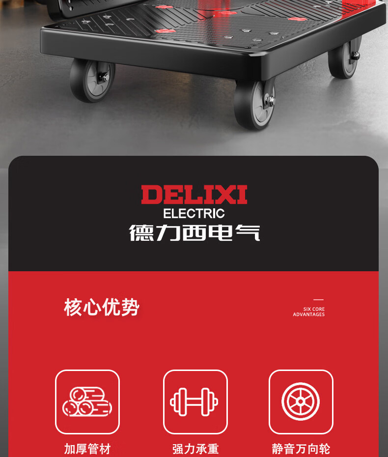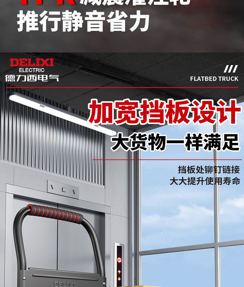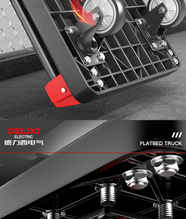 DELIXI ELECTRIC electric trolley, cargo handling trolley, household portable folding flatbed trolley, express delivery trolley, industrial flagship Max version 90*60*85cm 5-inch TPR static
