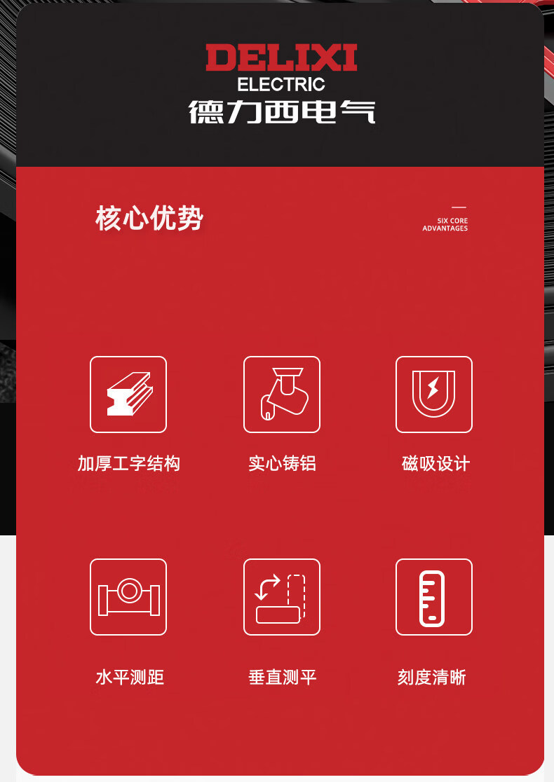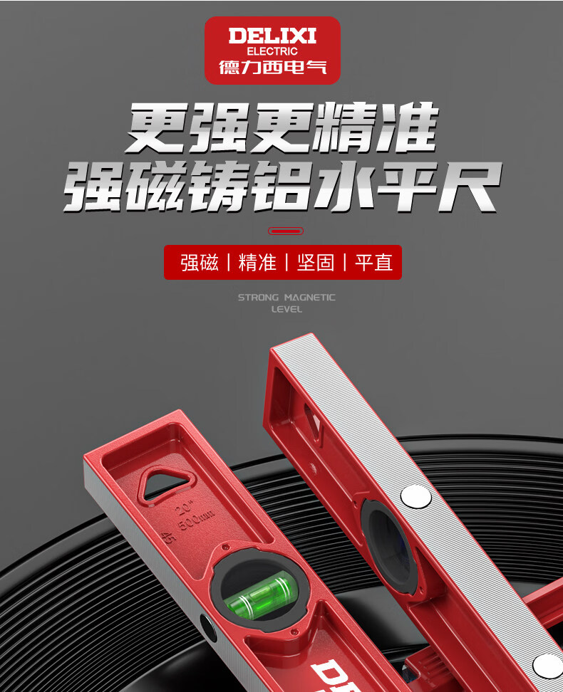 DELIXI ELECTRIC electrical high-precision level small magnetic strong magnetic multi-functional solid cast aluminum anti-fall level solid cast aluminum 300mm solid cast aluminum non-magnetic industrial grade high precision