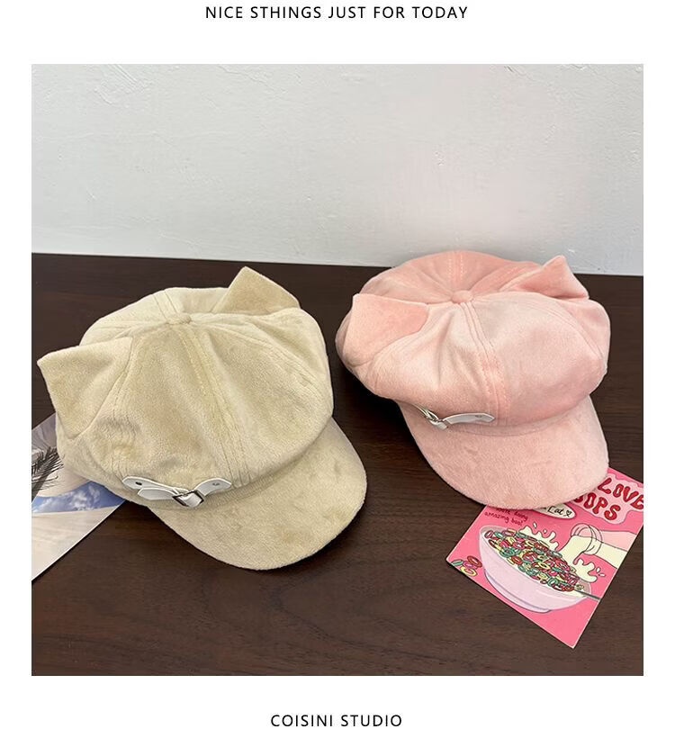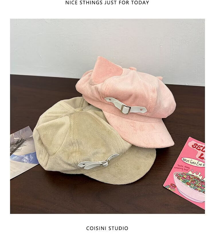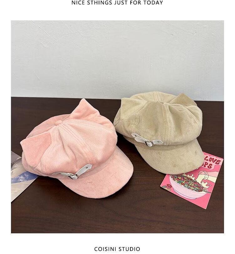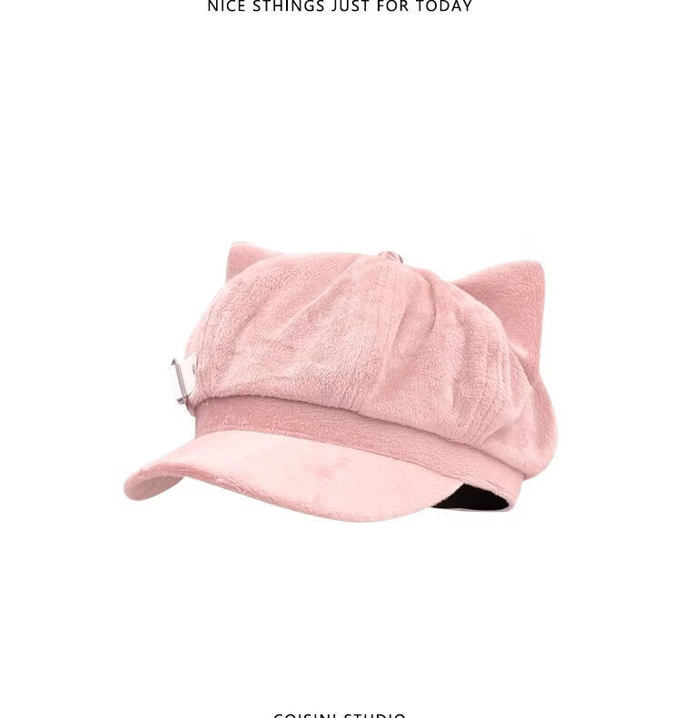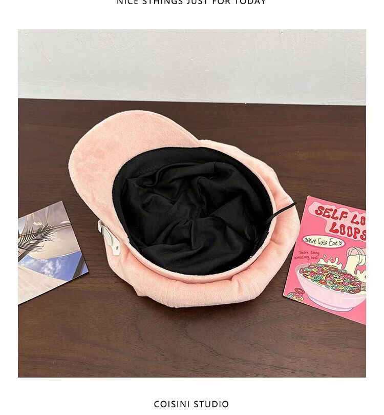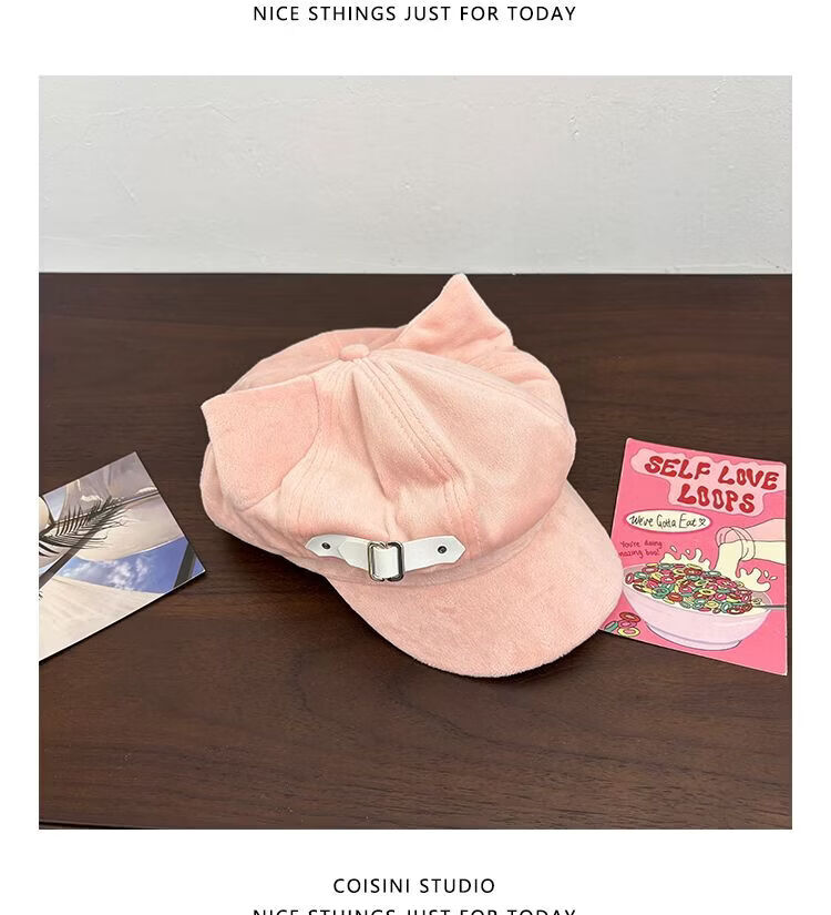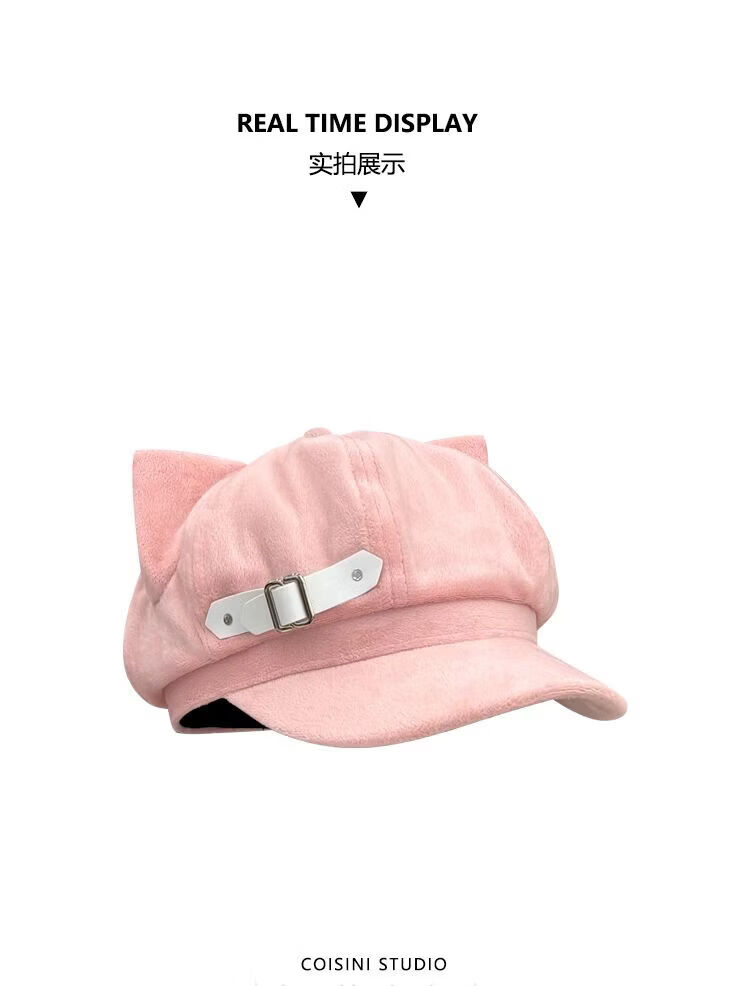 Parmaito cat-ear beret, female niche two-dimensional subculture sweet octagonal hat, big head circumference, small face, pink, one size fits all