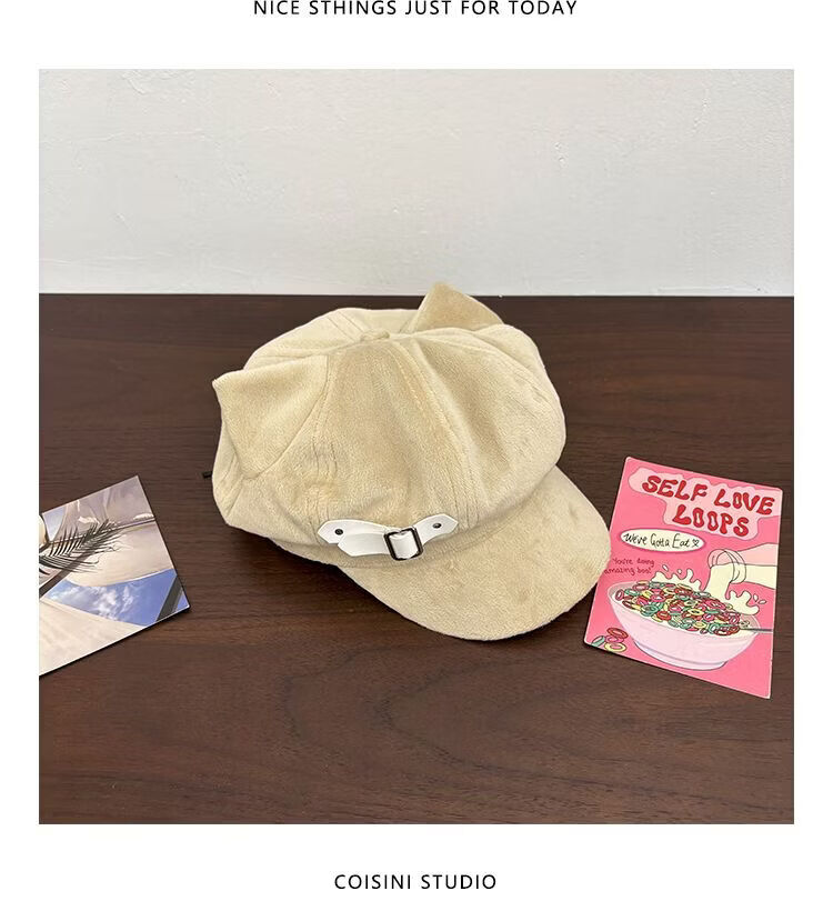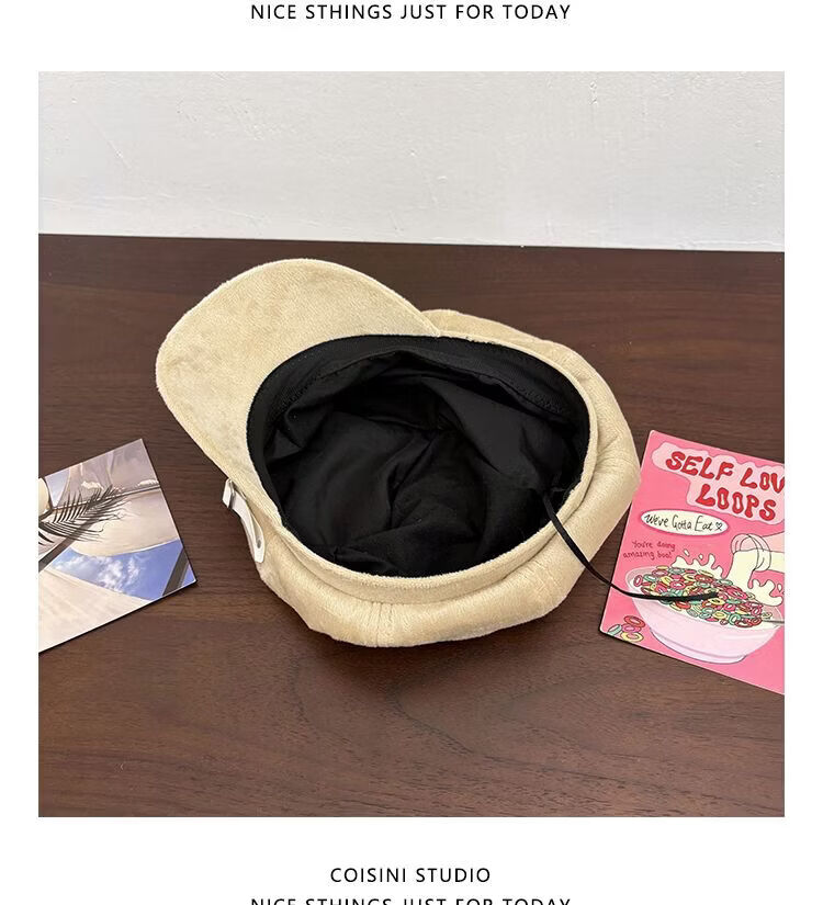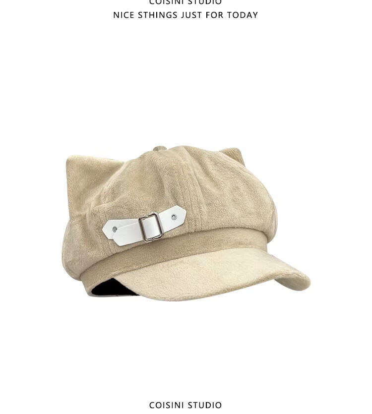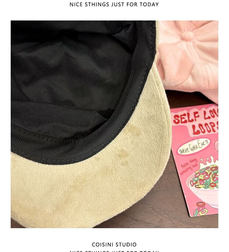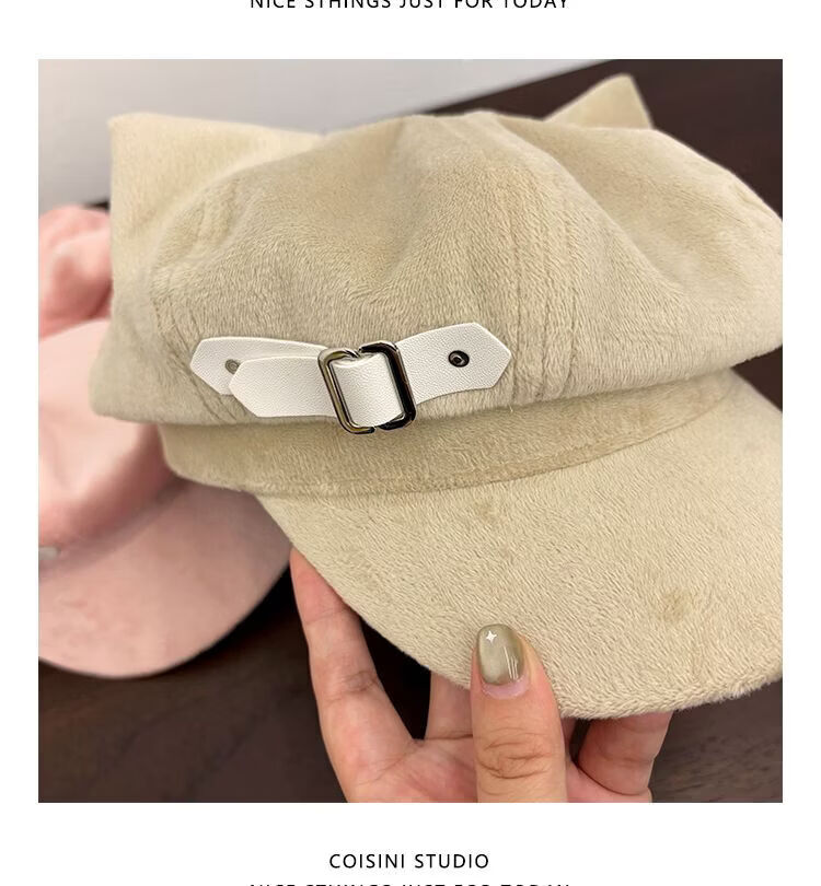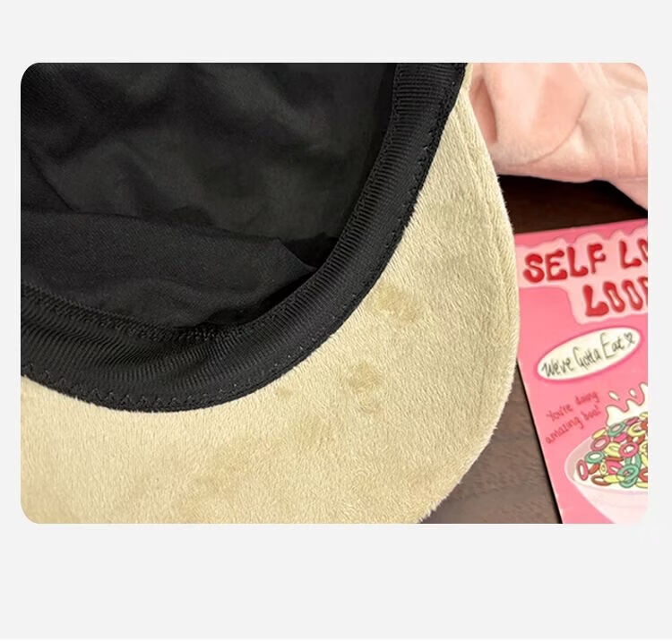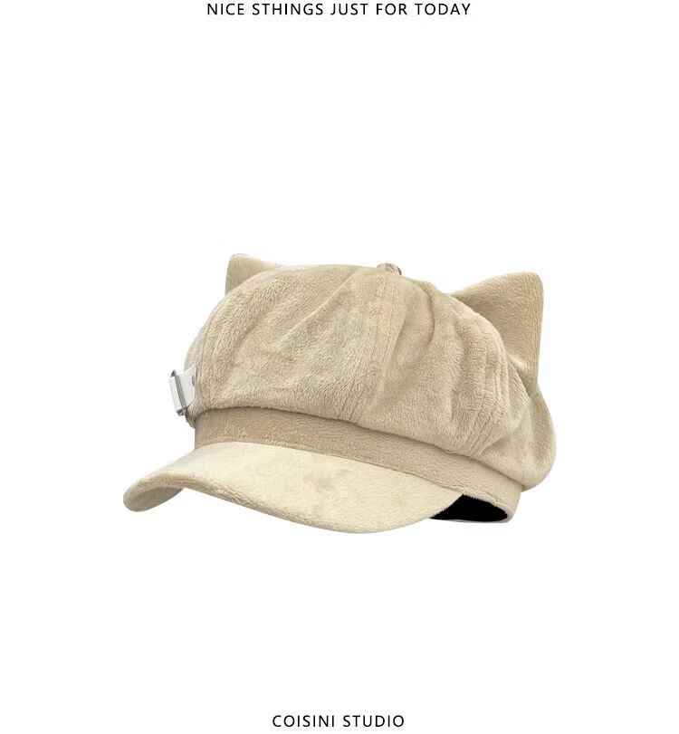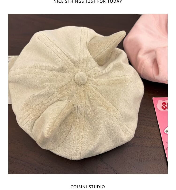 Parmaito cat-ear beret, female niche two-dimensional subculture sweet octagonal hat, big head circumference, small face, pink, one size fits all