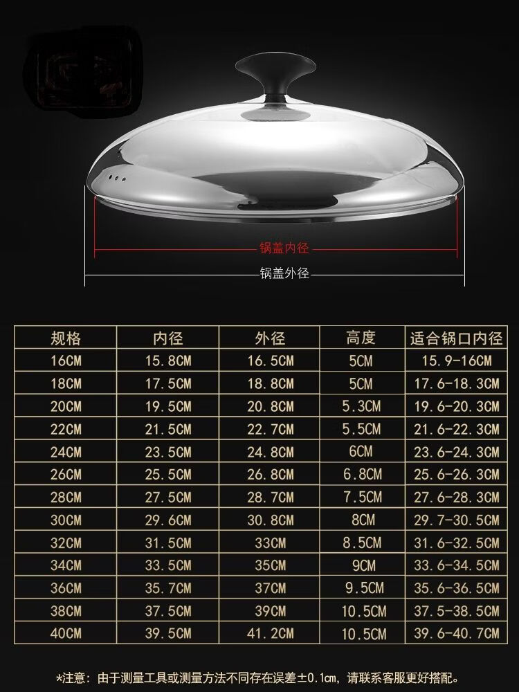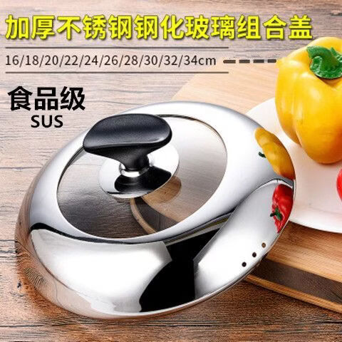 Pot lid round universal lid flat bottom large pot lid stainless steel pot lid wok lid 16-40cm 30Specifications thickened luxury stand-up style