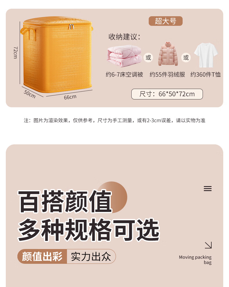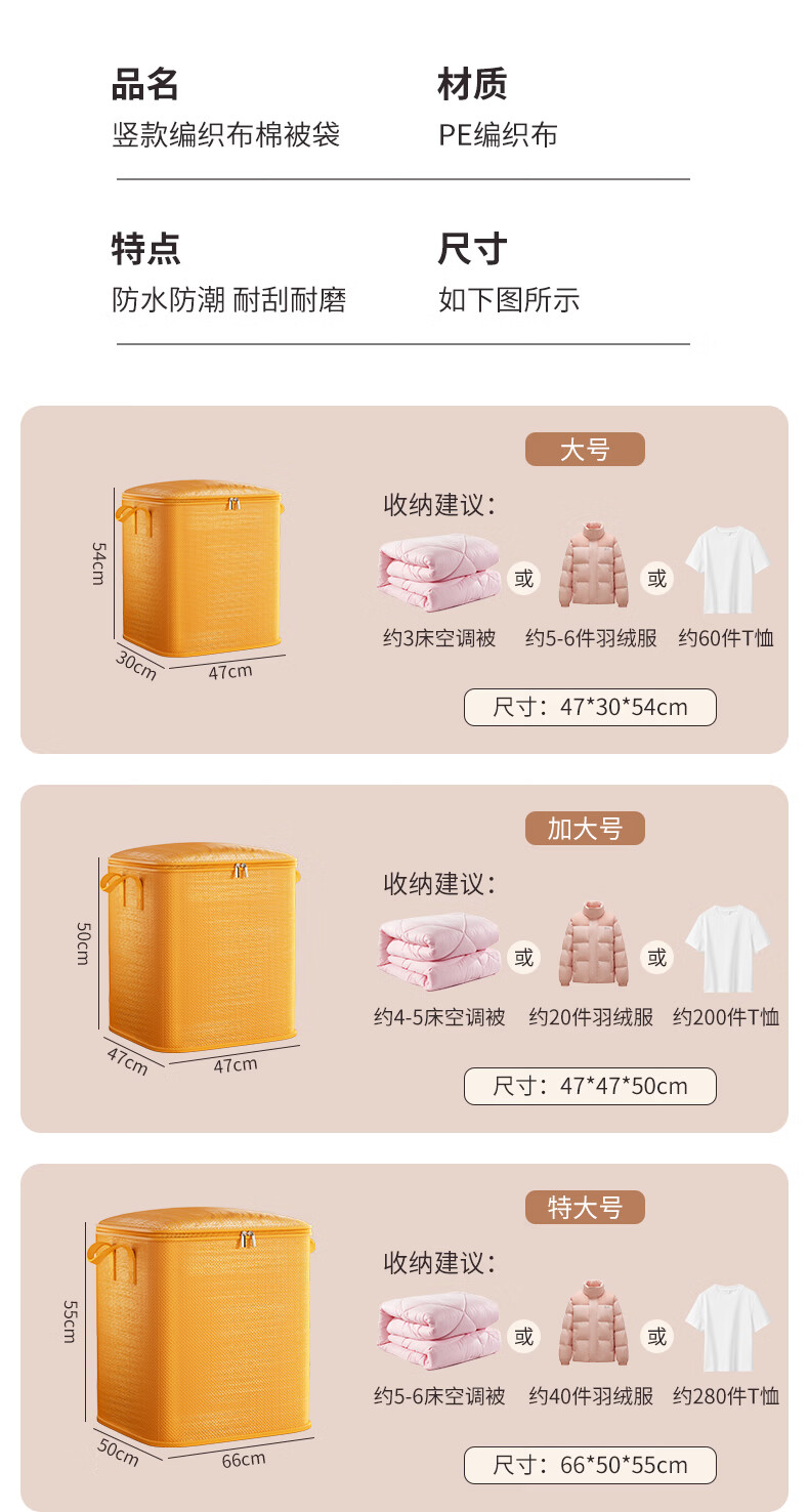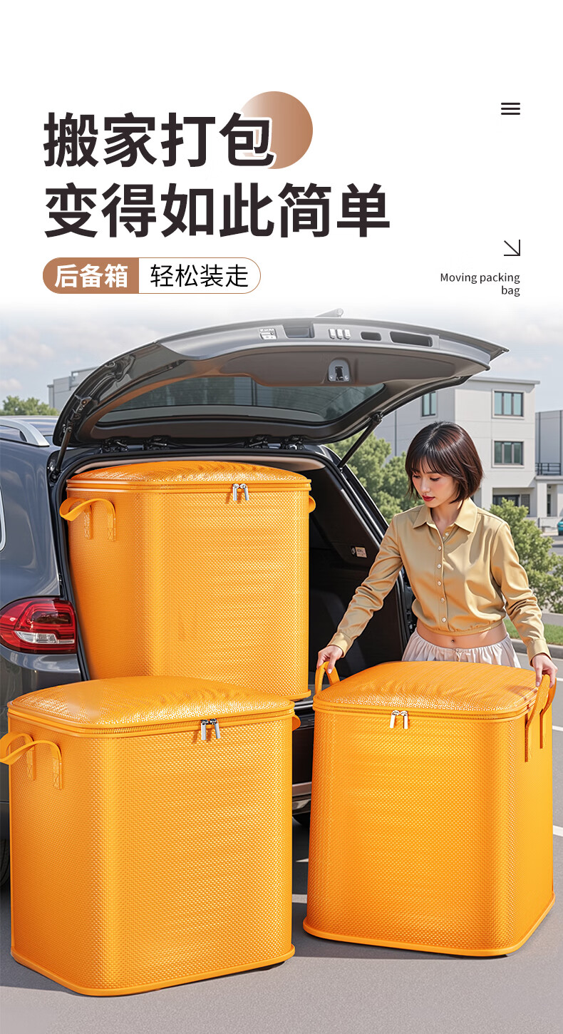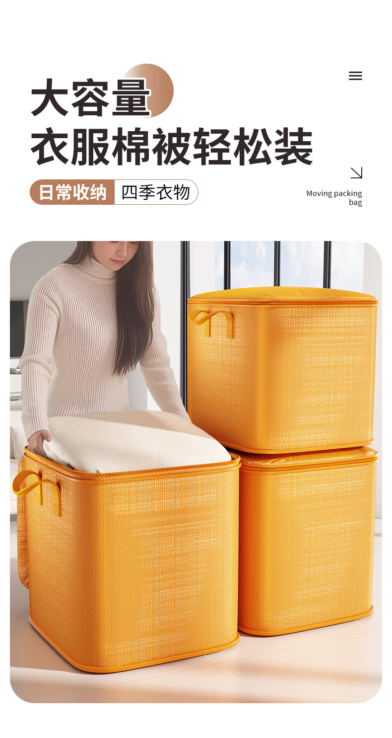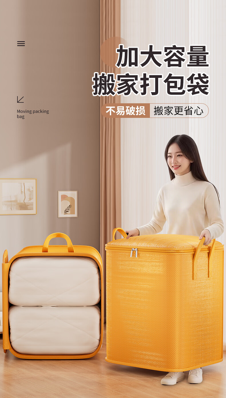 Zhaxiao only quilt storage bag, moving packing belt, organizing clothes and quilts, special extra large moisture-proof dormitory dormitory and on-campus thickened students, orange large size - extra large capacity 47*30*54cm