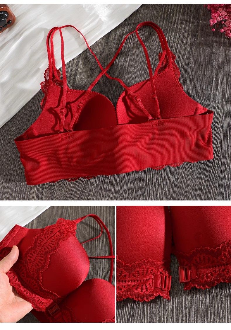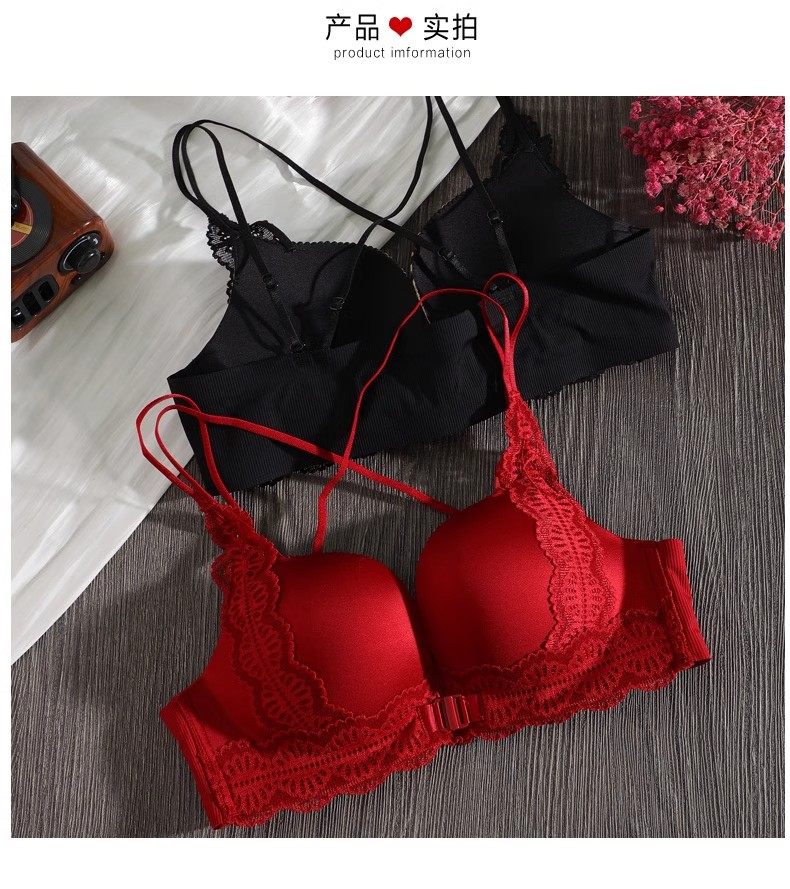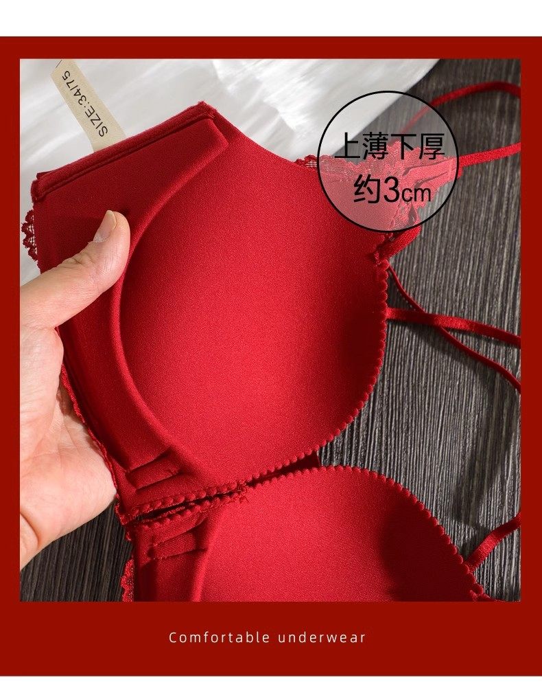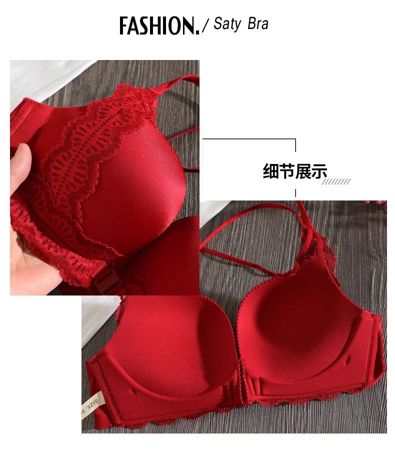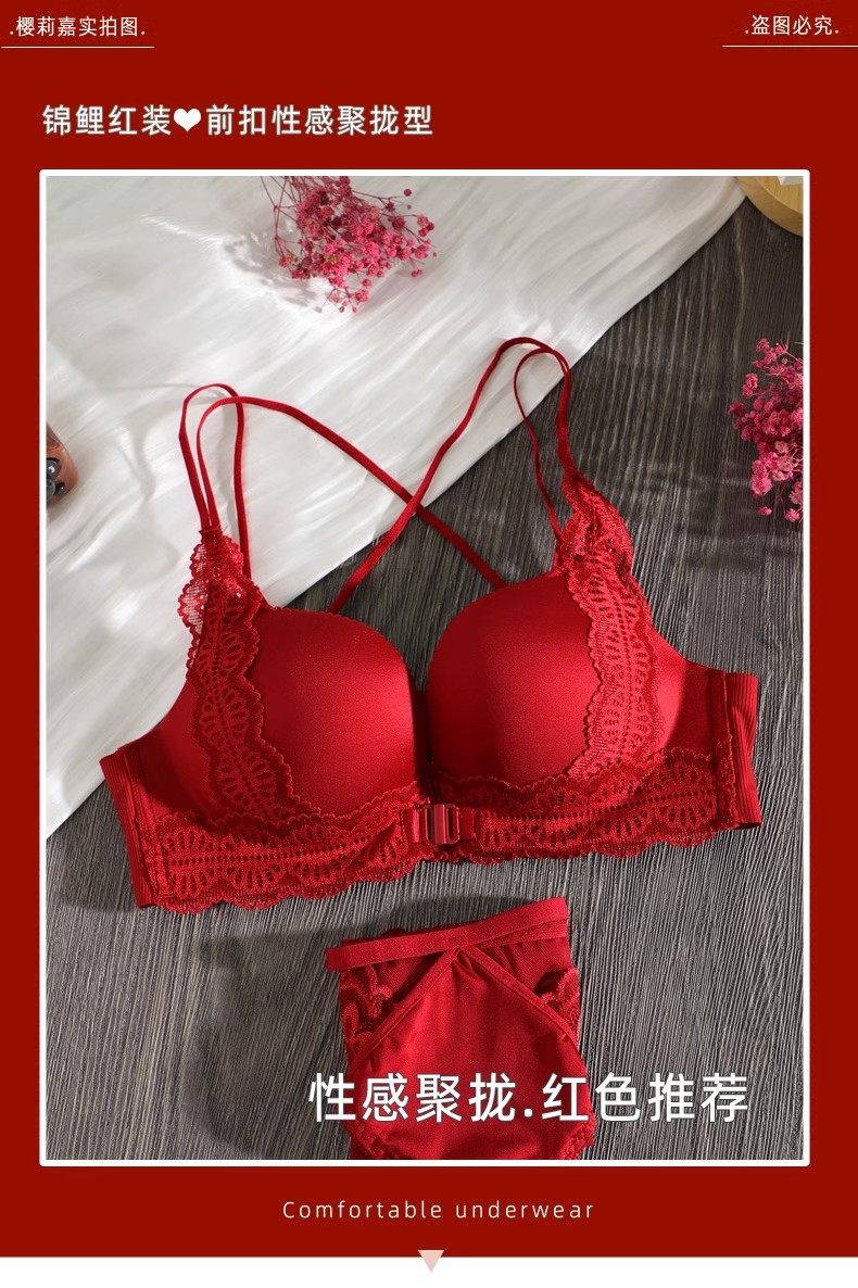 Triumph Zodiac Year Bra Set Women's Red Small Breast Push Up Thickened 2026 Beautiful Back Sexy Front Button Bra Set Retro Red Set 80A 36