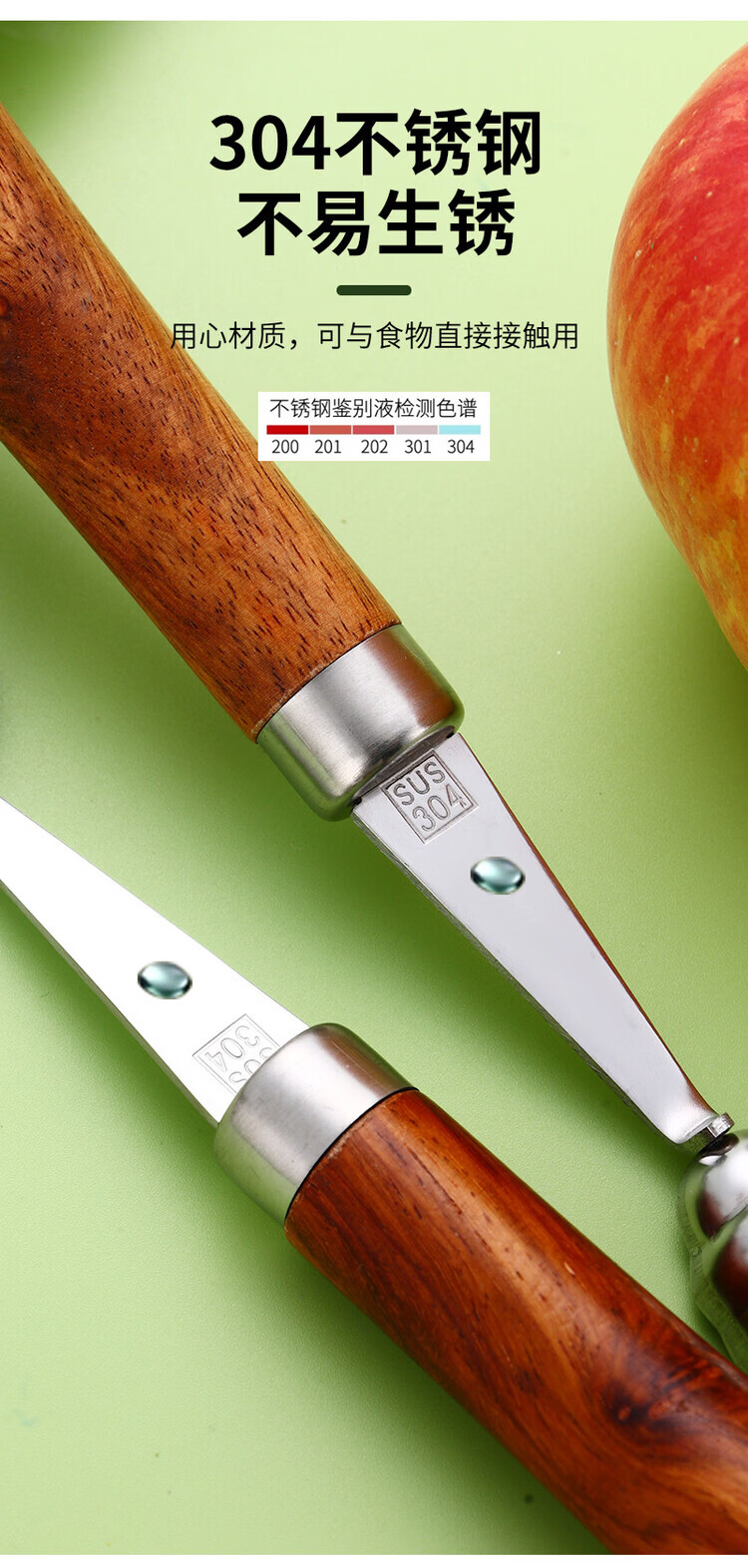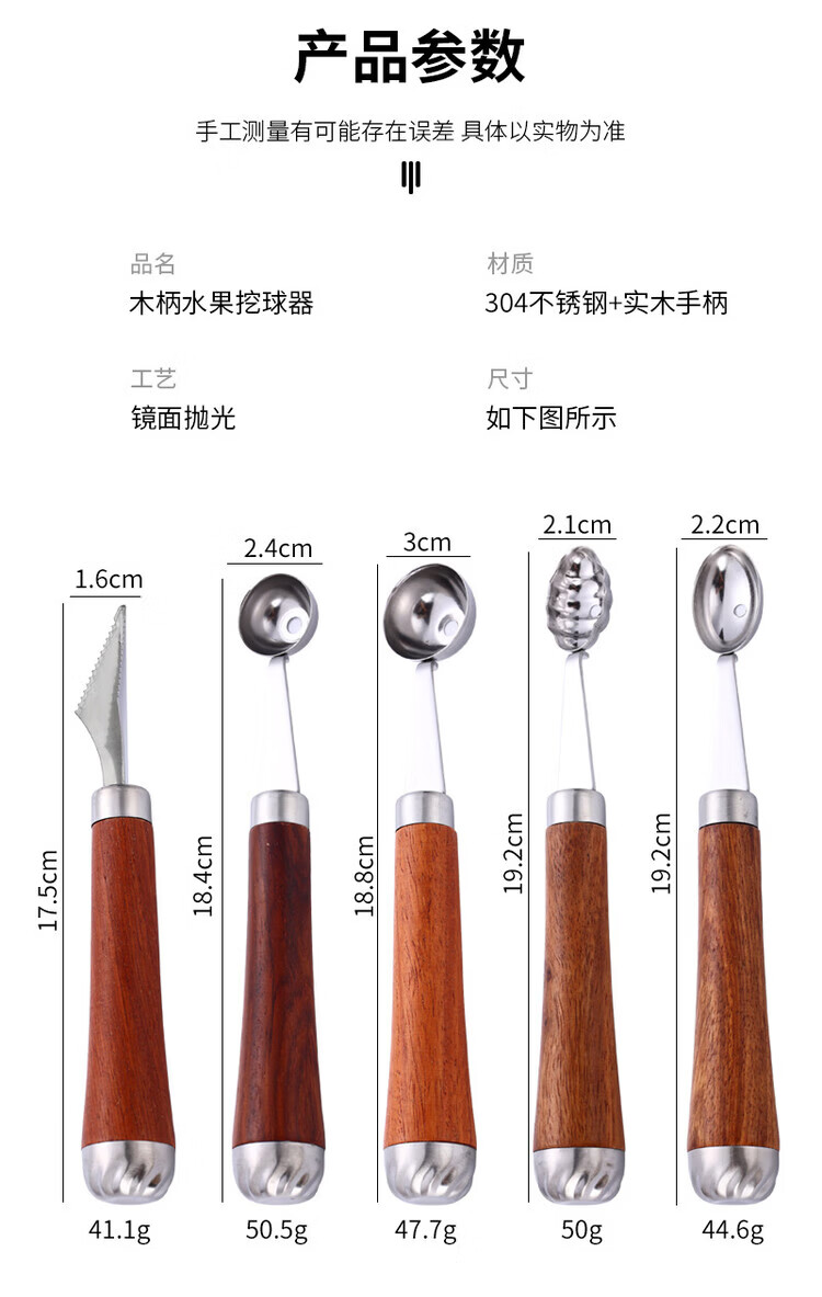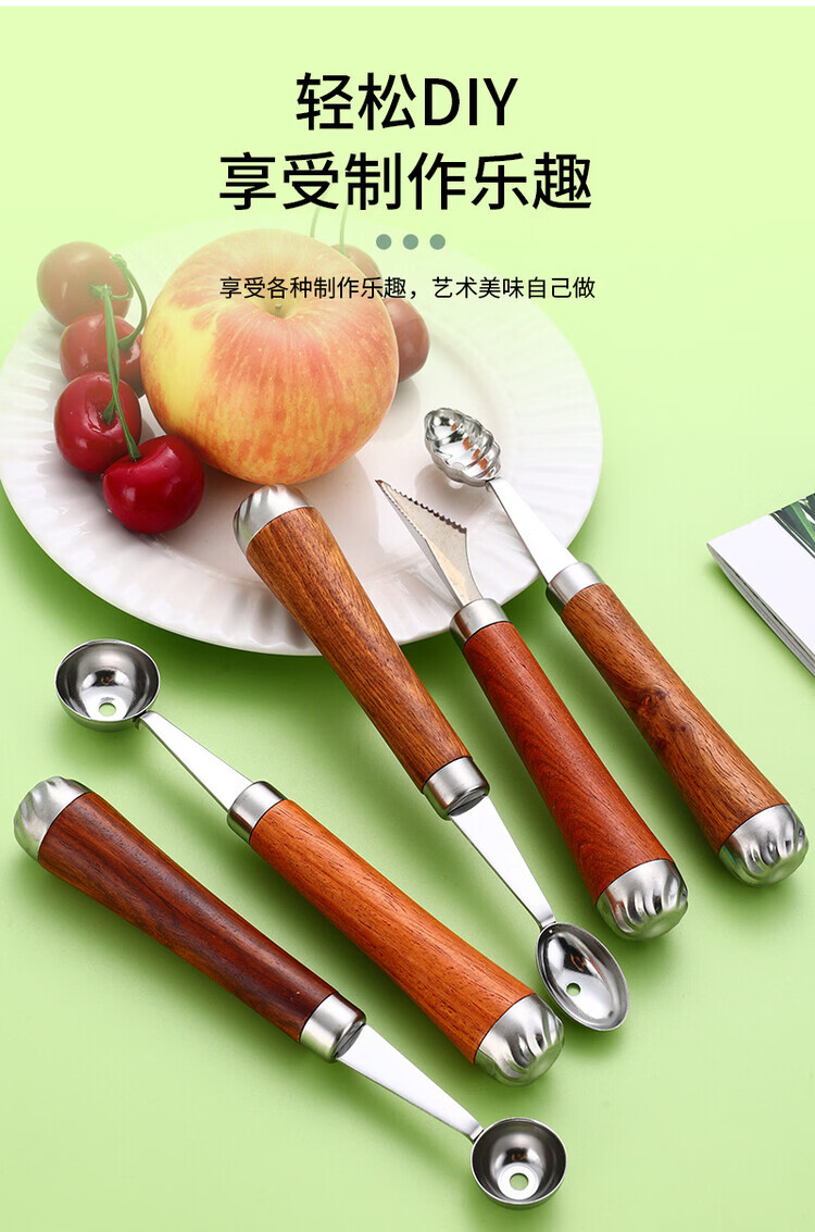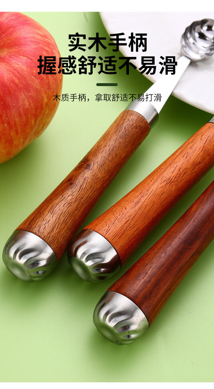 Miaopule 304 fruit scooper, solid wood handle carved knife, ice cream scooper, thickened stainless steel fruit plate gadget, small pulp spoon