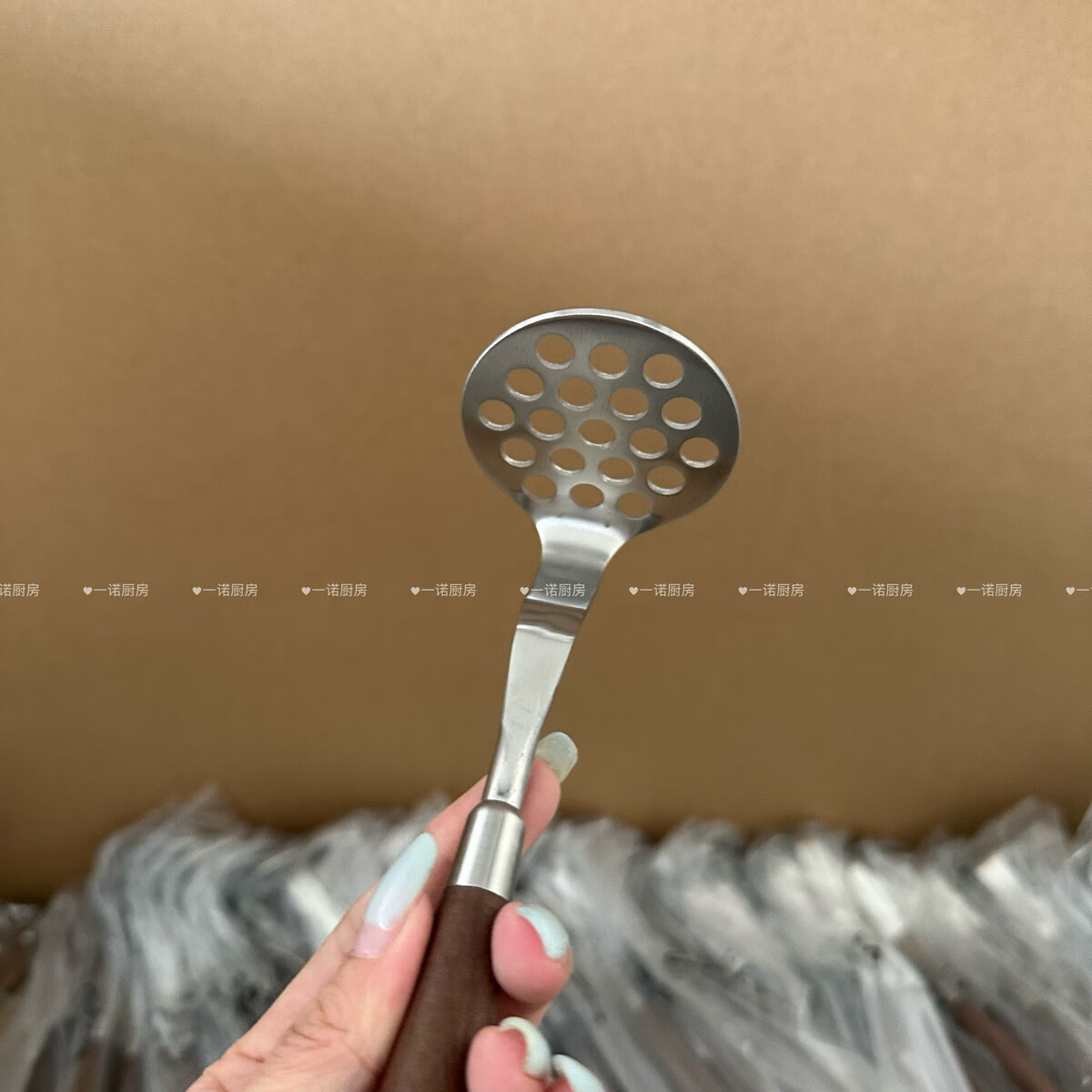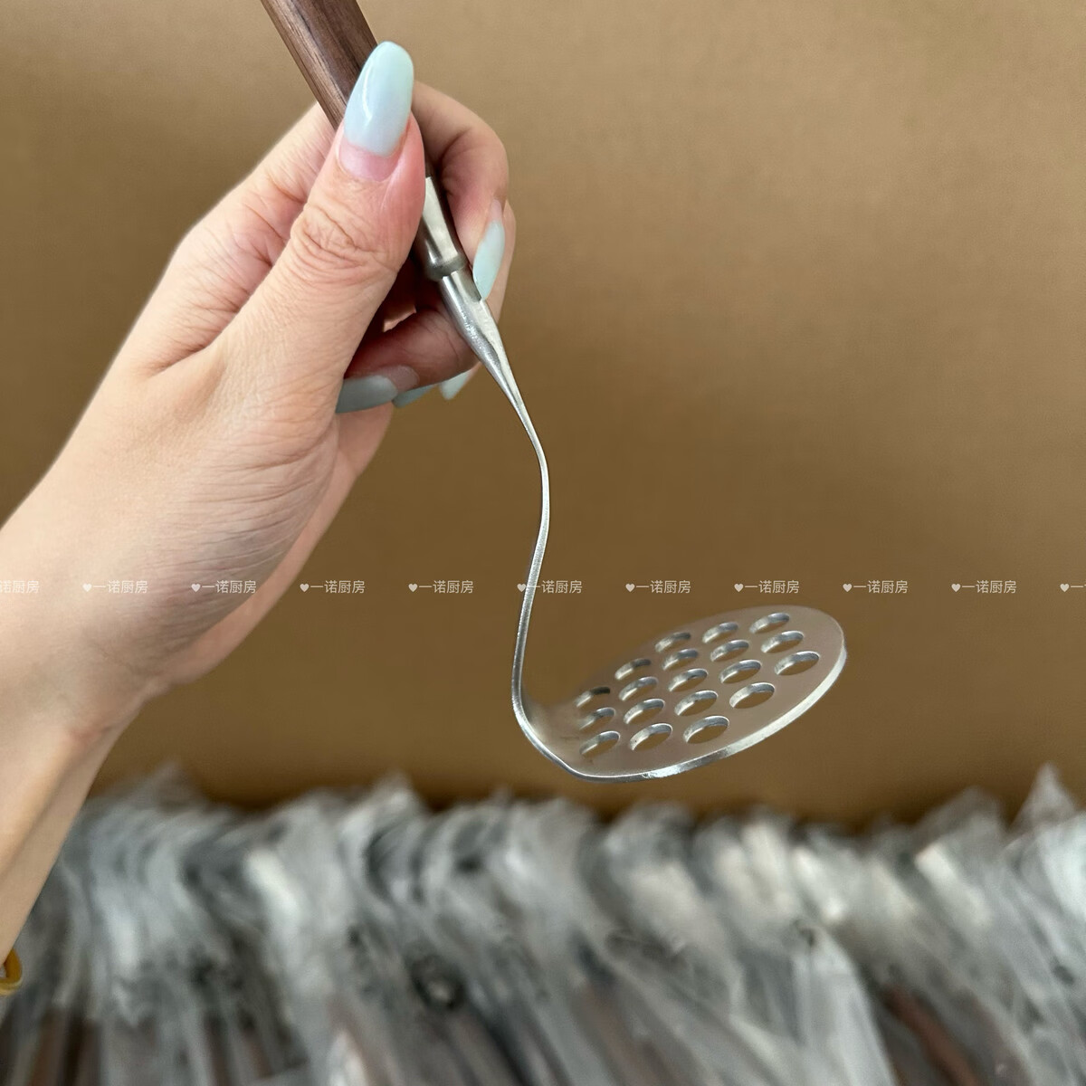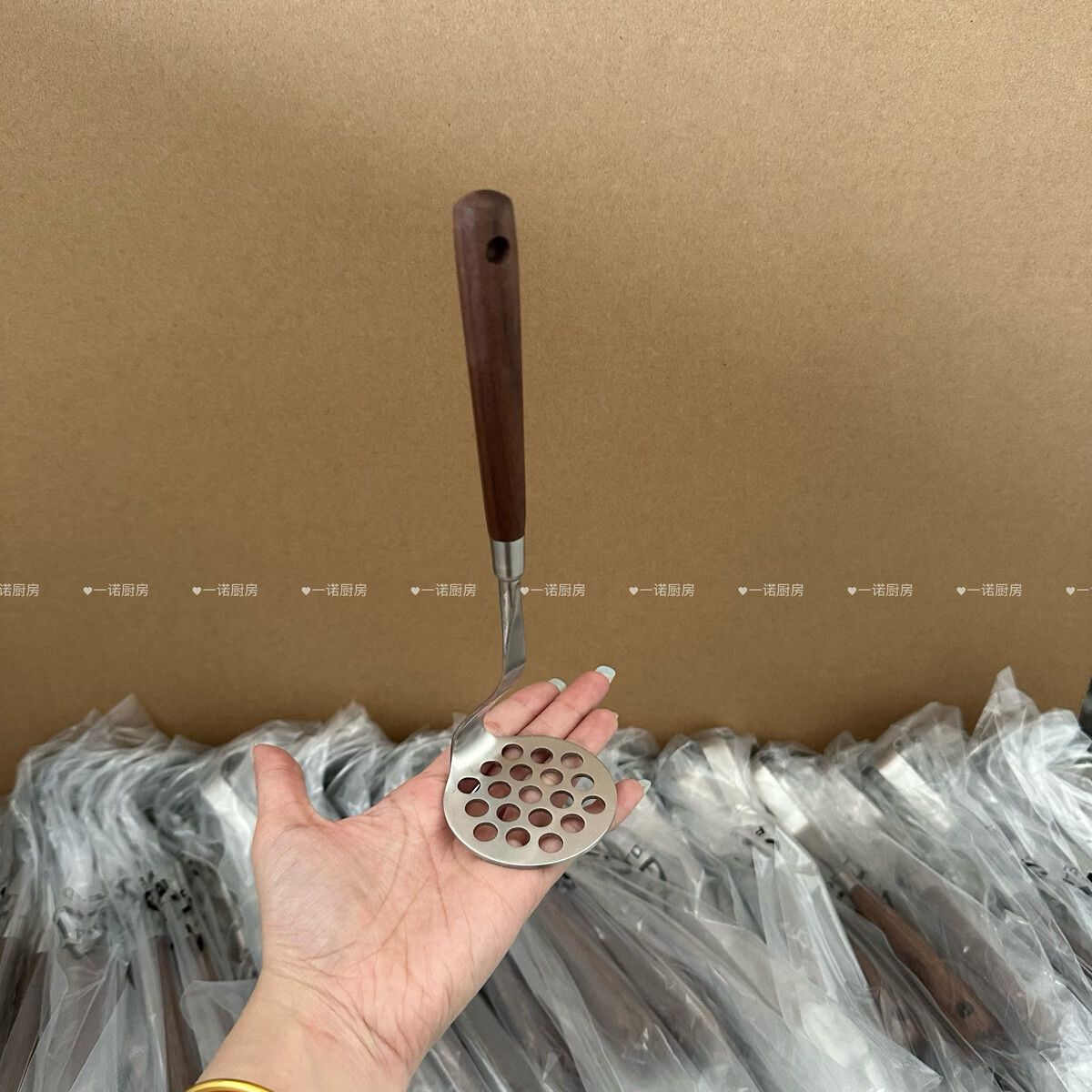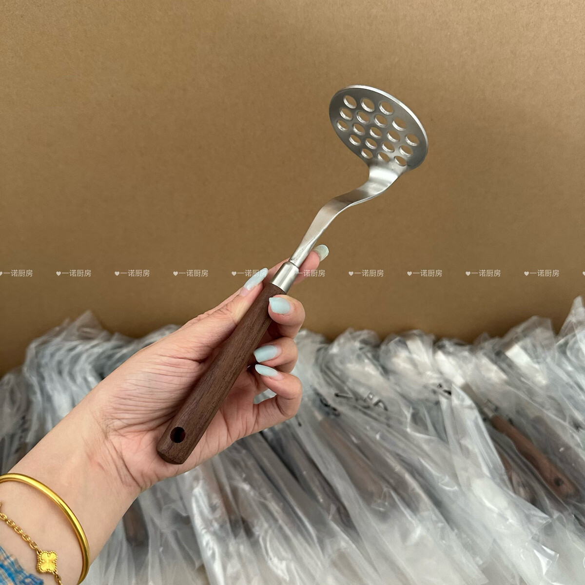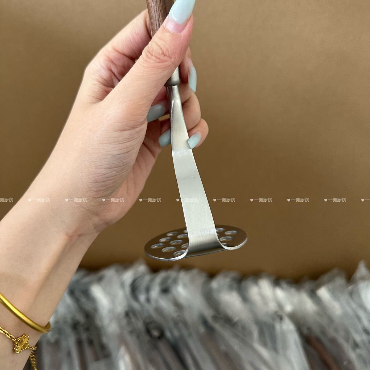 Wing Fantasy 304 stainless steel wooden handle mashed potato god household food supplement mashing mashing 304 steel walnut mini mud press