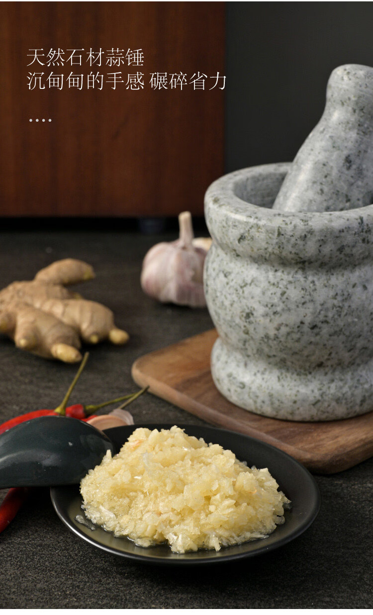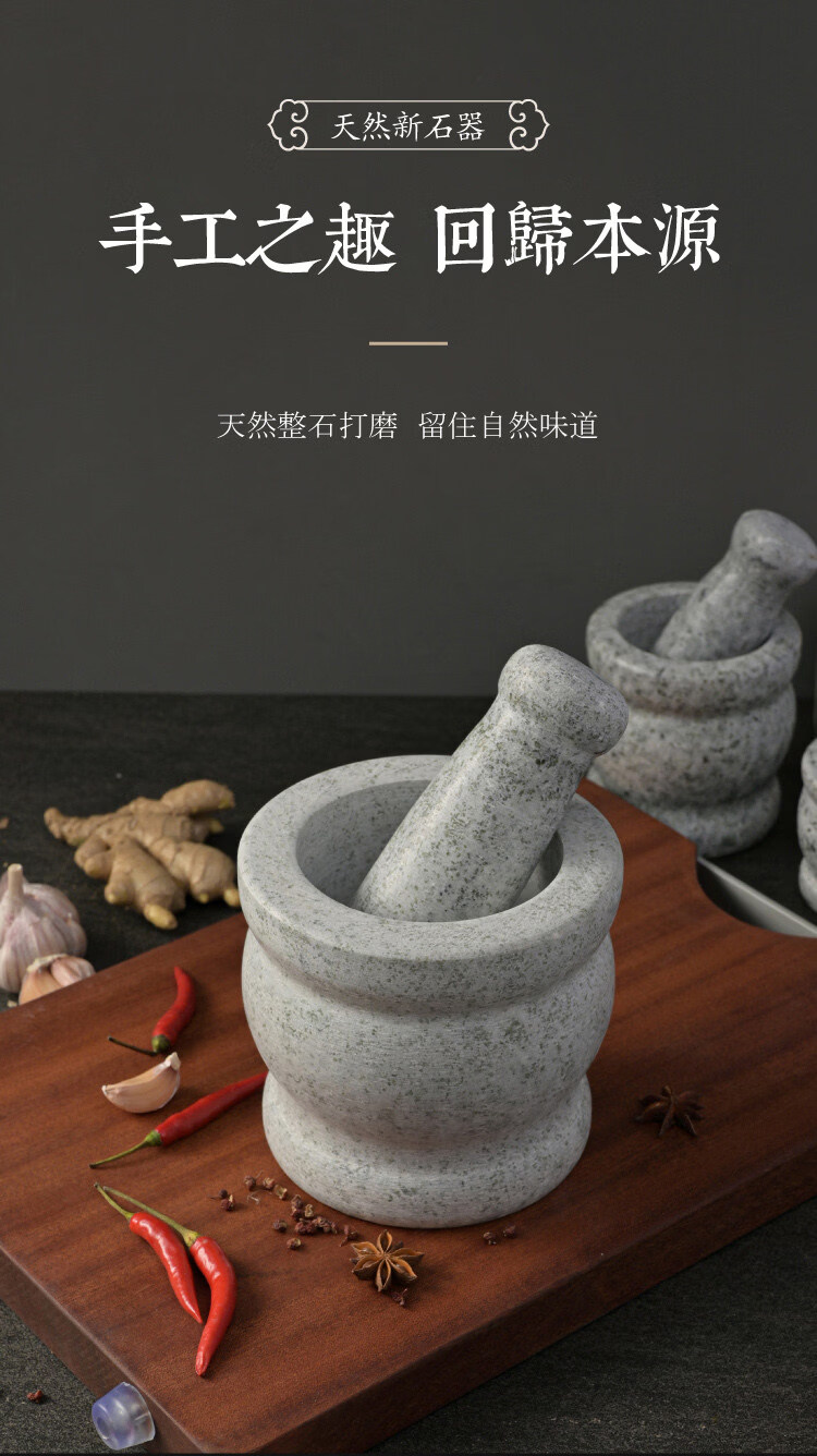 Garlic mortar, grinding stone, manual small natural stone garlic press, stone mortar, medicine jar grinder, household handmade cylinder-shaped carving with stone handle