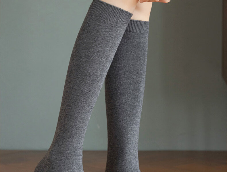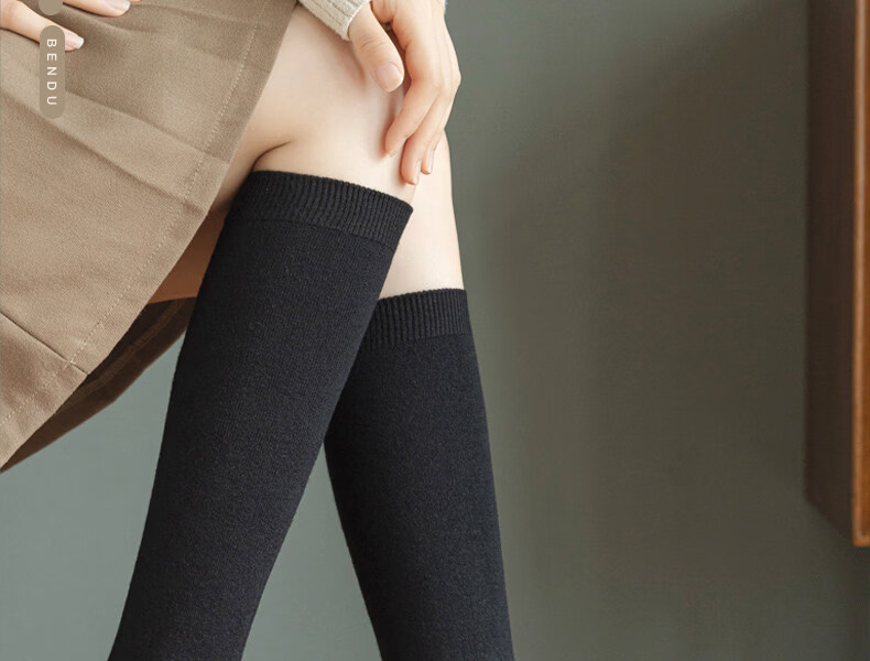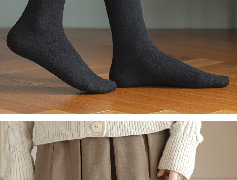 LangSha long socks women's autumn and winter wool cashmere thick warm calf socks winter half leg socks black high socks winter 1 white 2 black one size fits all 34-40 (wool warm)
