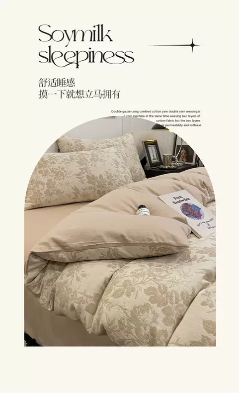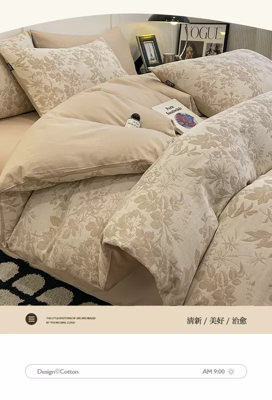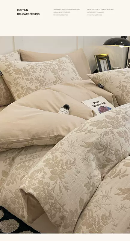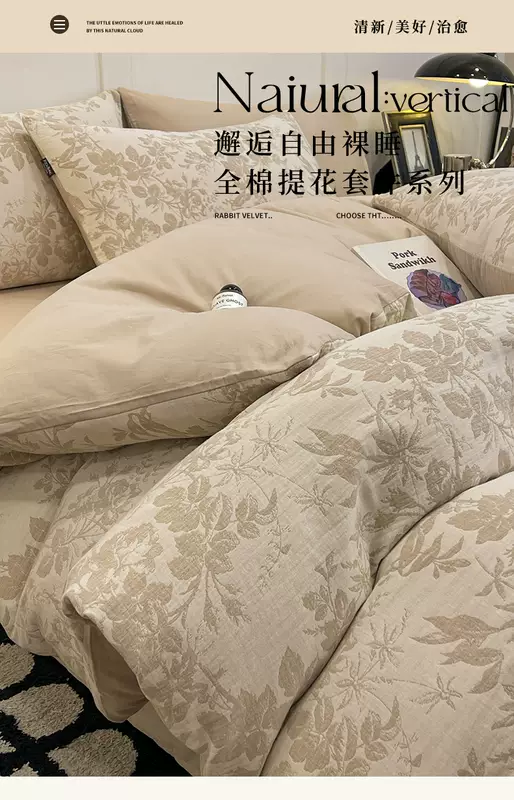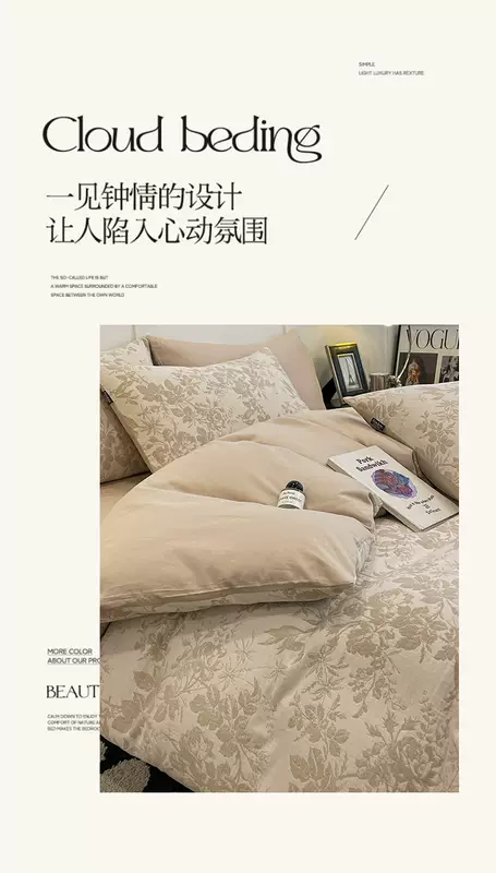 Yusenyi 100% cotton double-layer jacquard four sets of high-end light luxury 60-feel bedding set. Made in Nantong. Suitable for 5-Pollen (60s cotton double-layer jacquard, non-pilling). 7-Four-piece set 1.5m fitted sheet (note suitable for 200