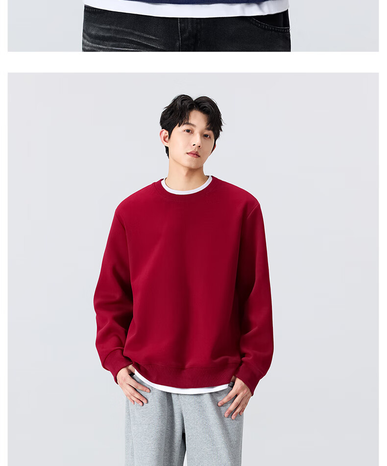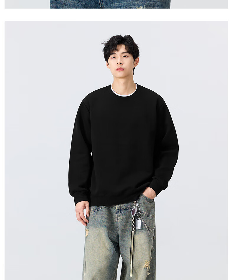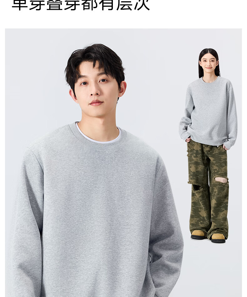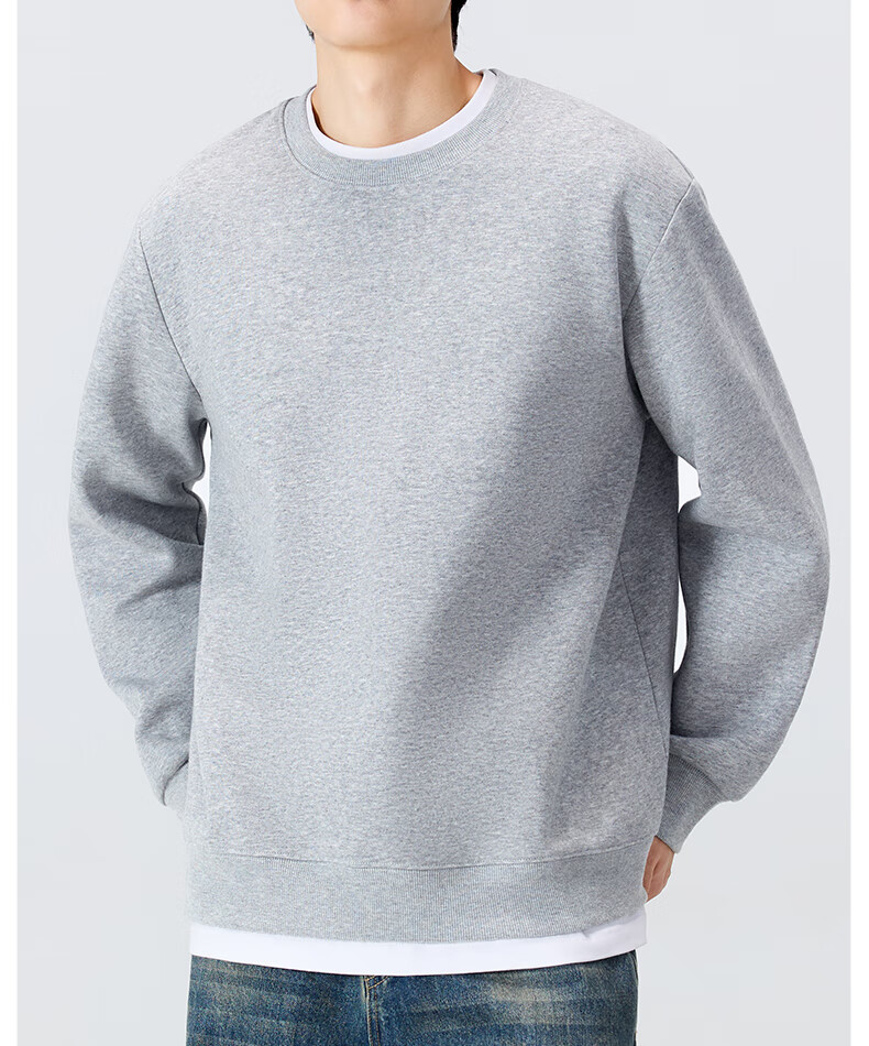 MINISO simple smiley face round neck pullover sweatshirt for men new basic trendy brand high-end casual sports loose jacket top Aurora Purple (m22 light gray smiley face chest label) S /165 (strict quality control)