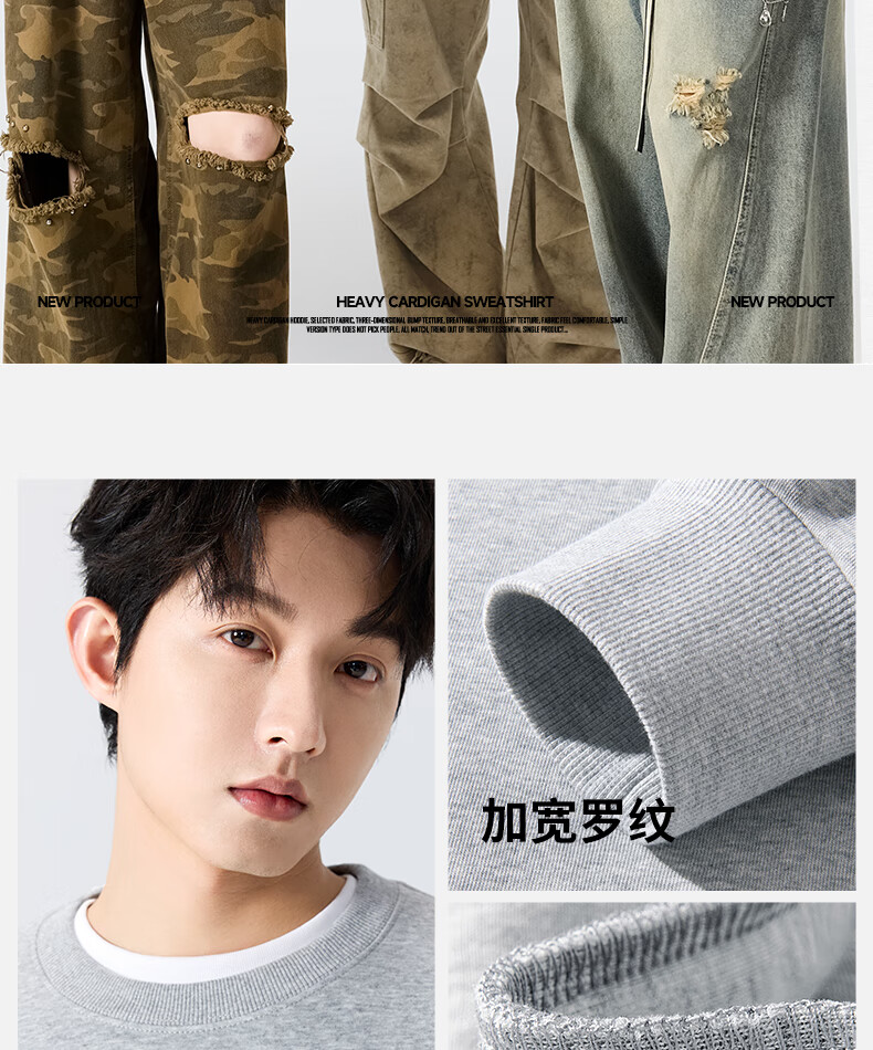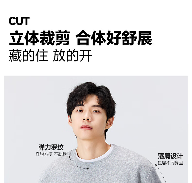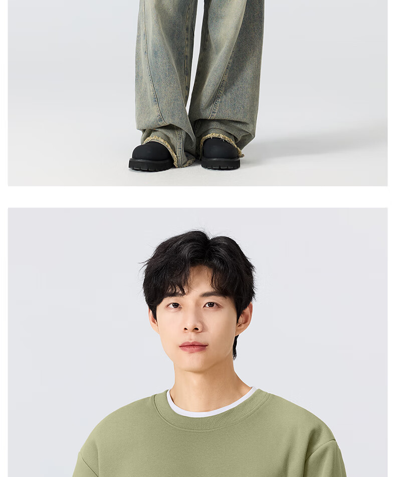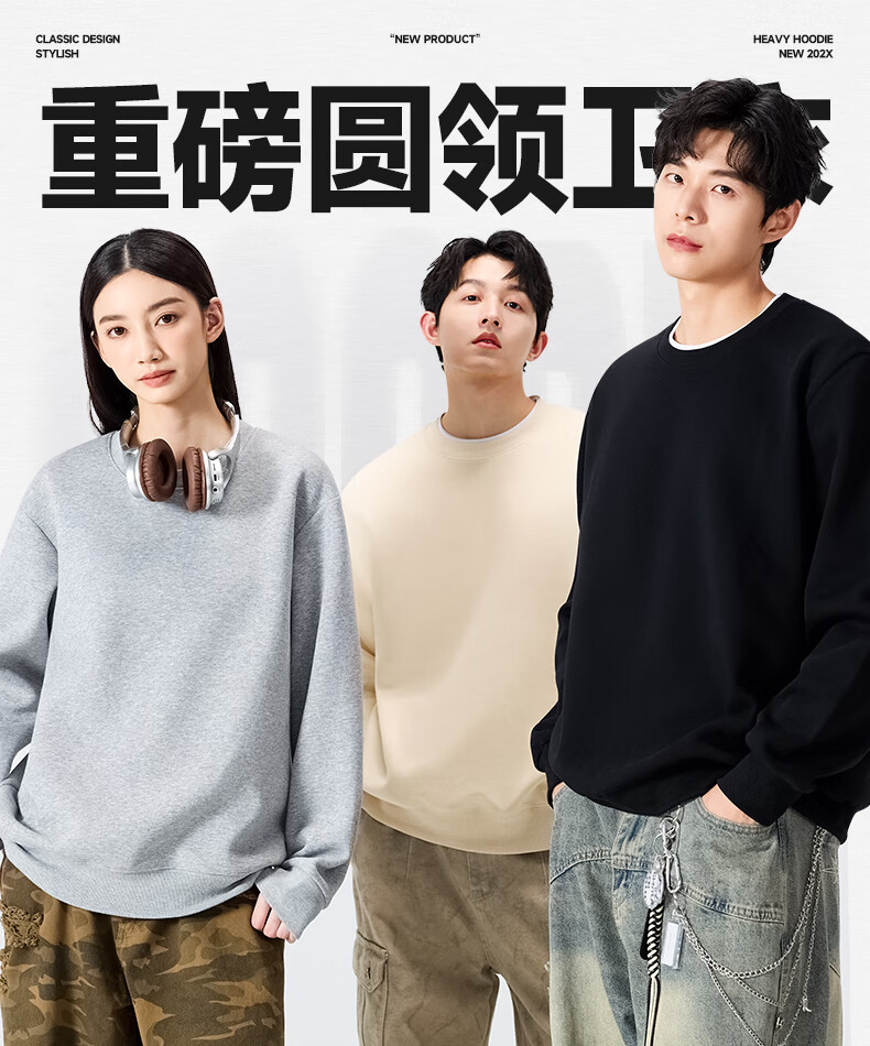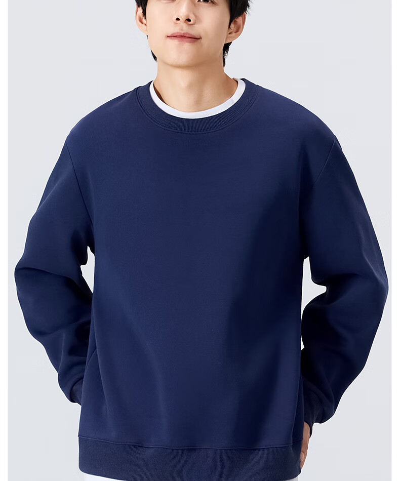 MINISO simple smiley face round neck pullover sweatshirt for men new basic trendy brand high-end casual sports loose jacket top Aurora Purple (m22 light gray smiley face chest label) S /165 (strict quality control)