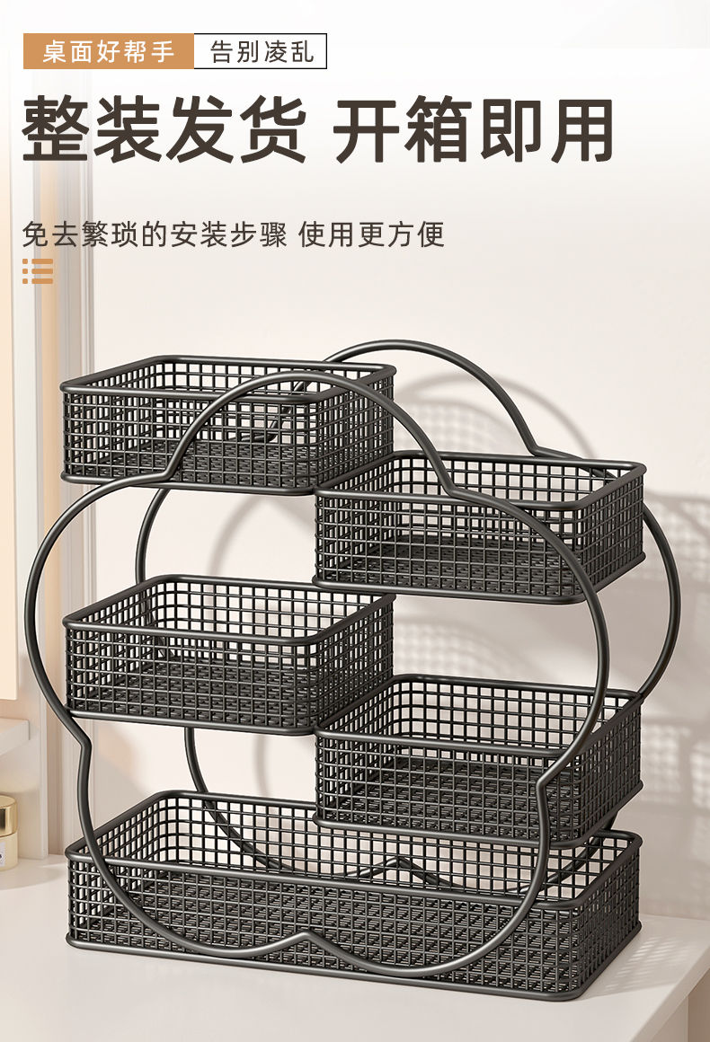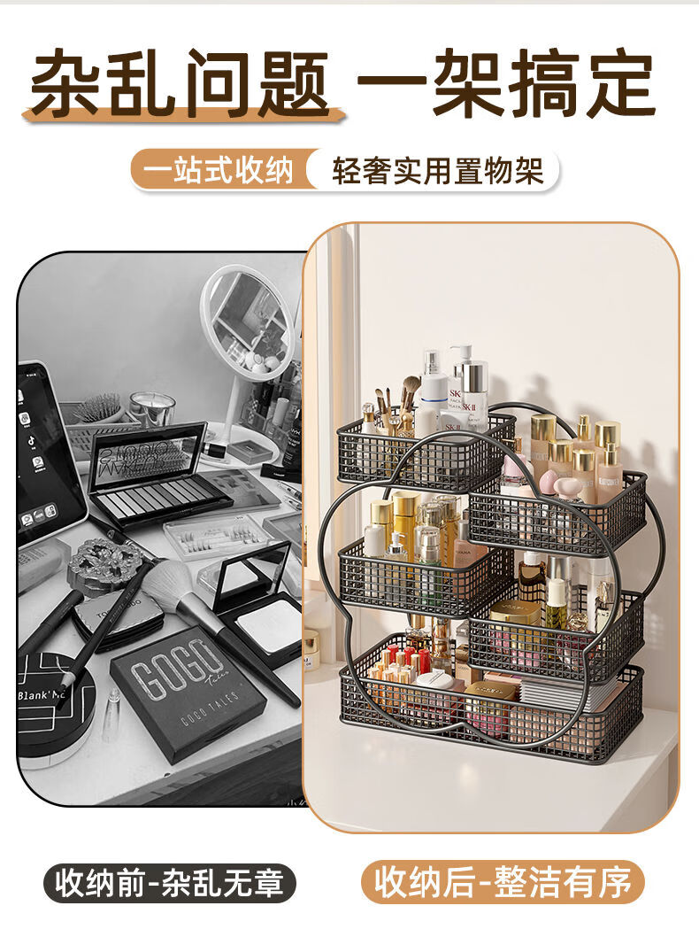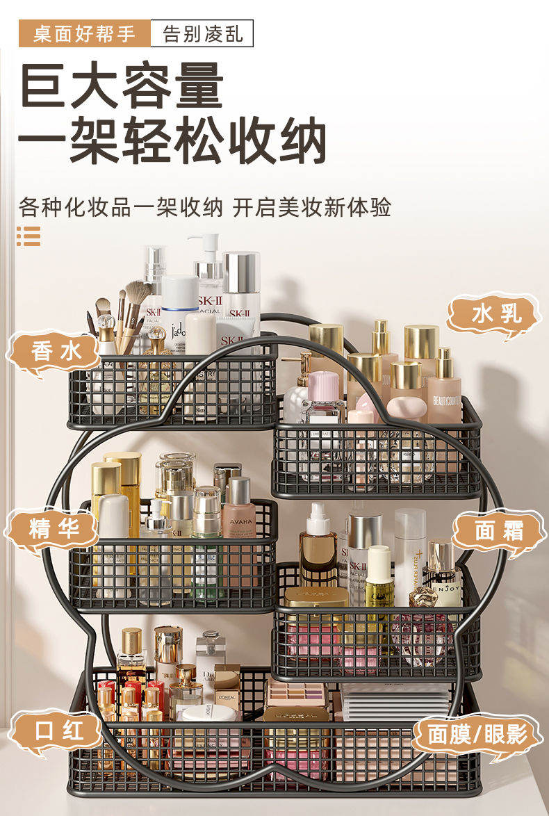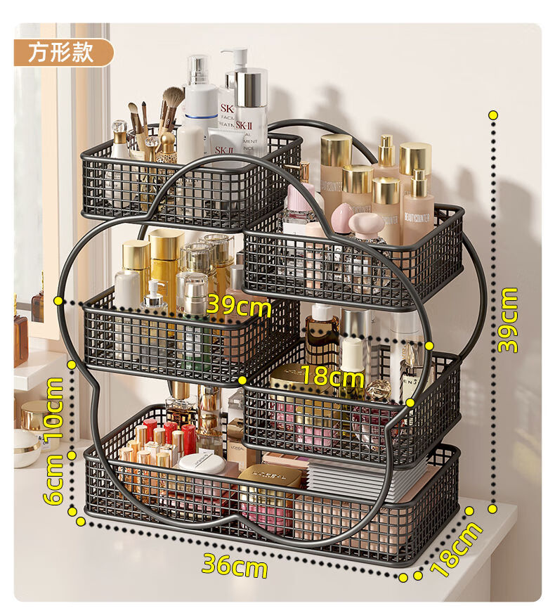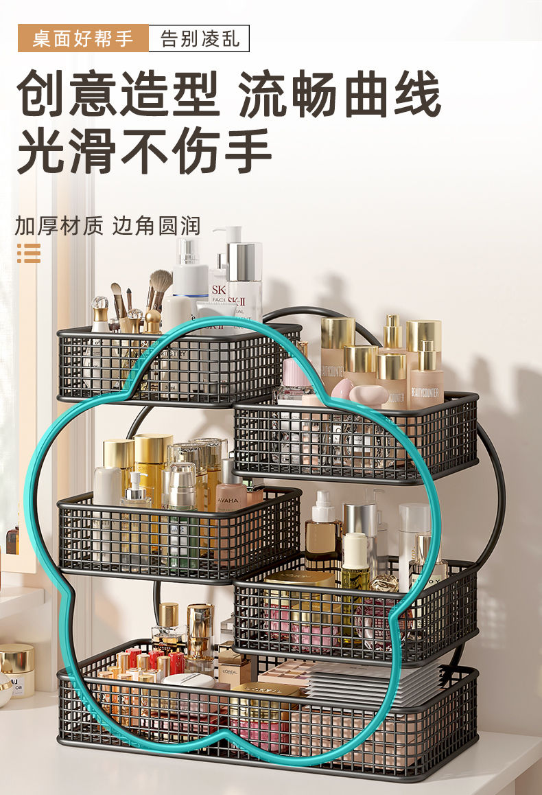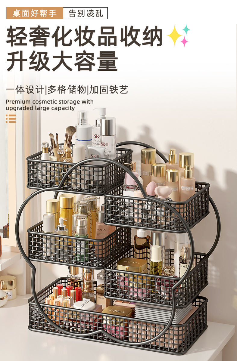 Fantasy product storage box dressing table layered organizer skin care product shelf high-end white flower square