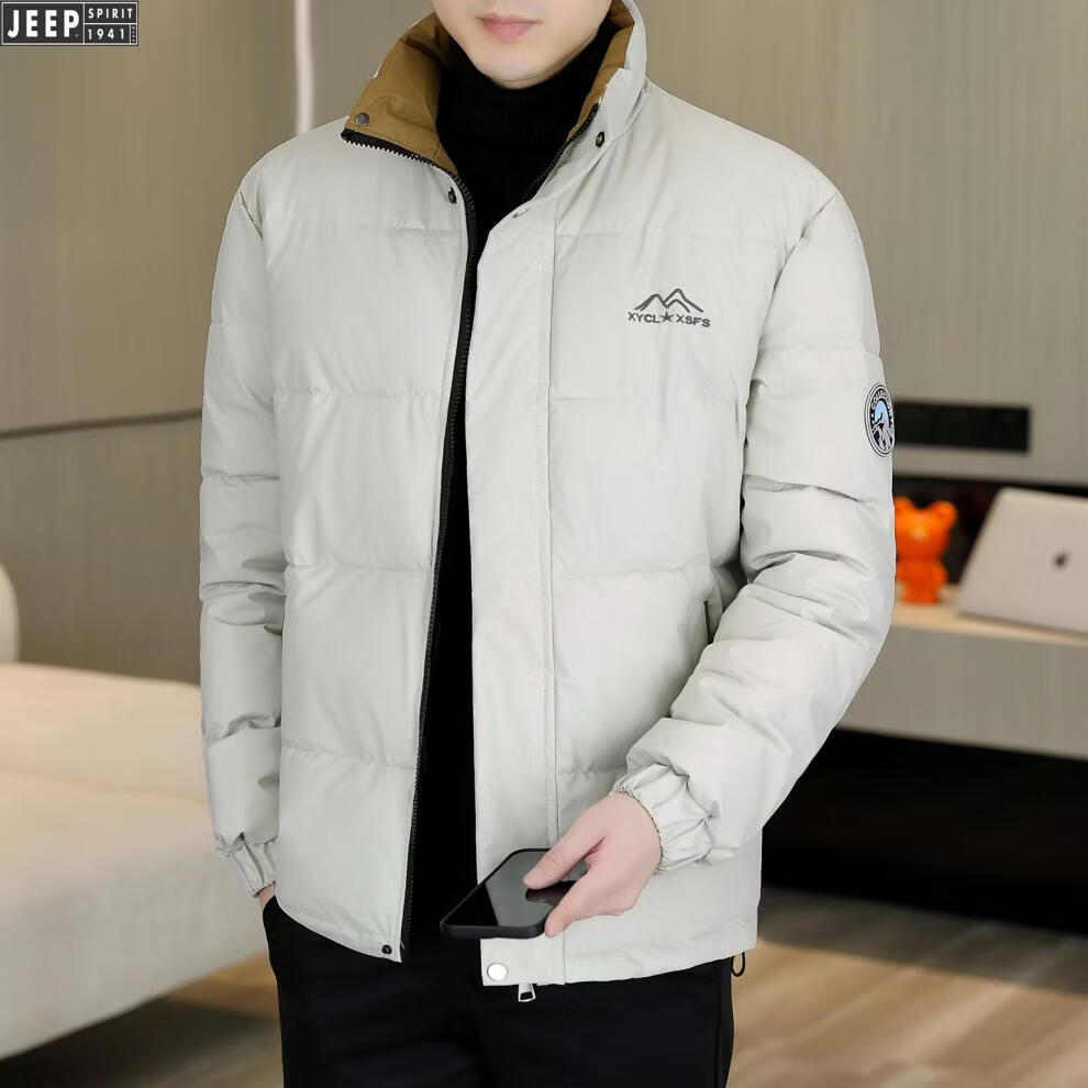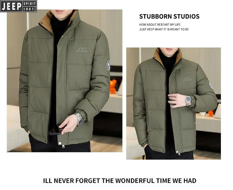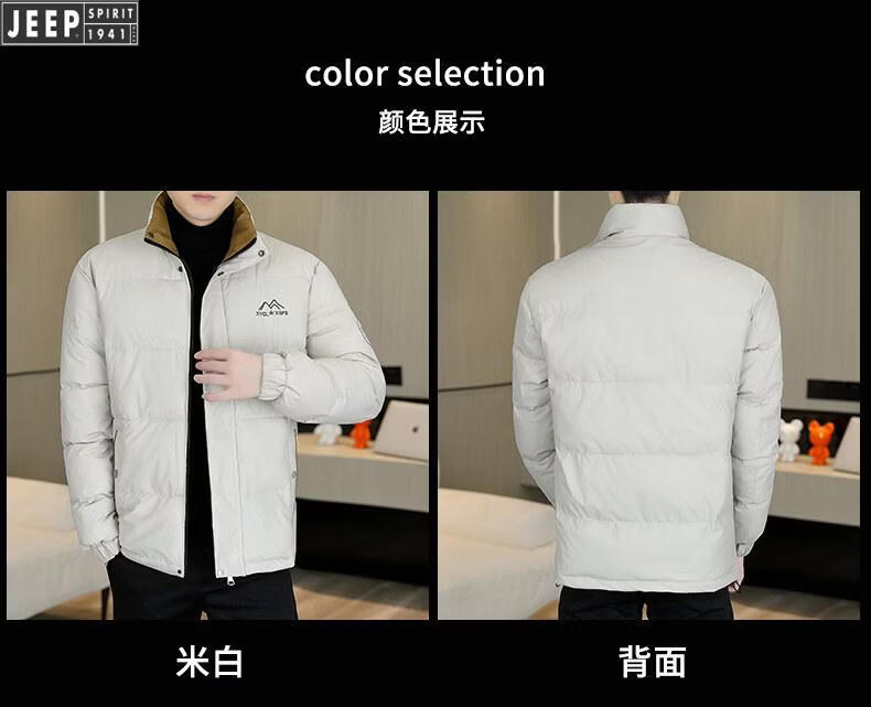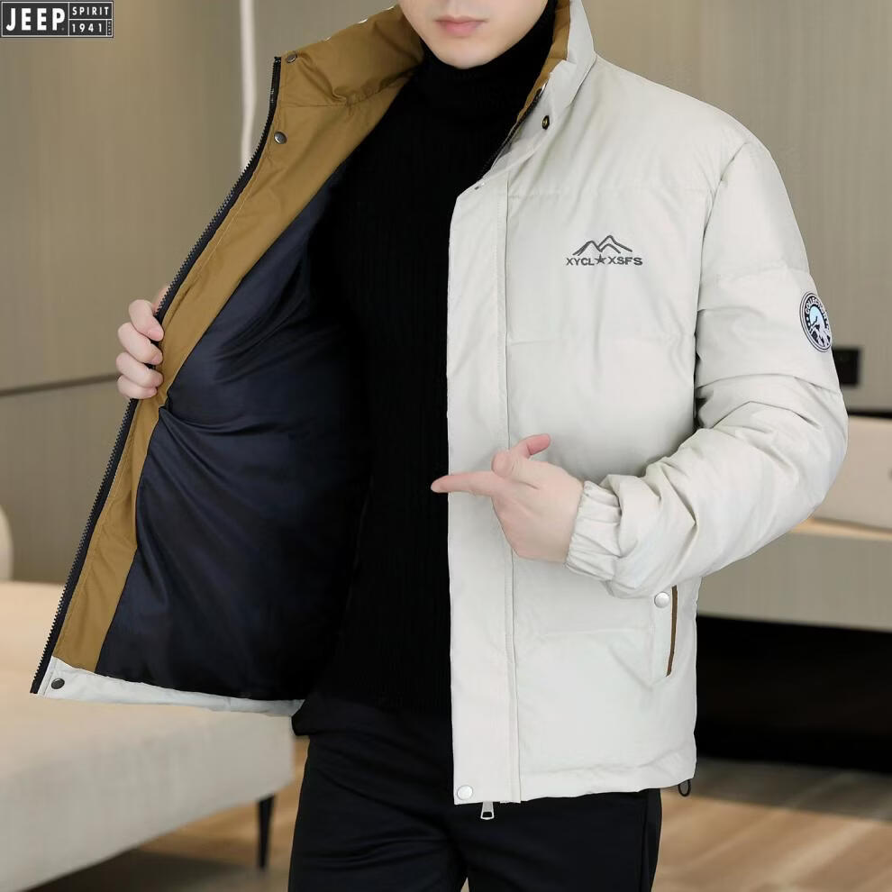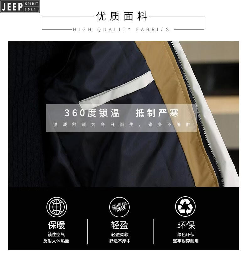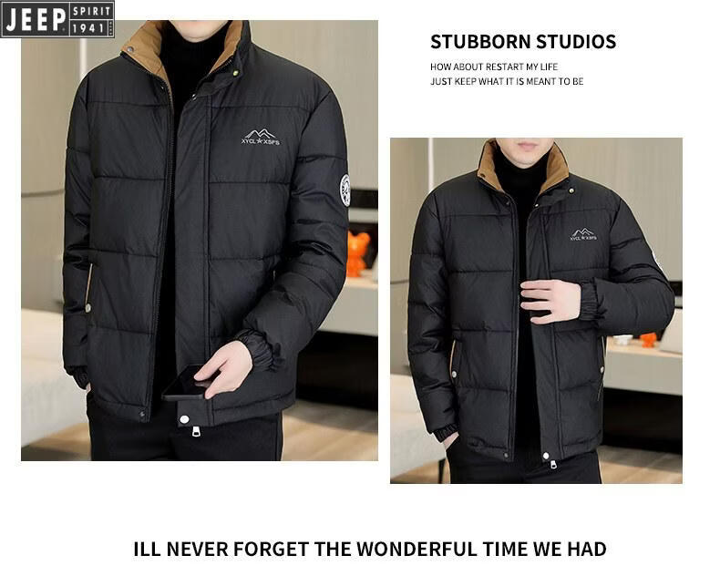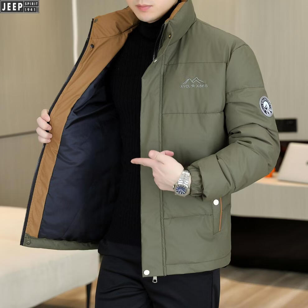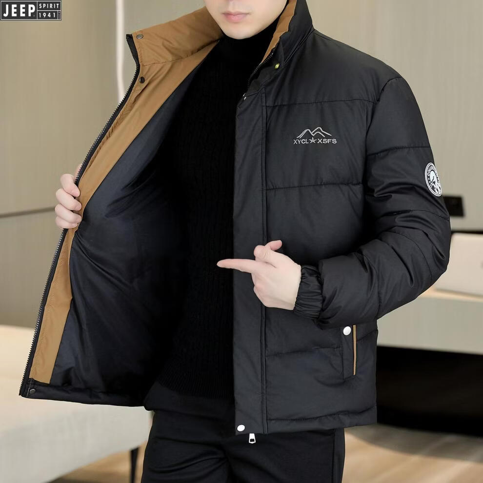 JEEP Jeep Men's Stand Collar Cotton Jacket Winter 2025 New Thickened Warm Cotton Jacket Men's Stand Collar Casual Cotton Jacket Trendy Black XL