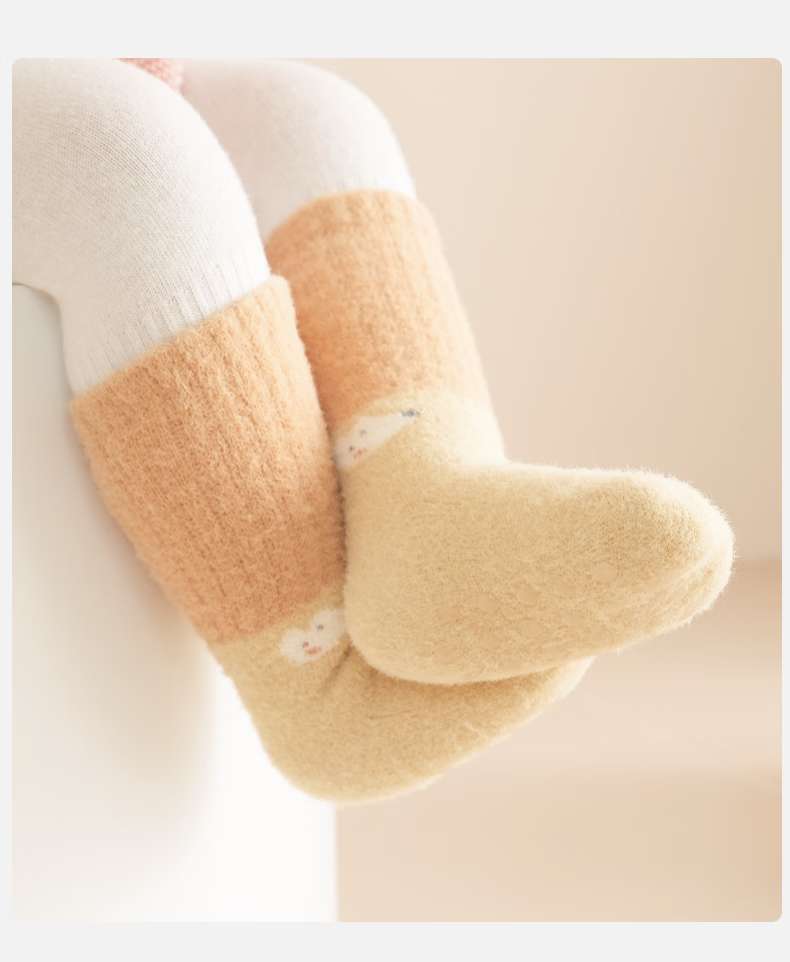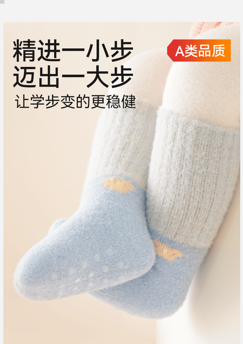 Mianqi Xiong baby socks autumn and winter thickened baby mid-calf socks newborn infants one-year-old plus velvet socks children mid-calf stockings winter B2060-baby boy-3 pairs thickened velvet warm socks 0-6 months - recommended foot length 8-10cm