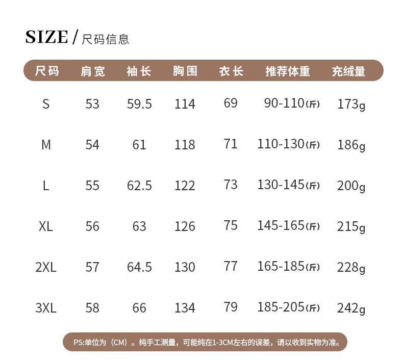 China (cm) 165 / 88-90 170 / 96-98 175 / 108-110 180 / 118-122 185 / 126-130