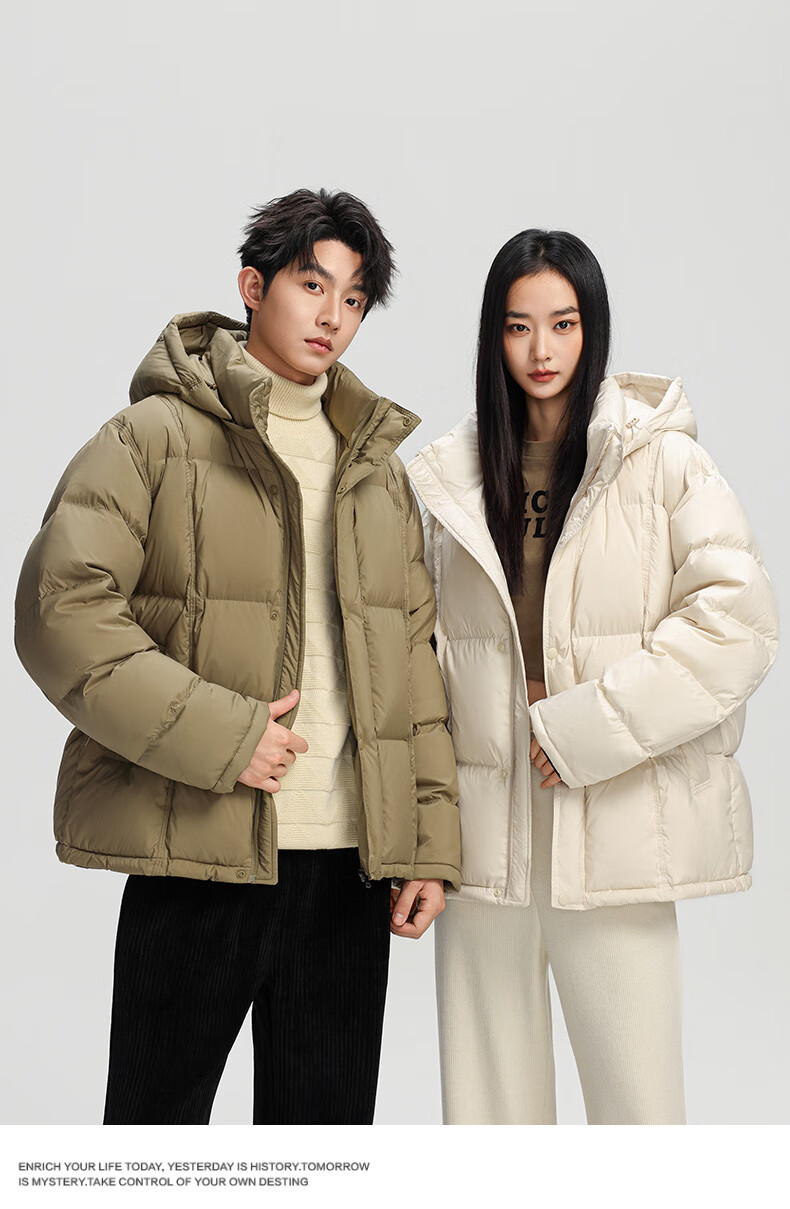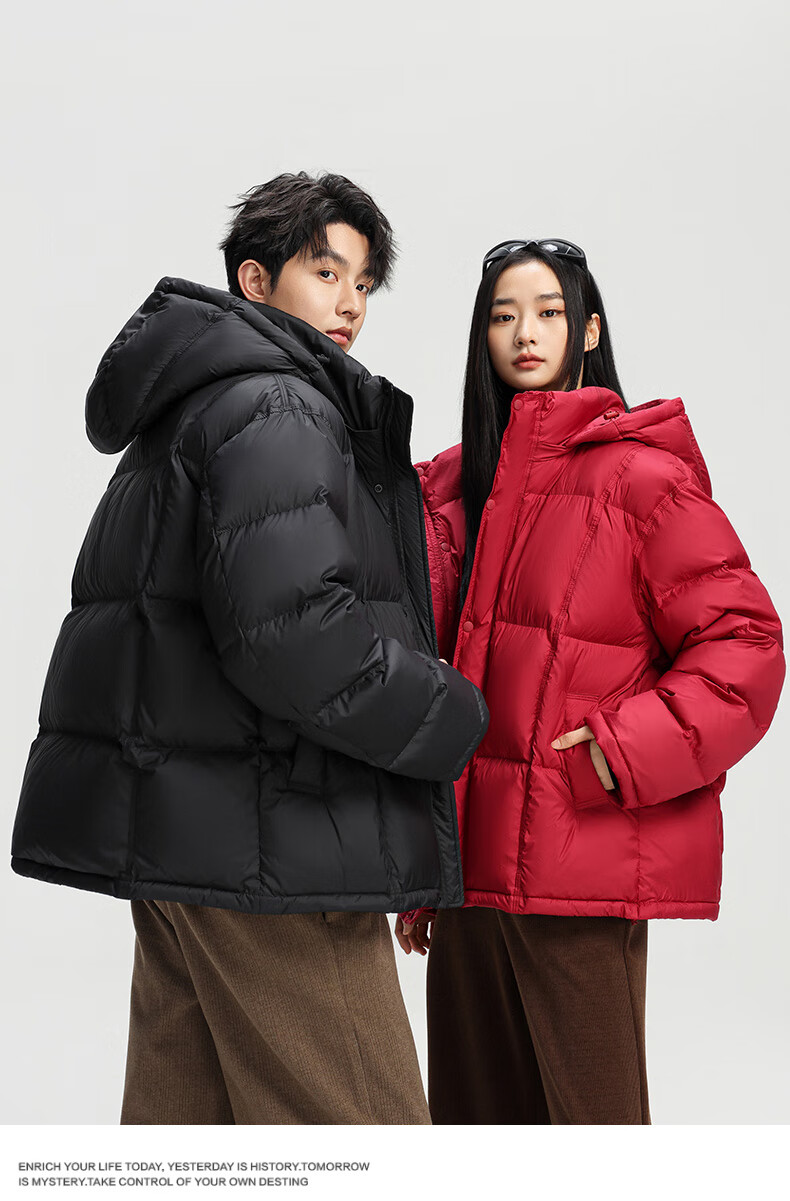 Yalu 242g High Filled Down Short Puff Down Jacket Men's 2025 Winter New High Puff Couple Thickened Jacket Shadow Black Unisex XL /180
