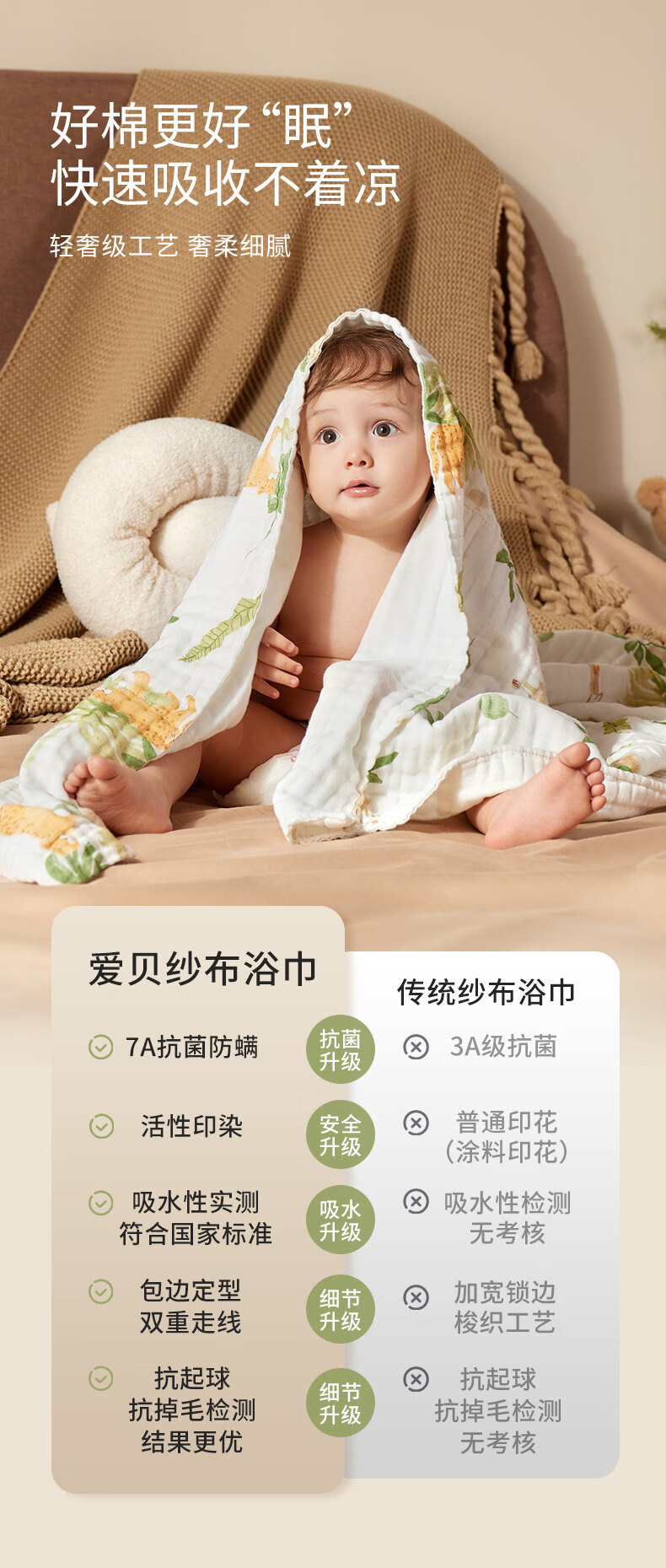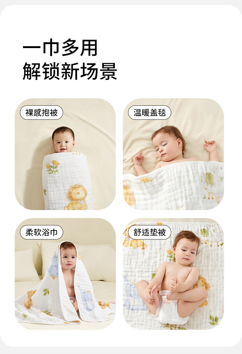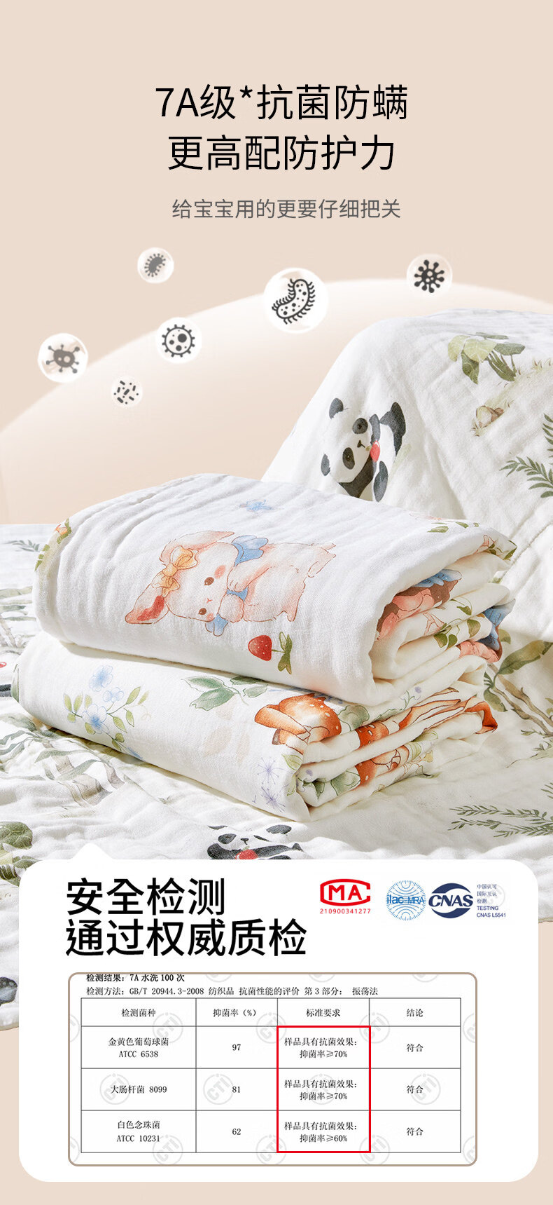 AIBEDILA baby bath towel newborn gauze pure cotton children's baby bath 4/6 layers boys and girls wrap children's large towel type a upgraded version 7A Panda Party_6 layers 100x70cm