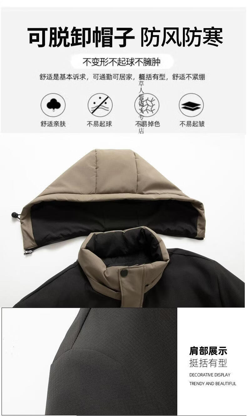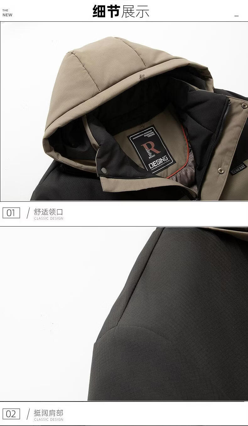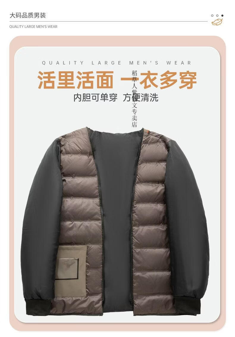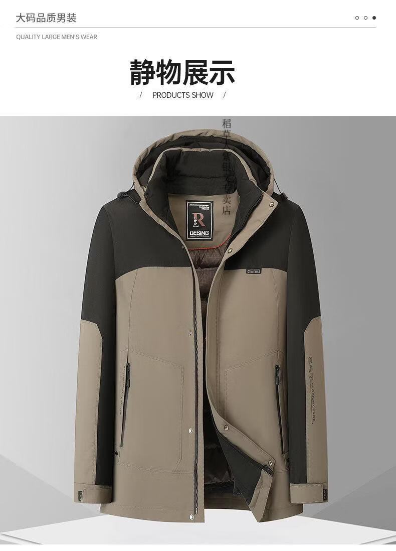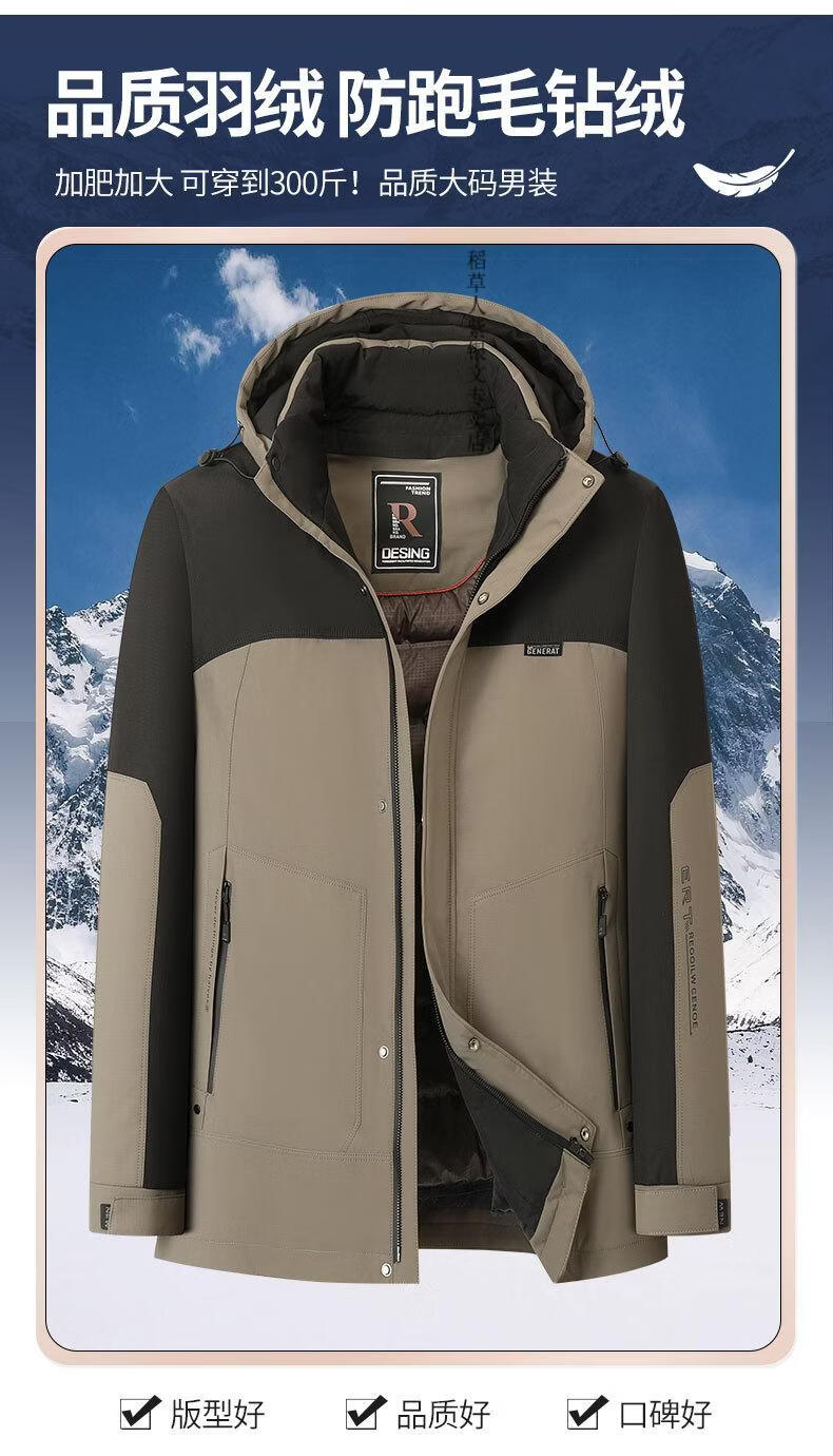 Scarecrow Fat Brother 2025 winter new style young men plus size plus size color matching hooded removable down jacket green 3XL 190