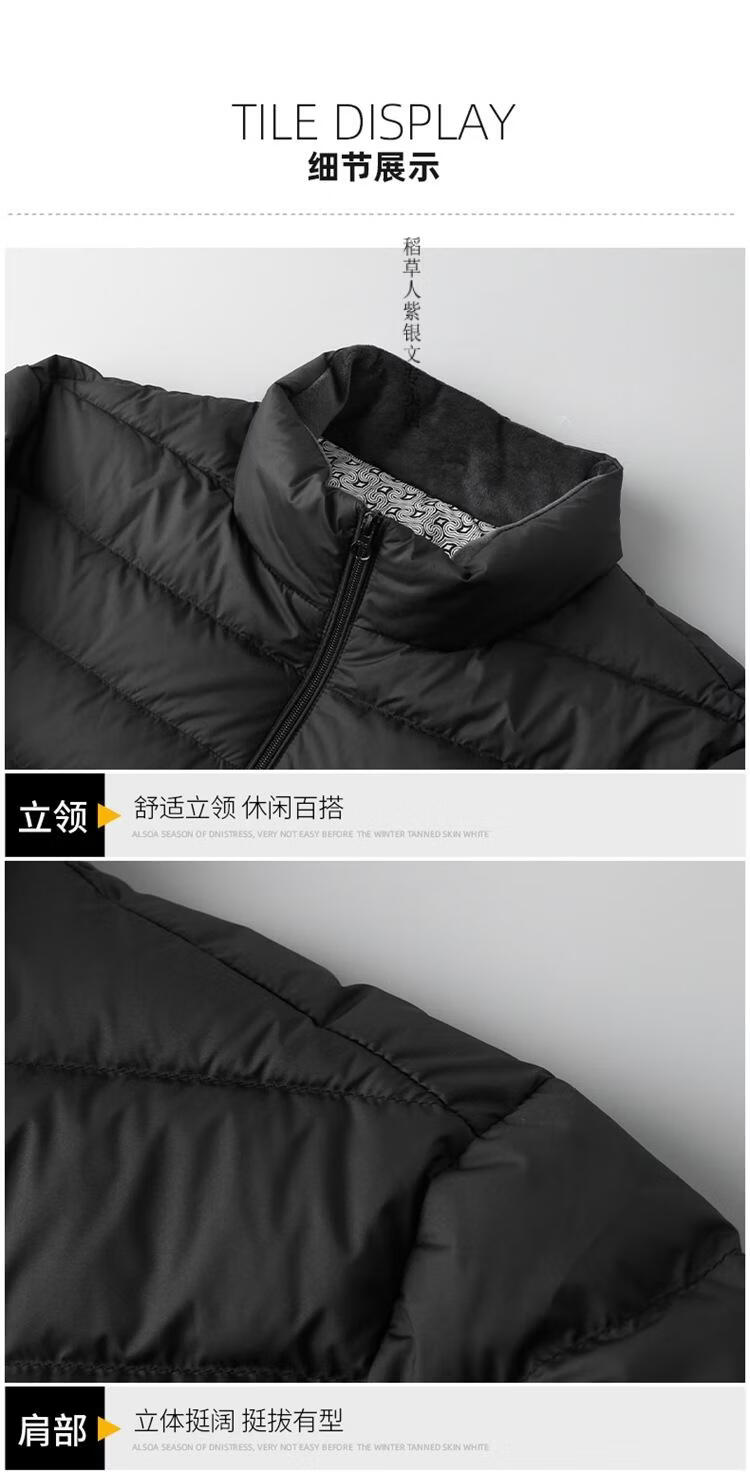 稻草人胖子哥2025冬季新款男士羽绒服加肥加大码时尚休闲立领轻薄羽绒服 黑色 L