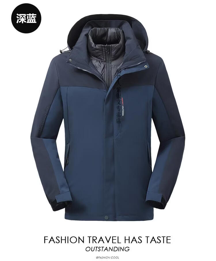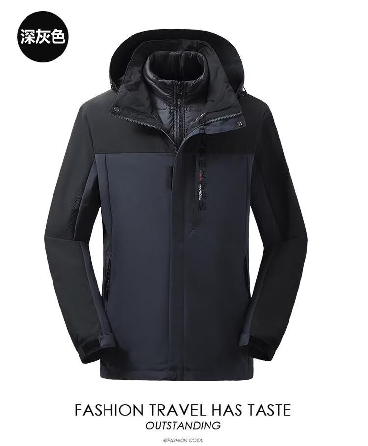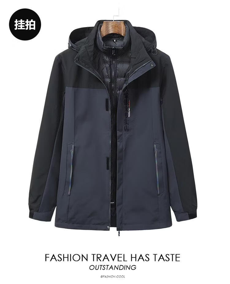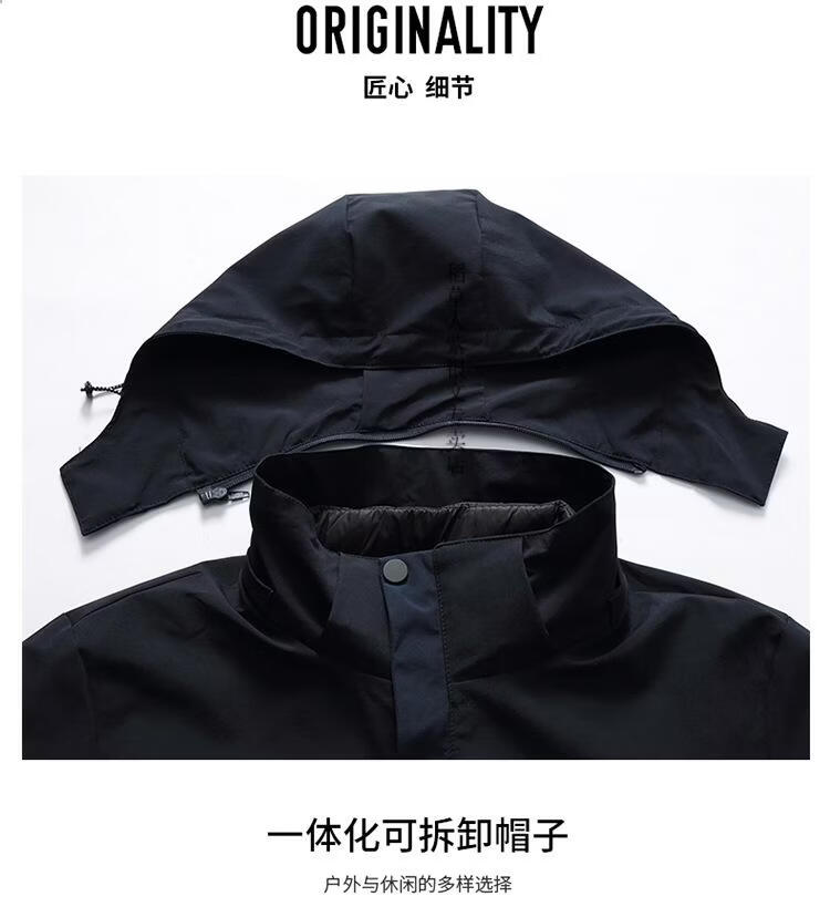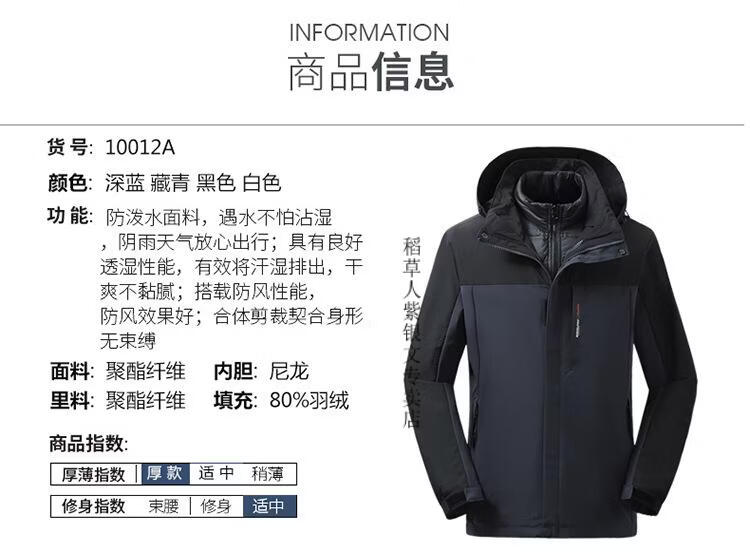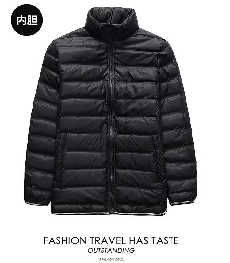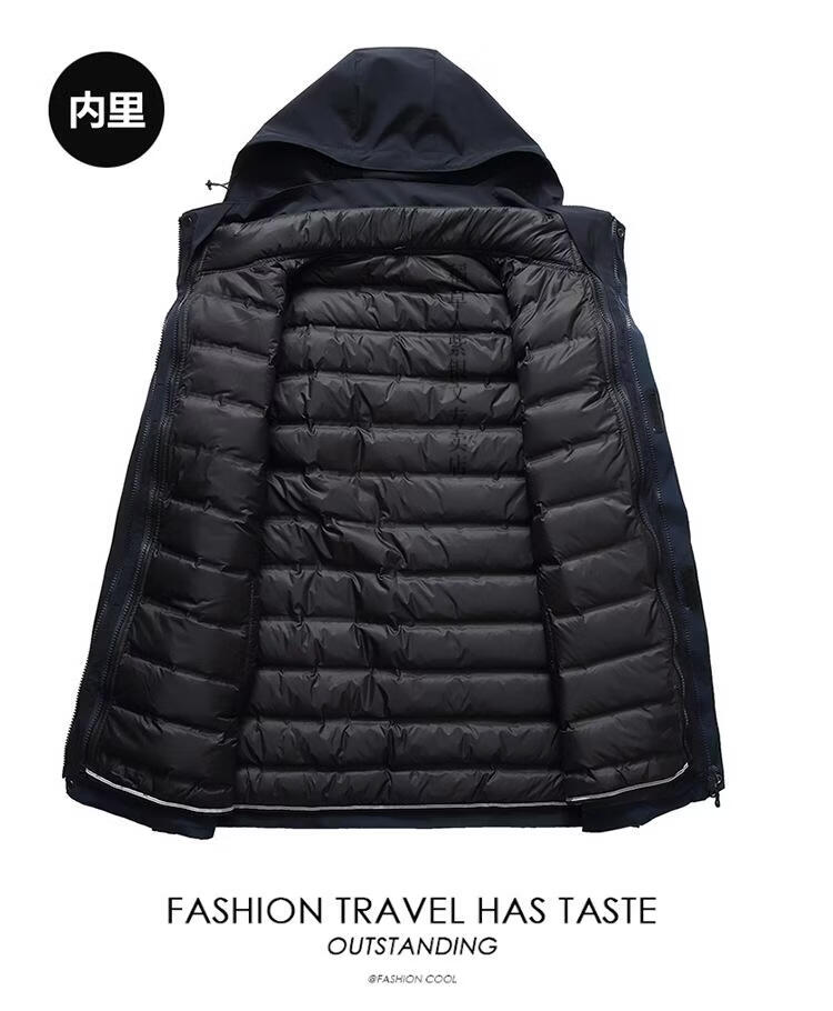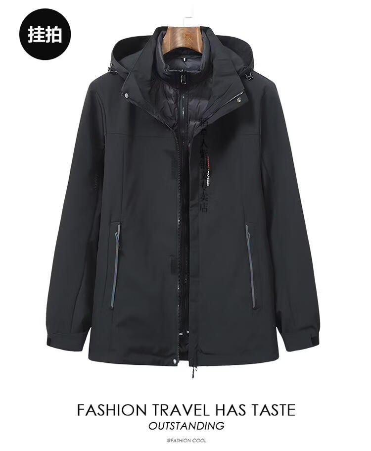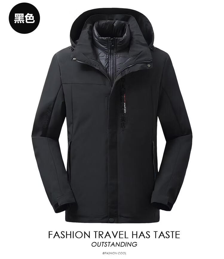 稻草人胖子哥2025冬季男士加肥加大码内胆可拆卸两件套羽绒服户外保暖 黑色 3XL
