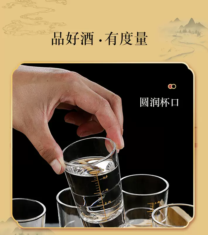 Yusen Yicha gold scale two-liang white wine glass set household small 2-liang bullet spirit glass glass creative wine set 100ml Jinshan two-liang cups 6 pieces