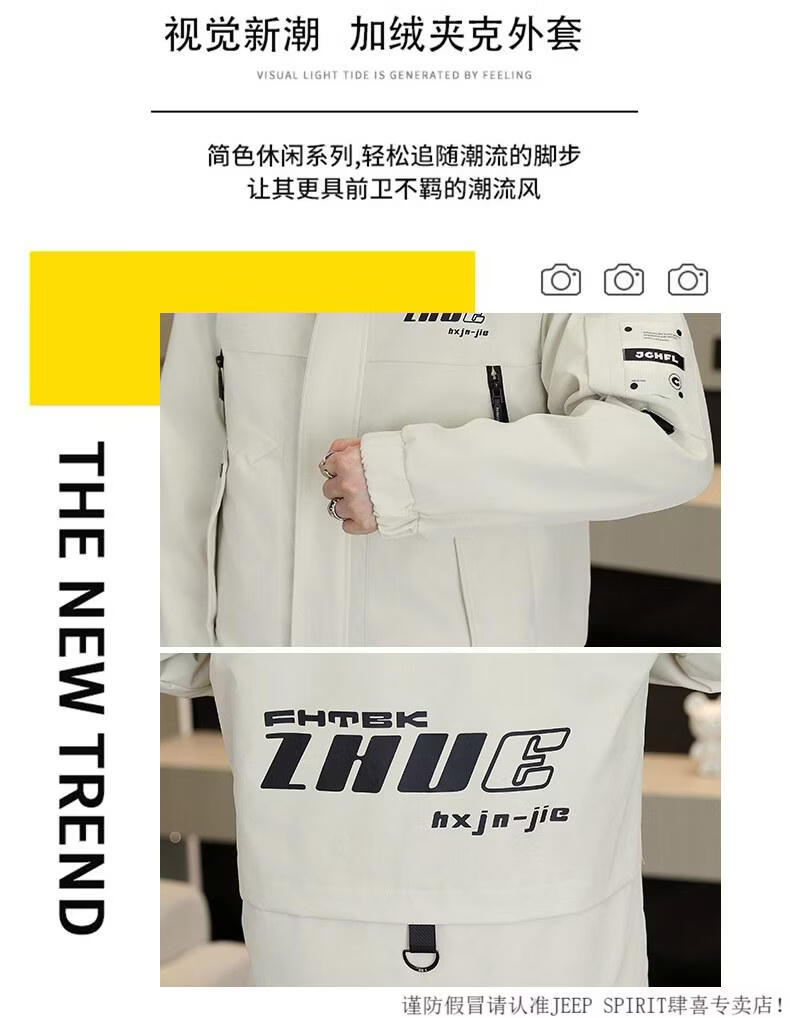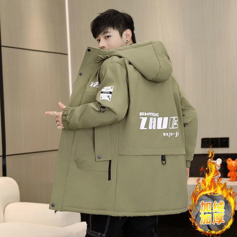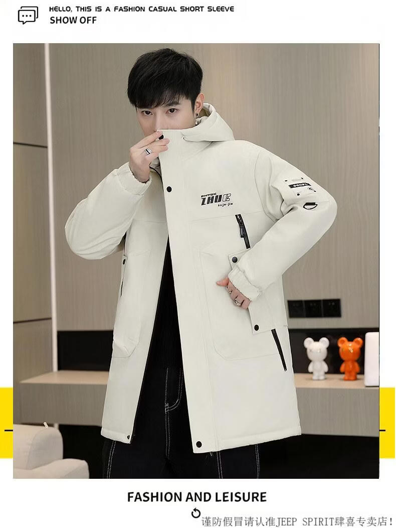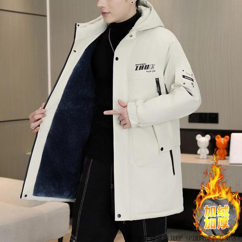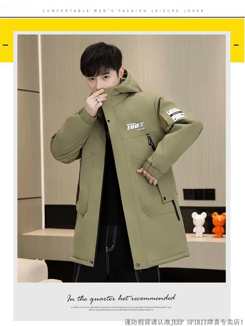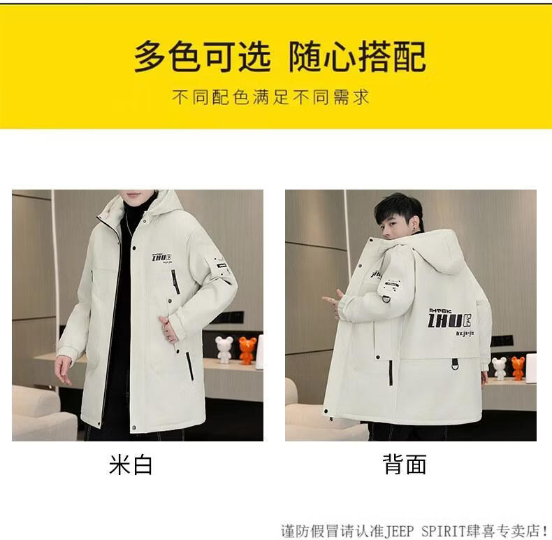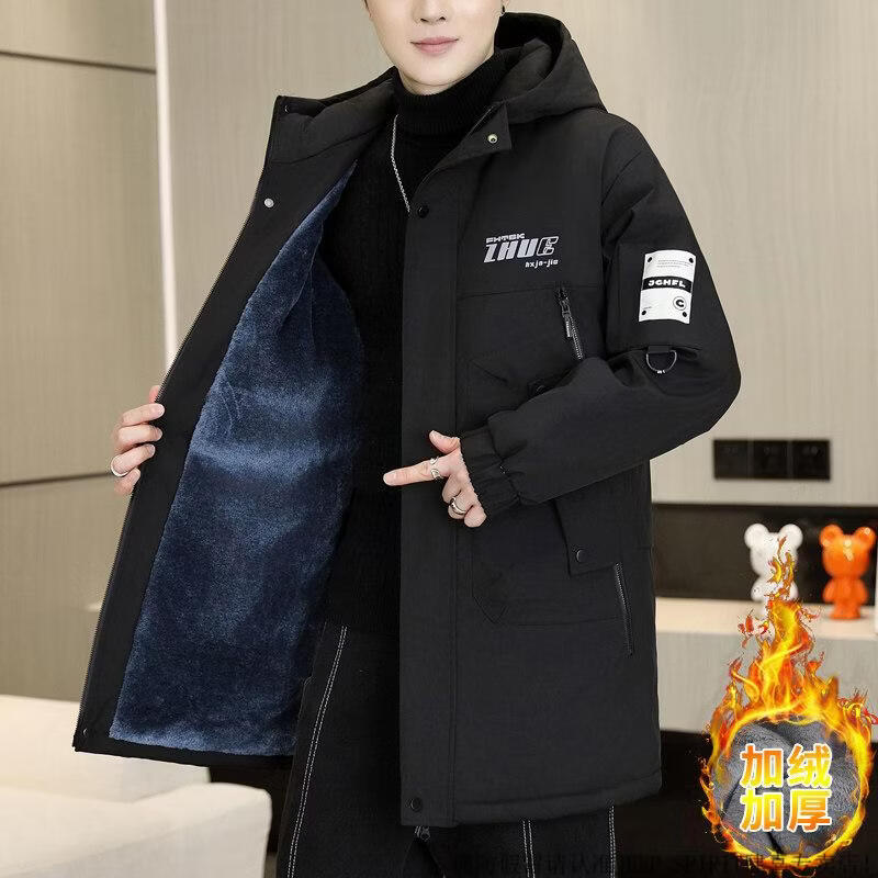JEEP SPIRIT winter mid-length windbreaker men's hooded plus velvet thickened parka cotton clothing trendy handsome casual jacket 3-29-plus velvet 25801 black 2XL