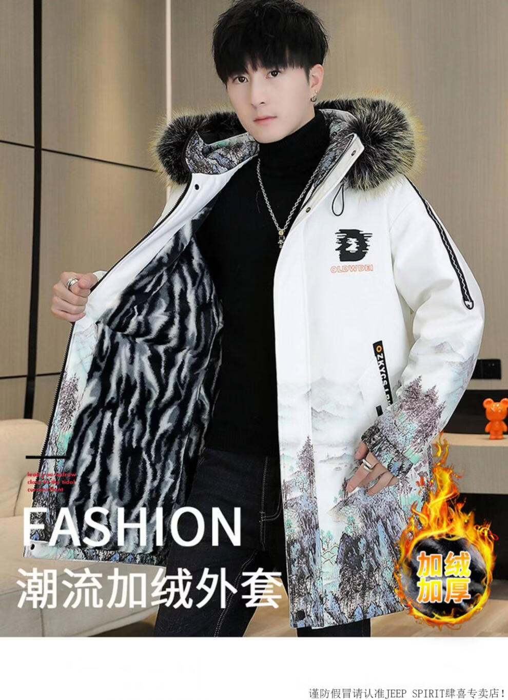 JEEP SPIRIT плюс бархатные и утолщенные мужские куртки и куртки более популярны, чем хлопчатобумажные пальто, осенние и зимние мужские хлопчатобумажные пальто средней длины, ветровки белого цвета, плюс бархатные и утолщенные XL, рекомендуется 120-135 Цзинь Цзинь равен 0,5 кг.