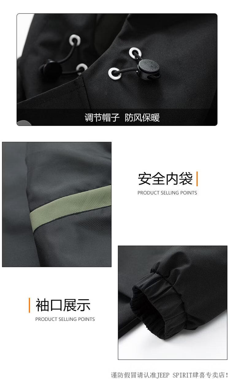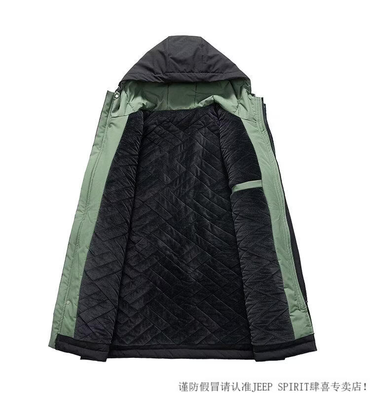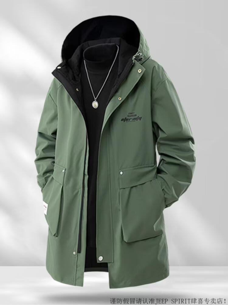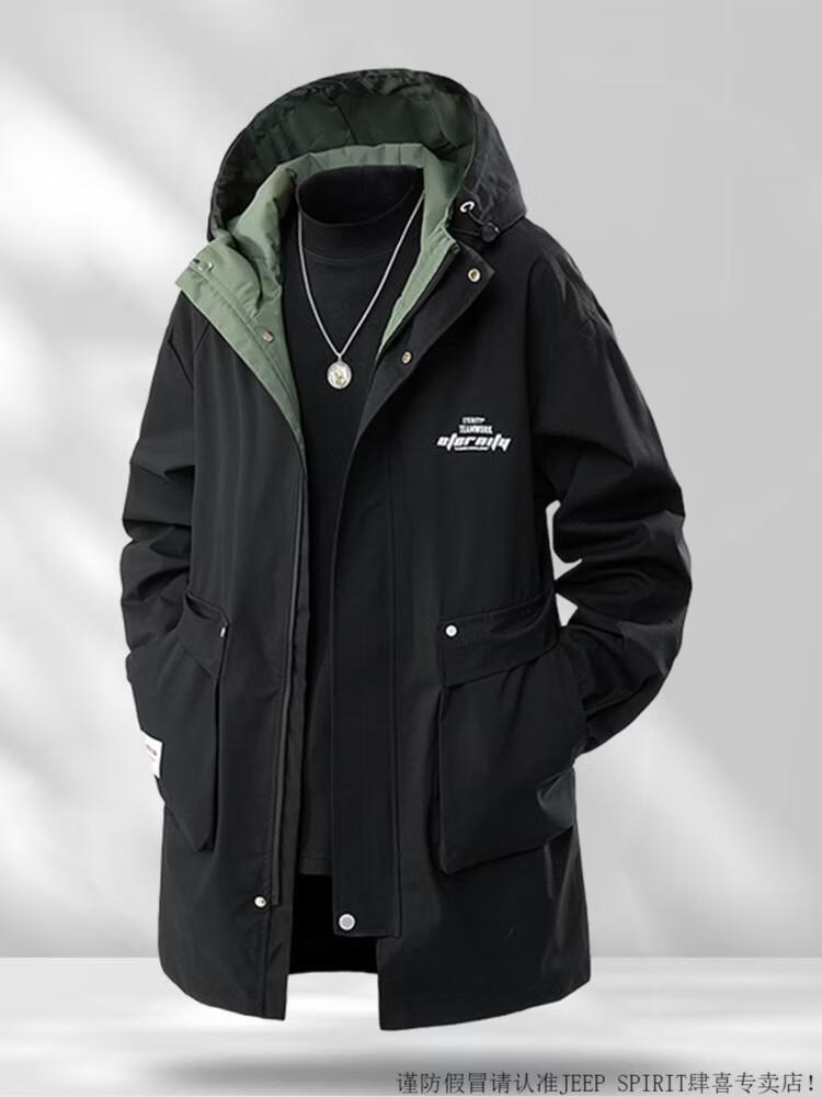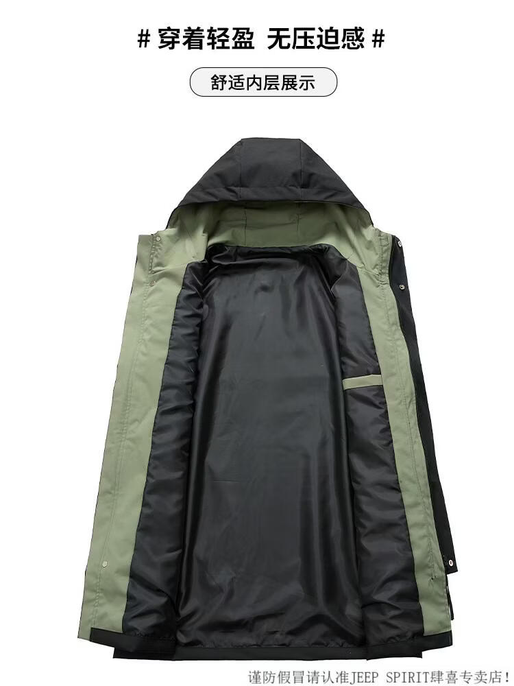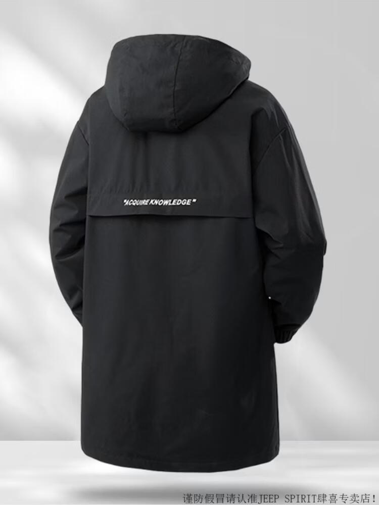 JEEP SPIRIT Зимняя и осенняя ветровка, мужская свободная рабочая одежда больших размеров средней длины, очень большая повседневная ветрозащитная куртка с капюшоном, 6851, черная (весенне-осенняя модель без бархата) L