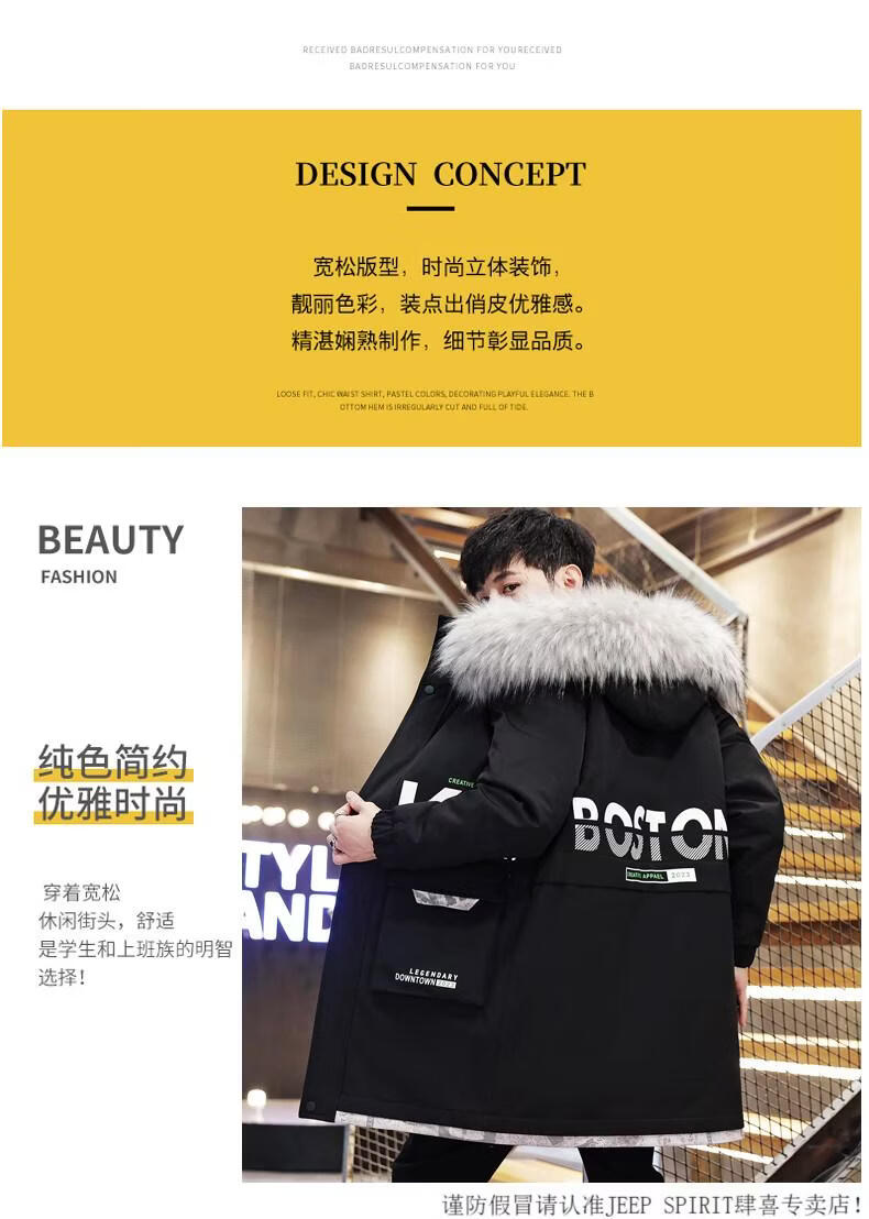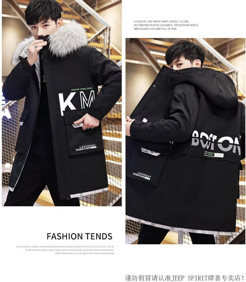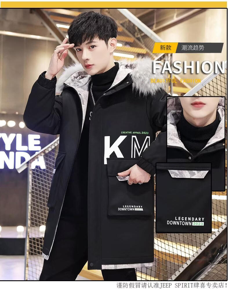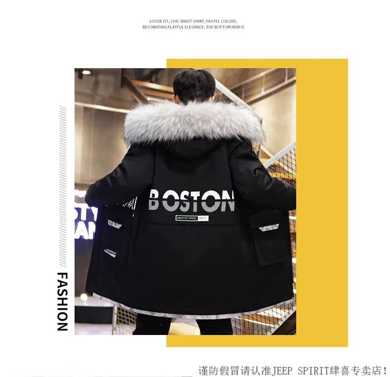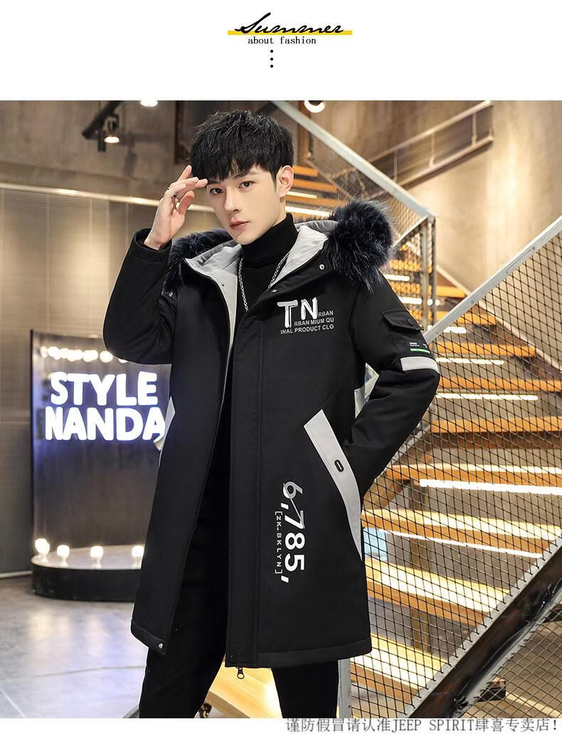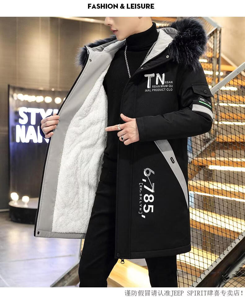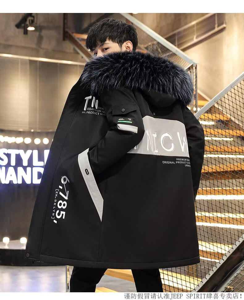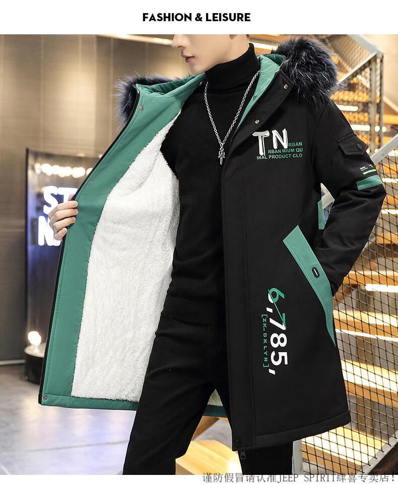 JEEP SPIRIT бархатная куртка средней длины, мужская новая зимняя модная куртка-пуховик с меховым воротником и капюшоном, красивая утолщенная ветровка, парка E91 цвета хаки (обновленный плюс бархатный стиль) M