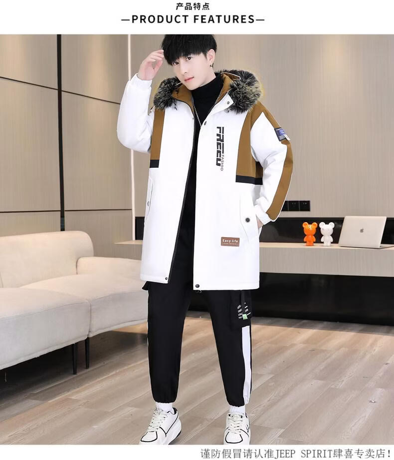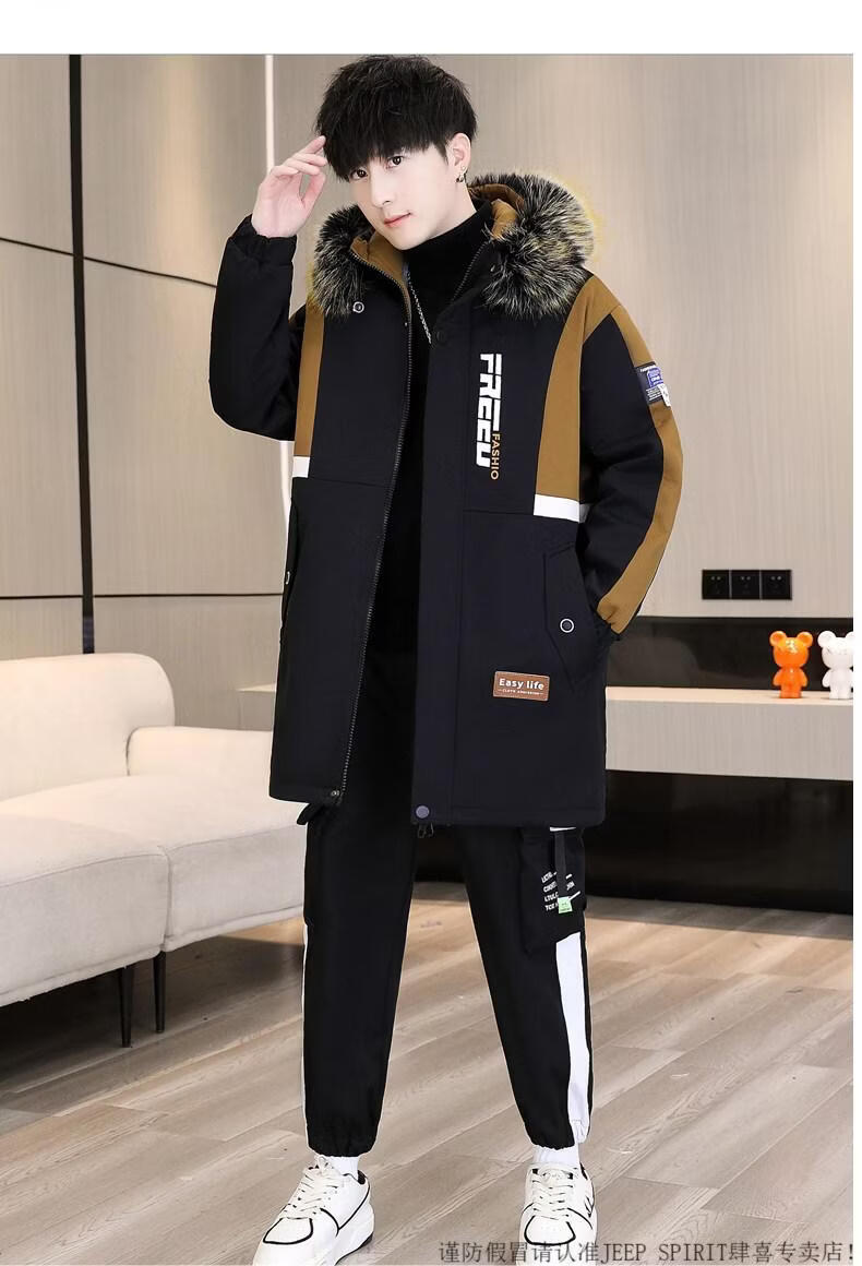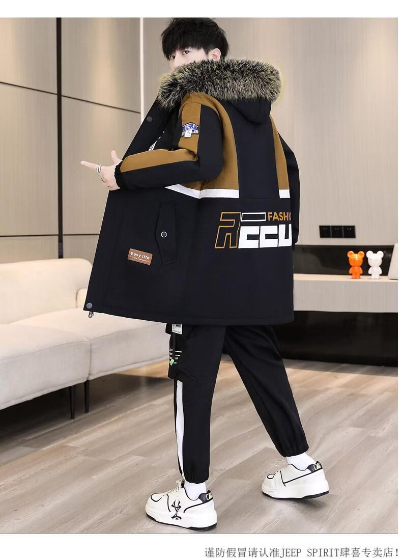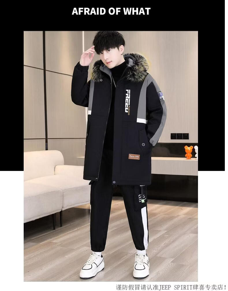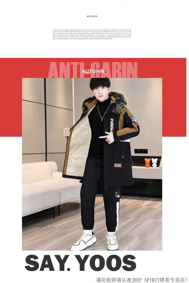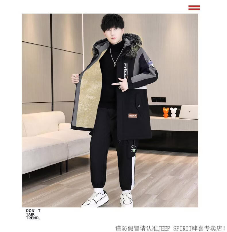 JEEP SPIRIT cotton coat men's winter mid-length velvet thickened windbreaker jacket cotton suit men's parka 819 black gray top plus velvet M