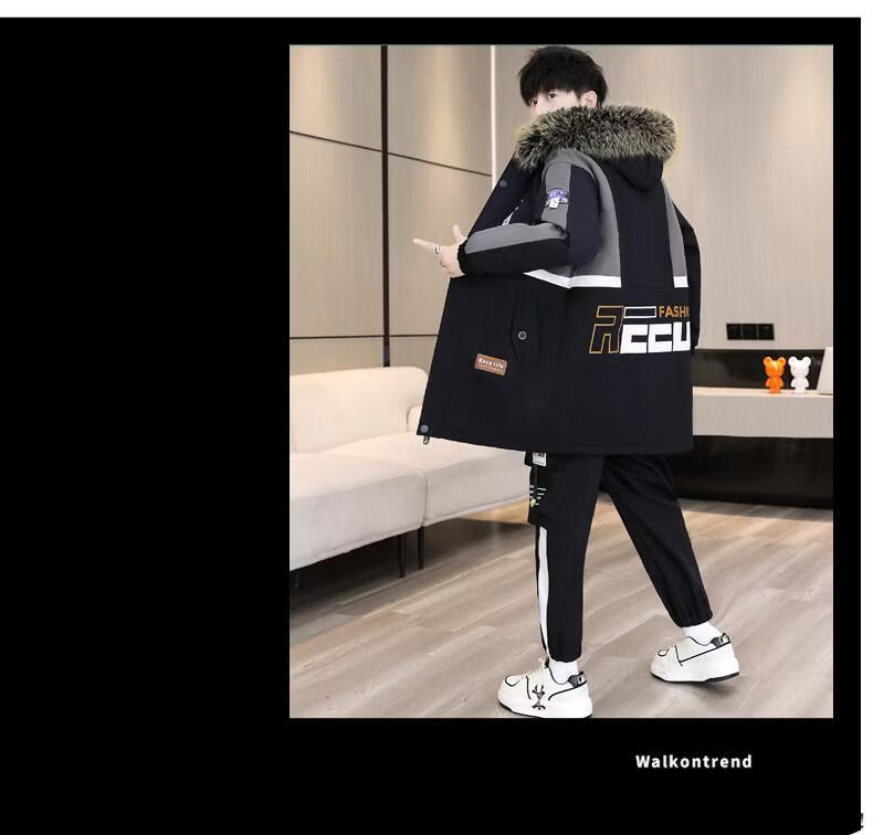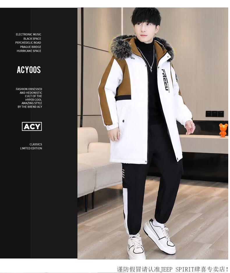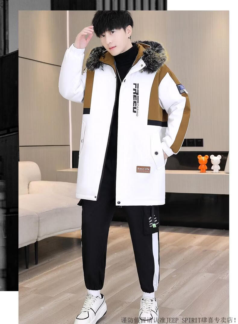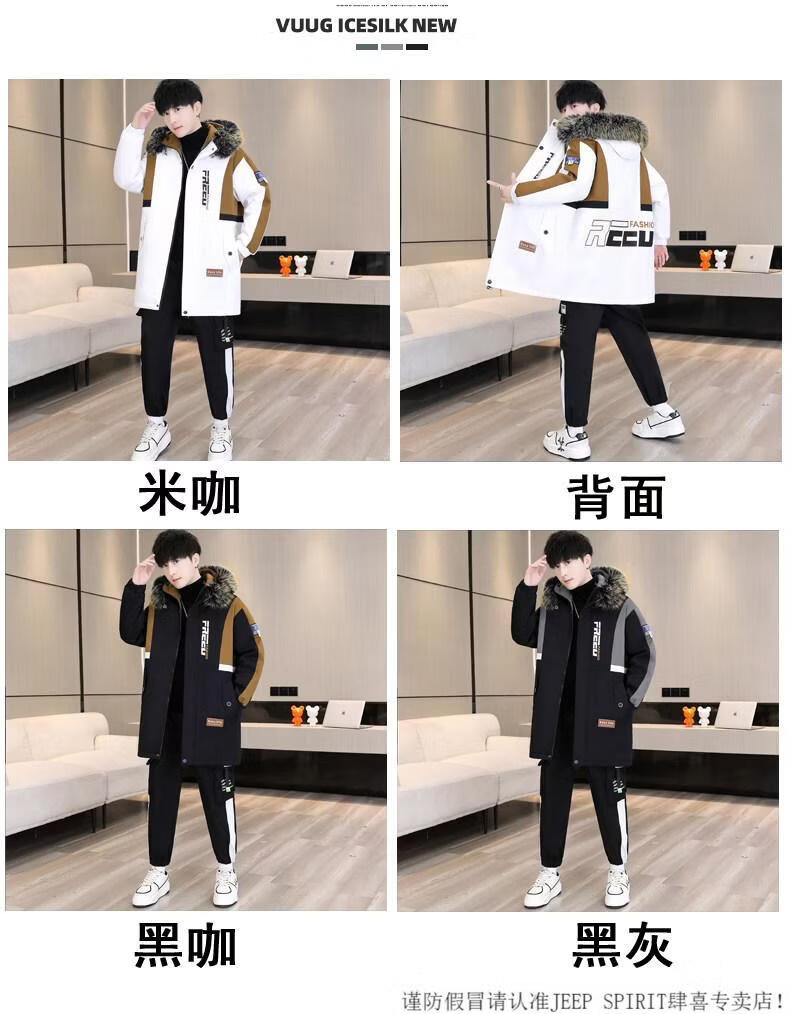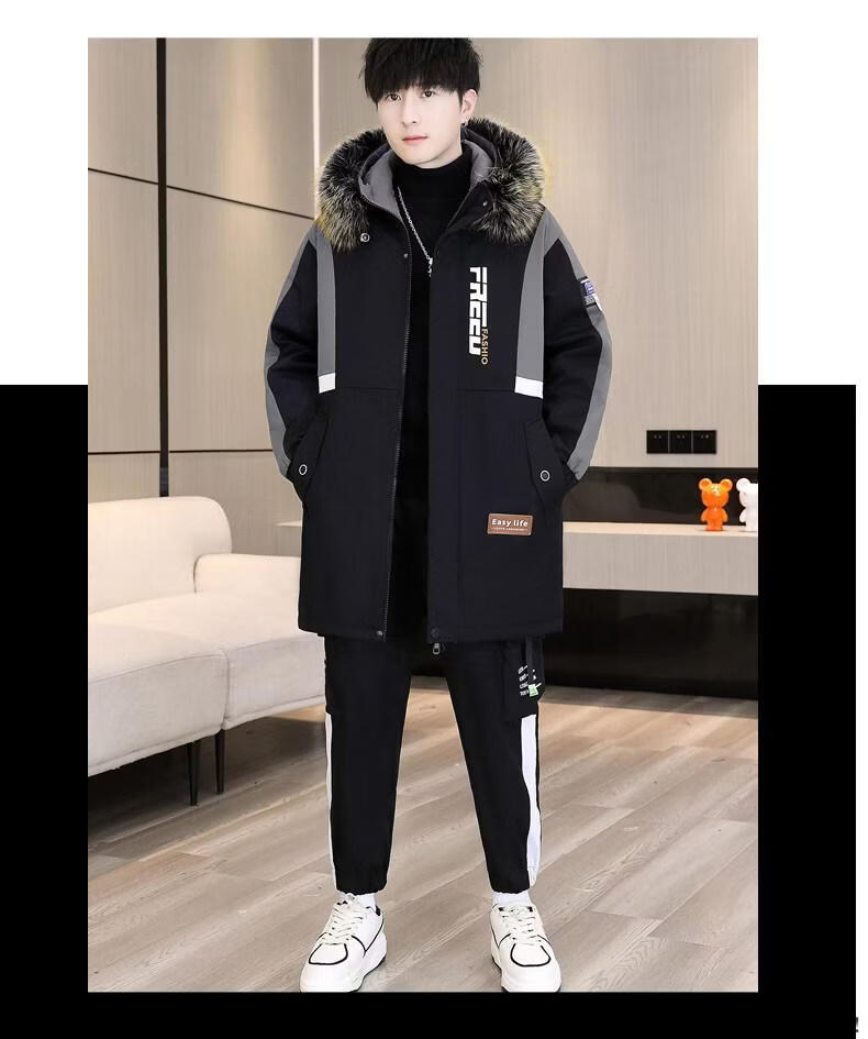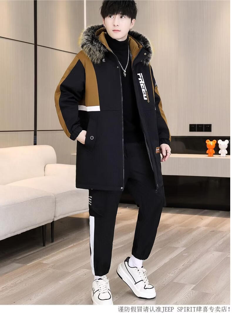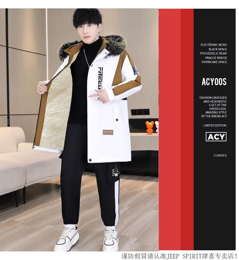JEEP SPIRIT cotton coat men's winter mid-length velvet thickened windbreaker jacket cotton suit men's parka 819 black gray top plus velvet M