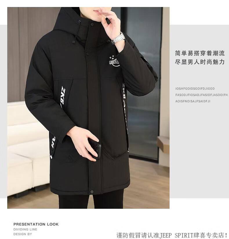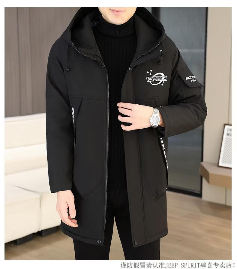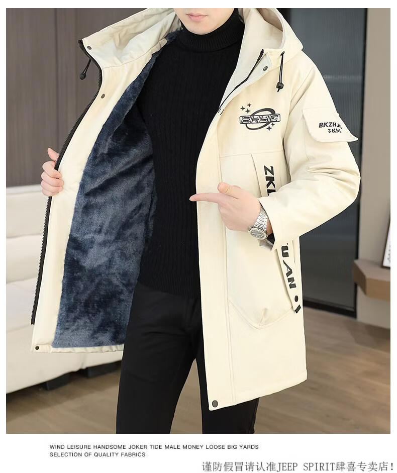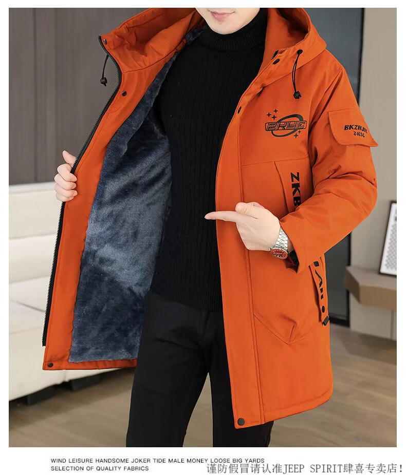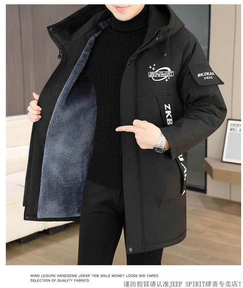 JEEP SPIRIT winter parka men's cotton coat plus velvet thickened jacket men's trendy winter cotton coat mid-length windbreaker warm jacket 682 black plus velvet and thickened M 95-110Jin Jin equals 0.5 kg